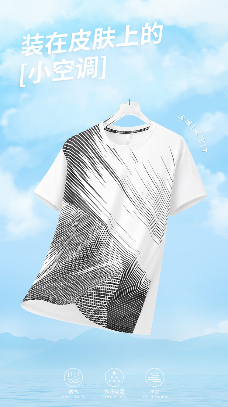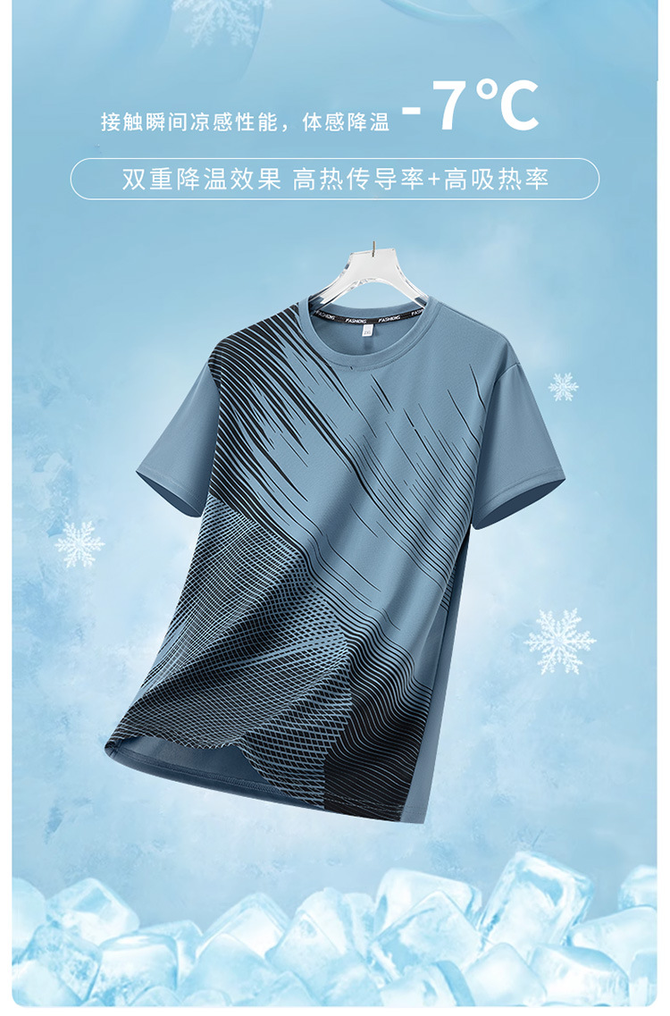 크로스보더 남성용 아웃도어 아이스 실크 속건 반팔 티셔츠 트렌디하고 개성 있는 캐주얼 라운드넥 스포츠 러닝 그라데이션 탑스토어 가기