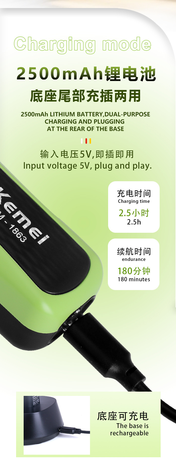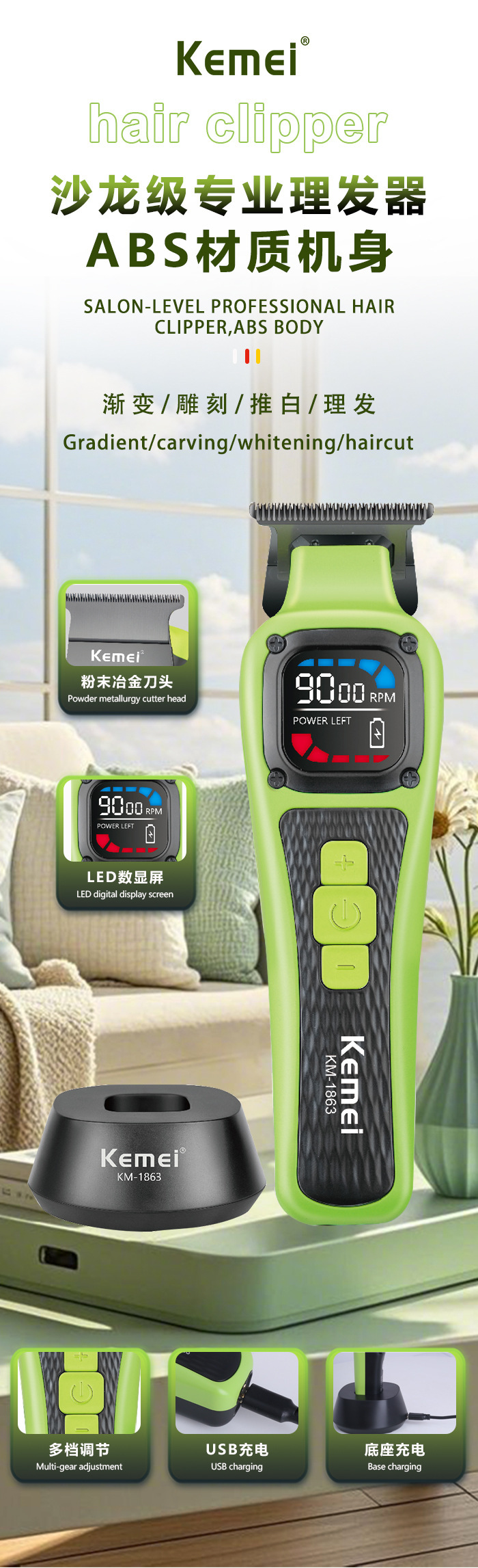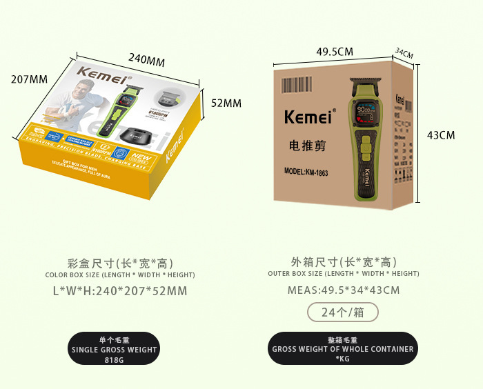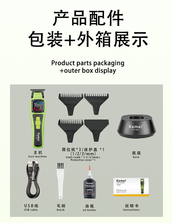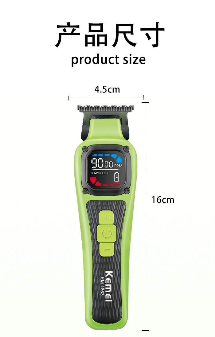 KM-1863 국경 간 지능형 전기 머리 깎기 미용실 전문 전기 머리 깎기 디지털 디스플레이 조정 가능한 머리 깎기 세트
