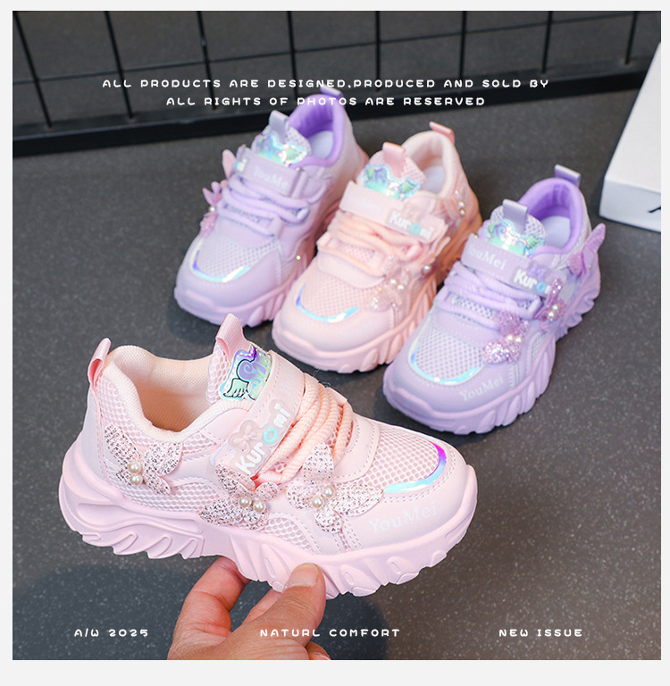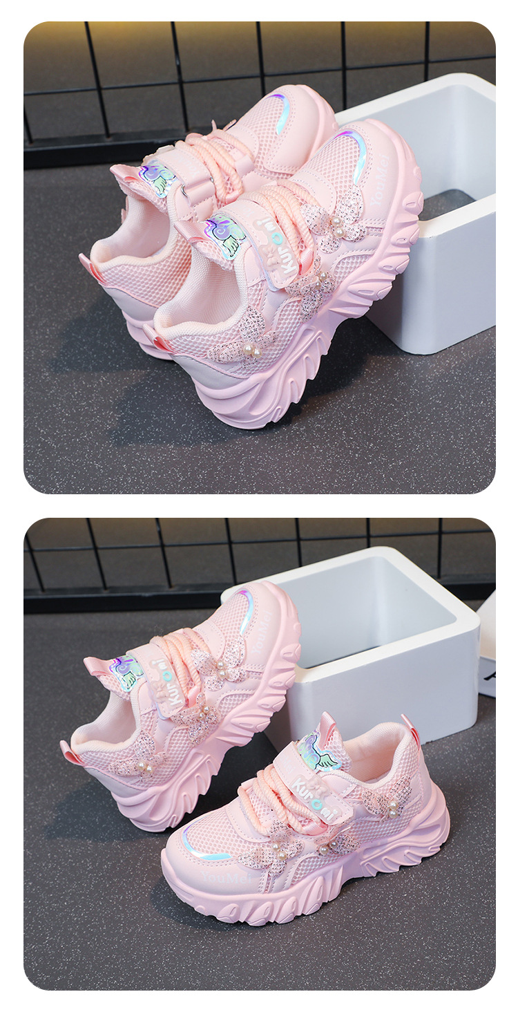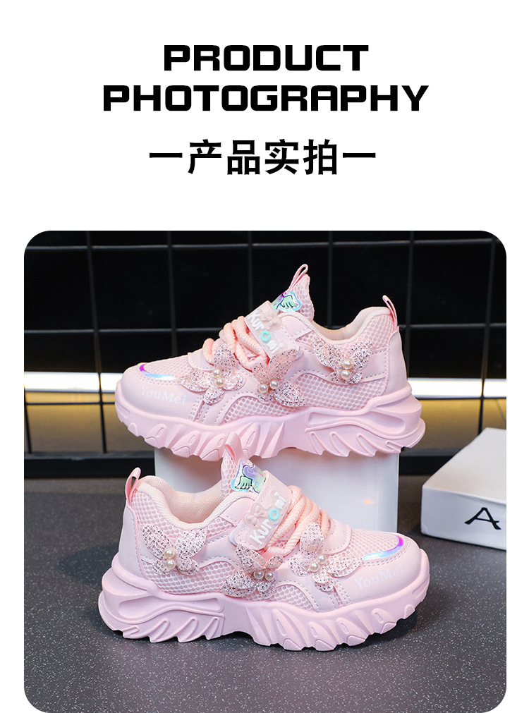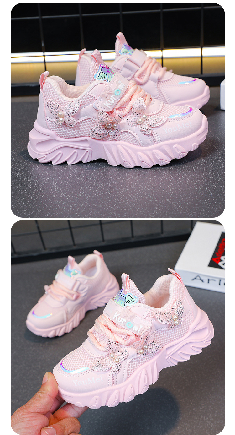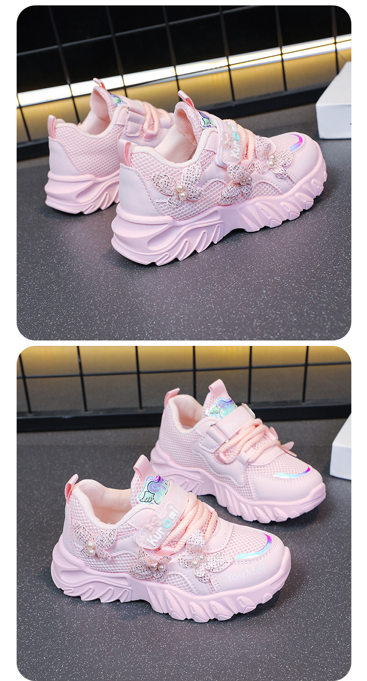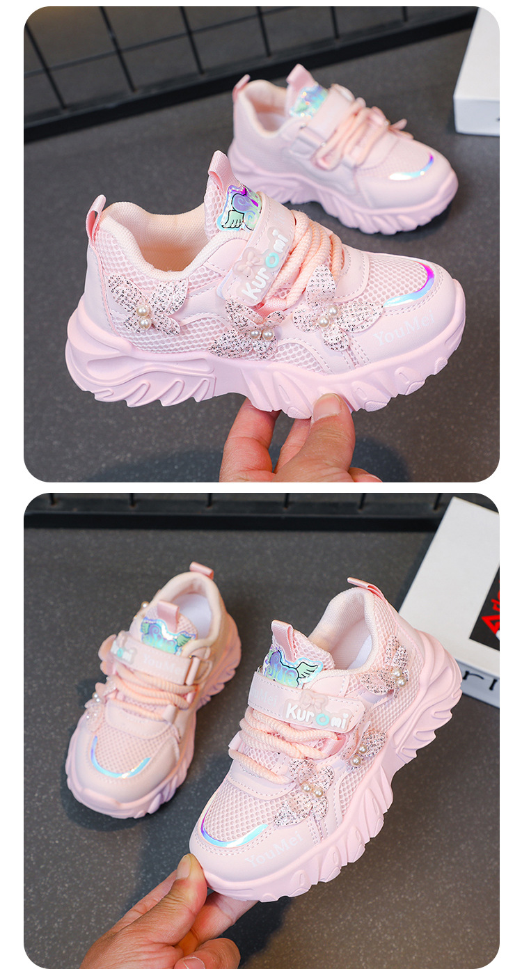 봄 신작 아동 운동화, 여아용 나비 진주 아빠 신발, 캐주얼 신발, 이중 메쉬 통기성 어린이 및 중년 어린이스토어 가기