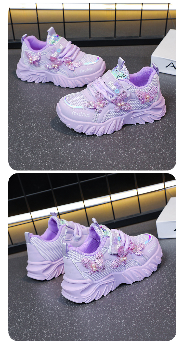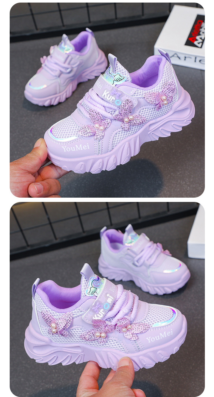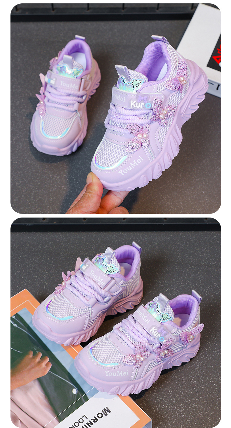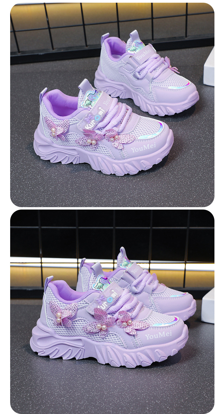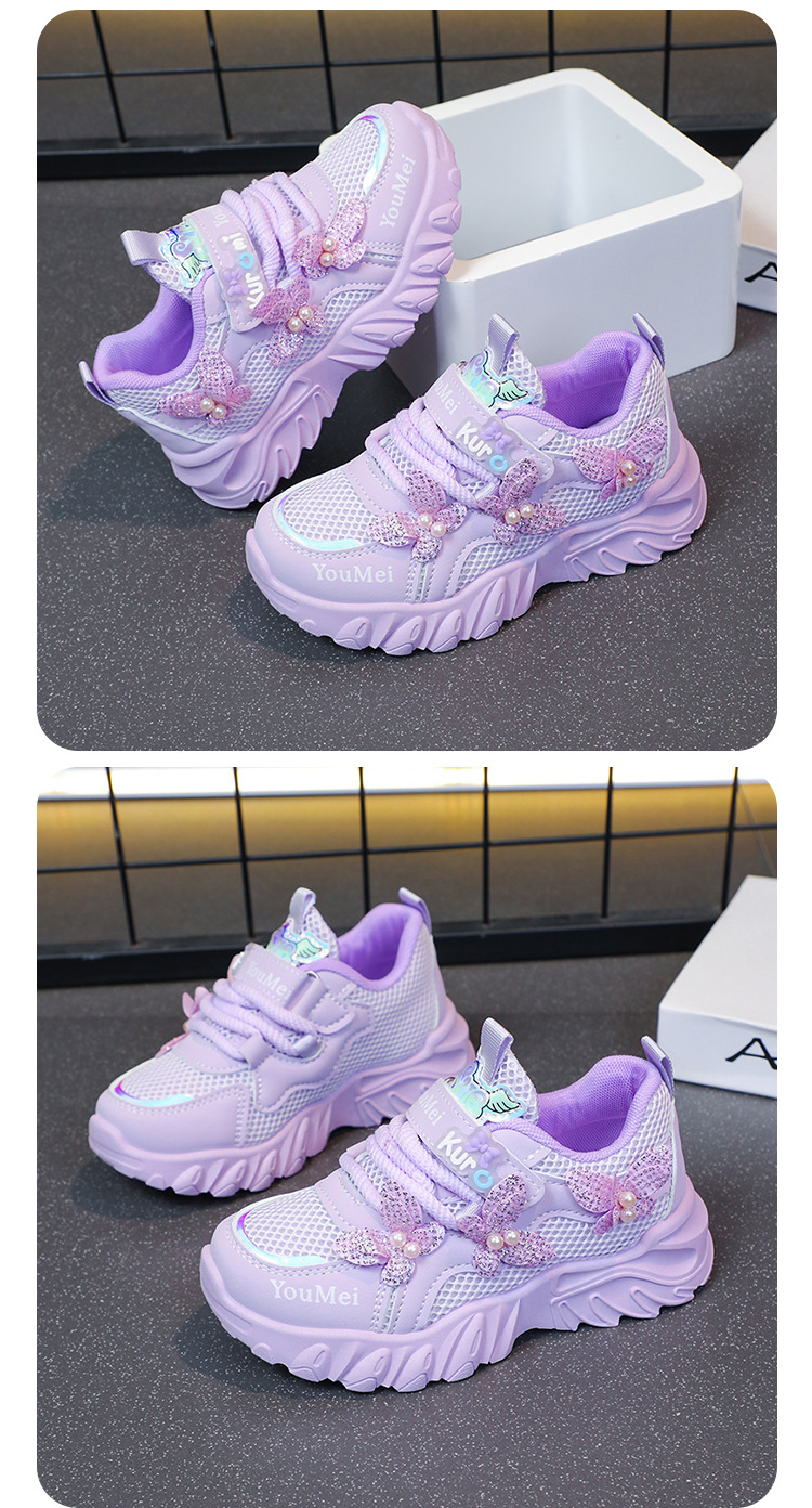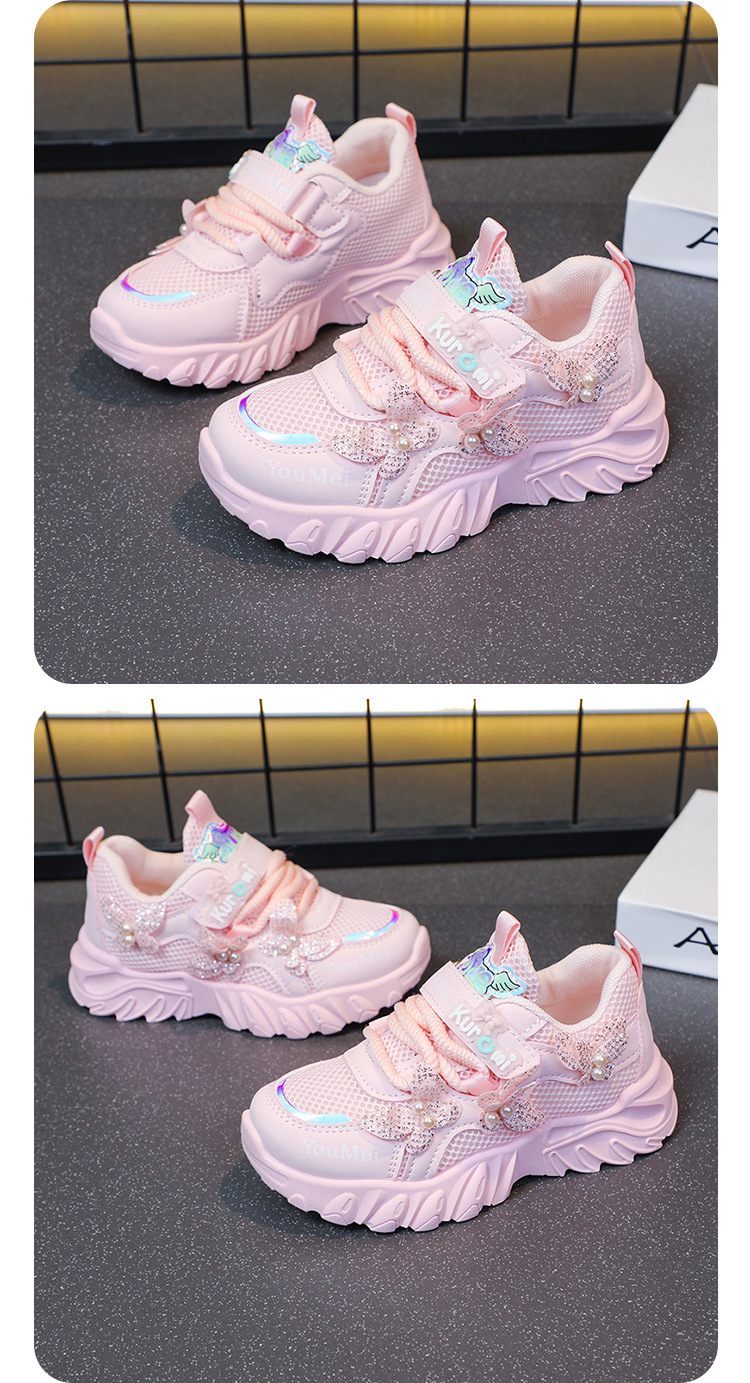 봄 신작 아동 운동화, 여아용 나비 진주 아빠 신발, 캐주얼 신발, 이중 메쉬 통기성 어린이 및 중년 어린이스토어 가기