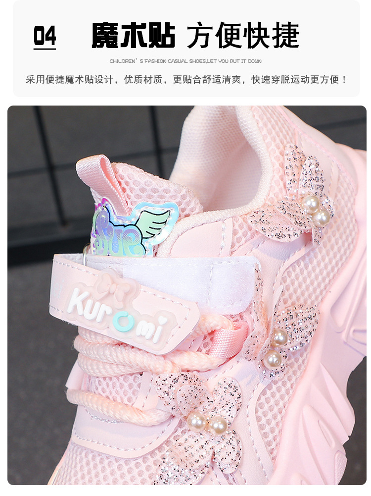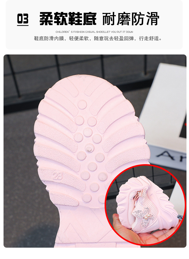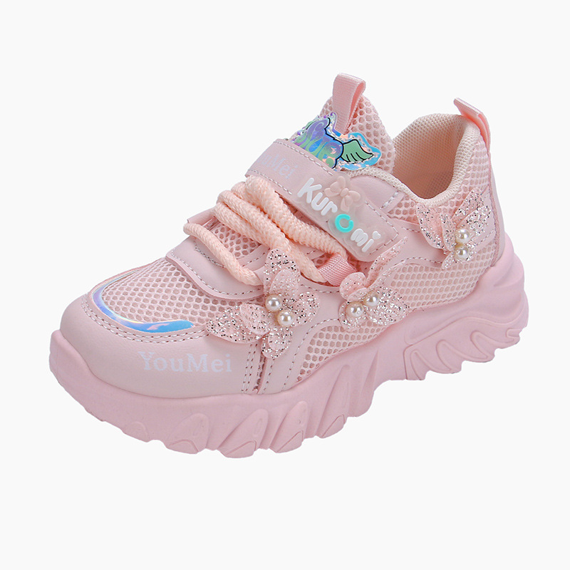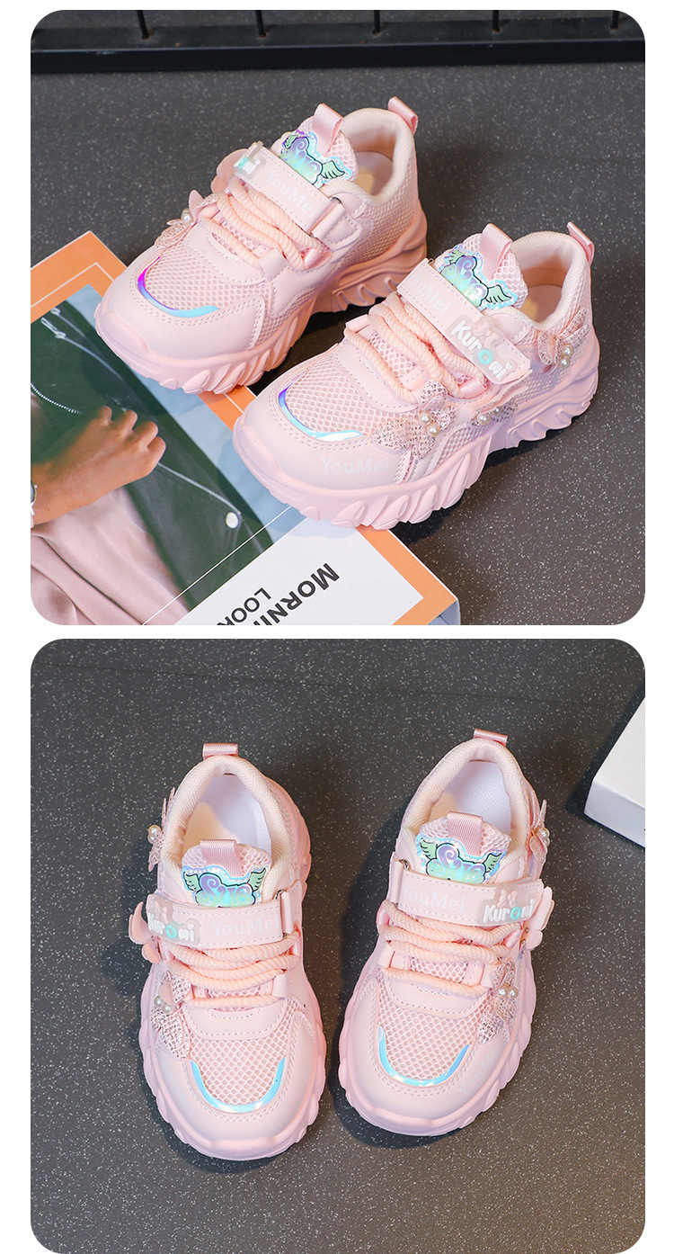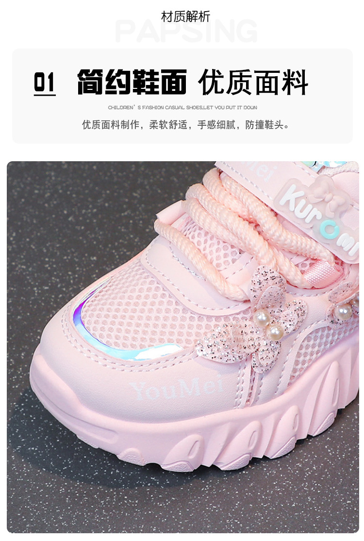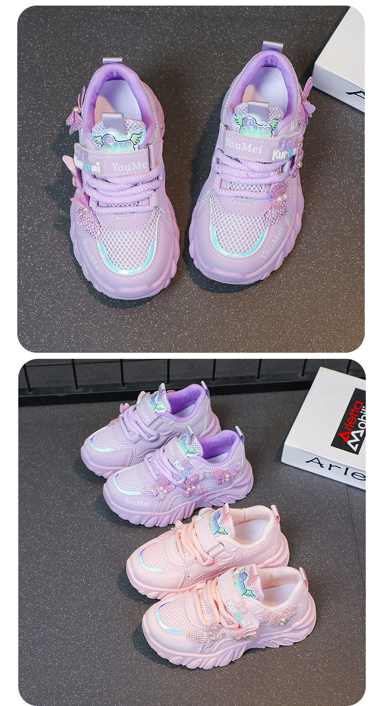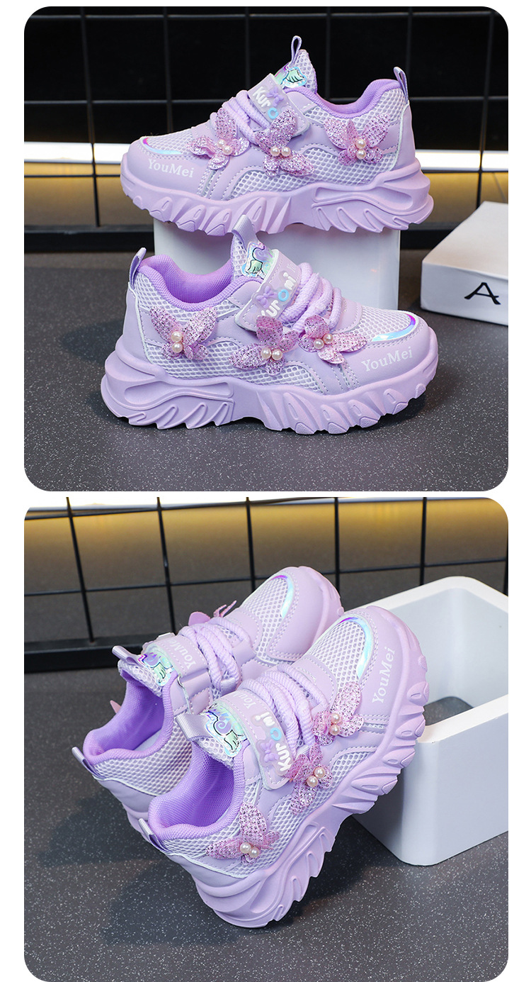 봄 신작 아동 운동화, 여아용 나비 진주 아빠 신발, 캐주얼 신발, 이중 메쉬 통기성 어린이 및 중년 어린이스토어 가기