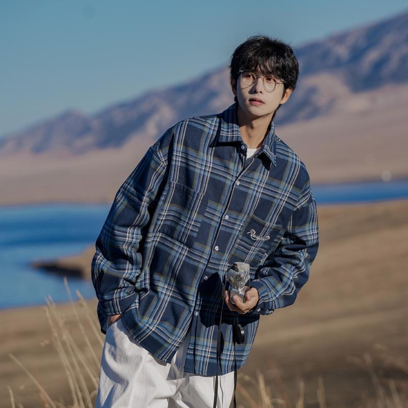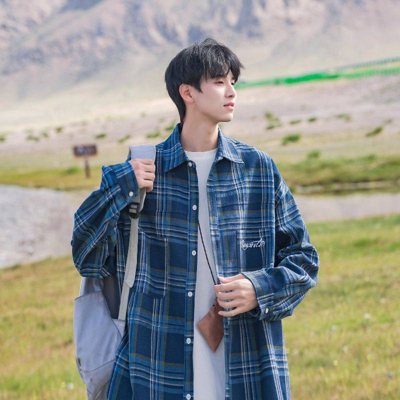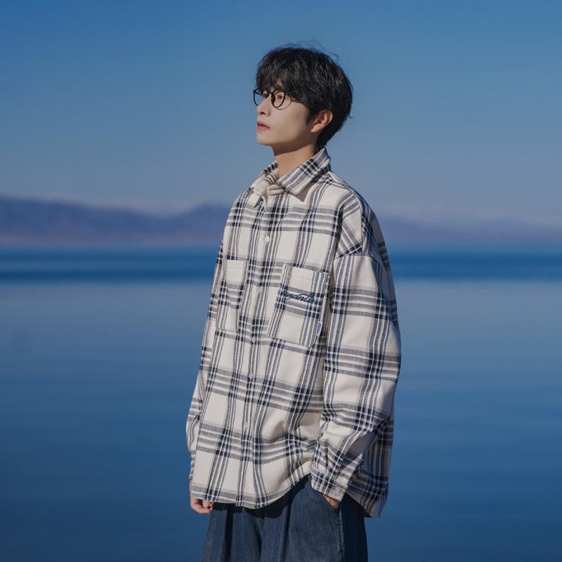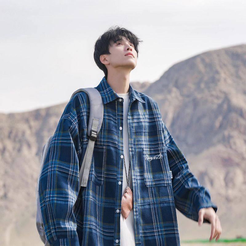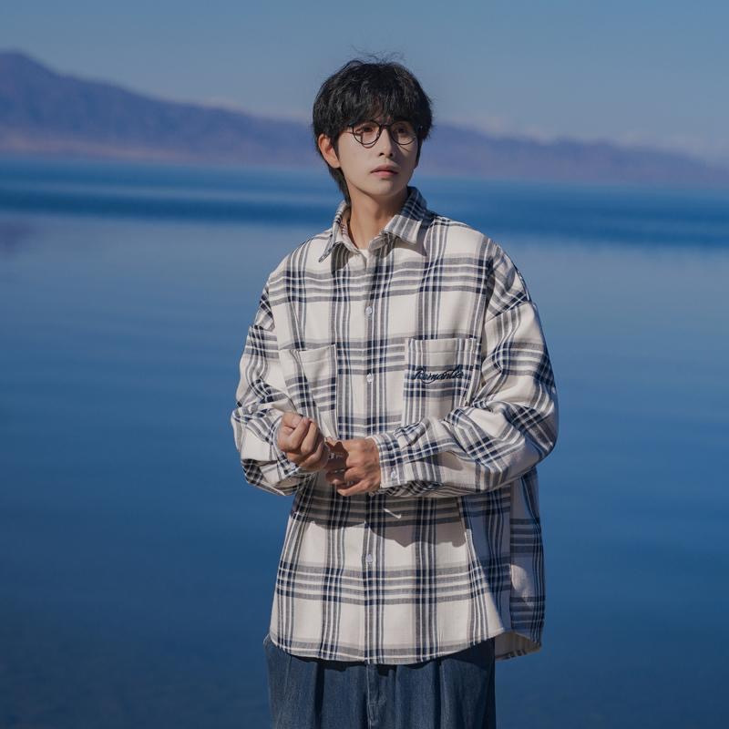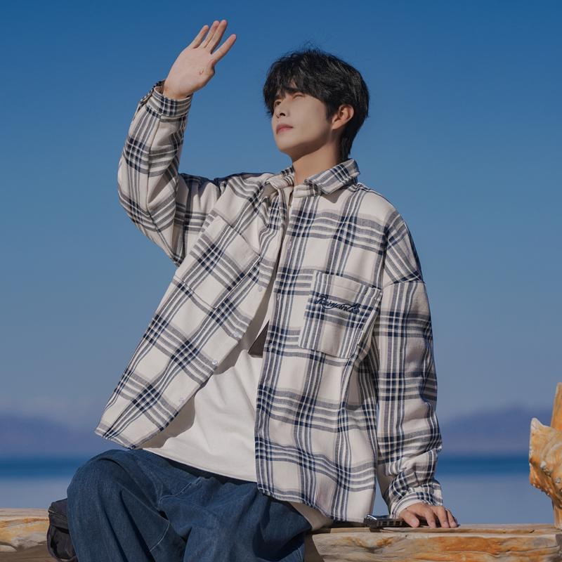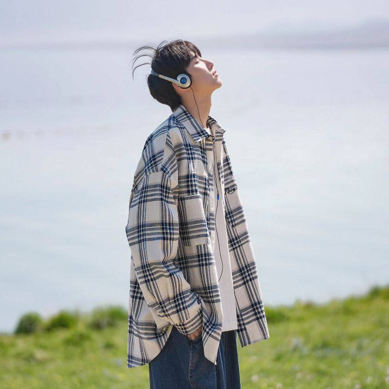 홍콩 차이 예술 남성 청소년 감각 격자 무늬 셔츠 남자 긴팔 2025 년 새 봄과 가을 남자 내부 셔츠 재킷스토어 가기