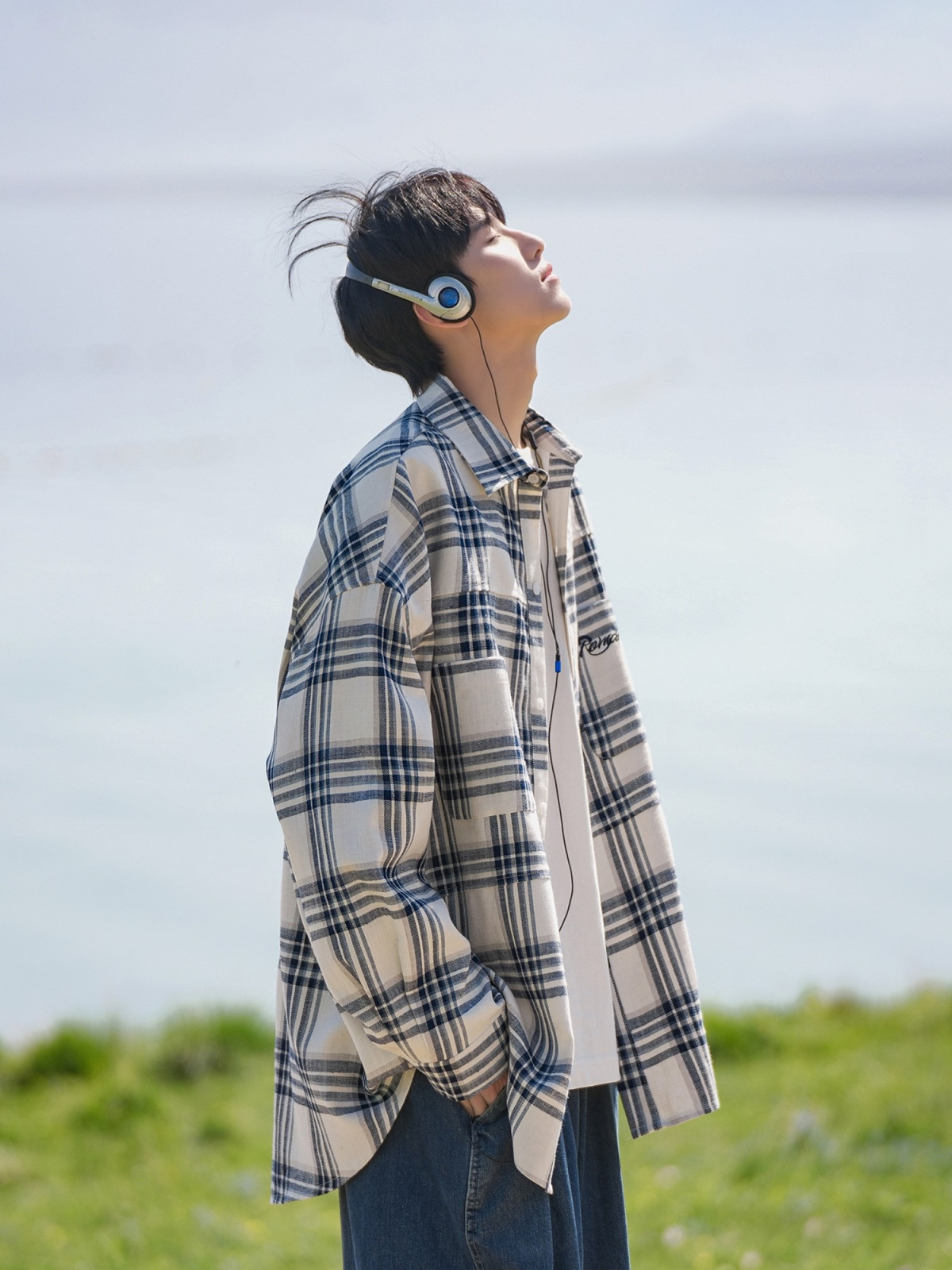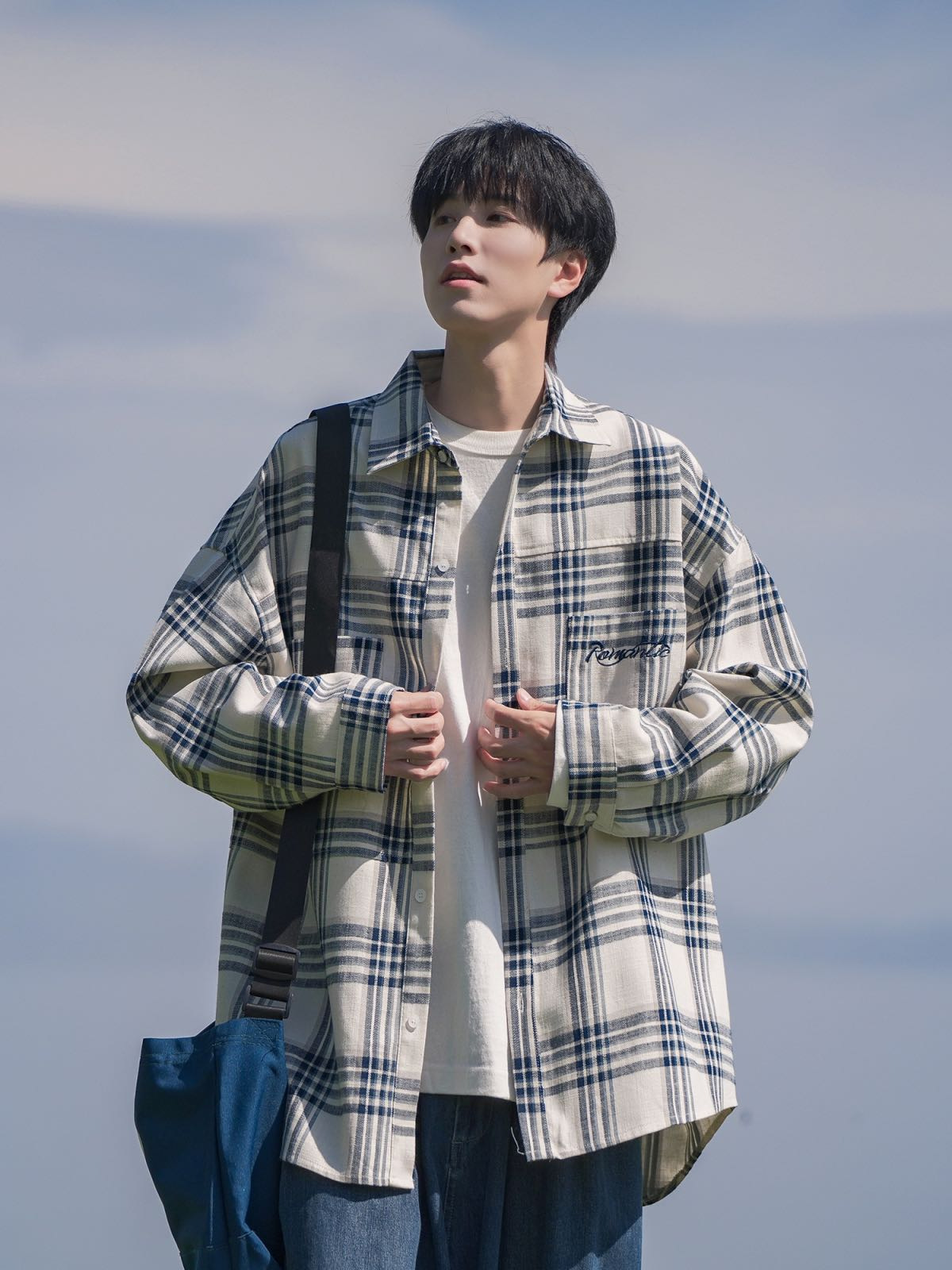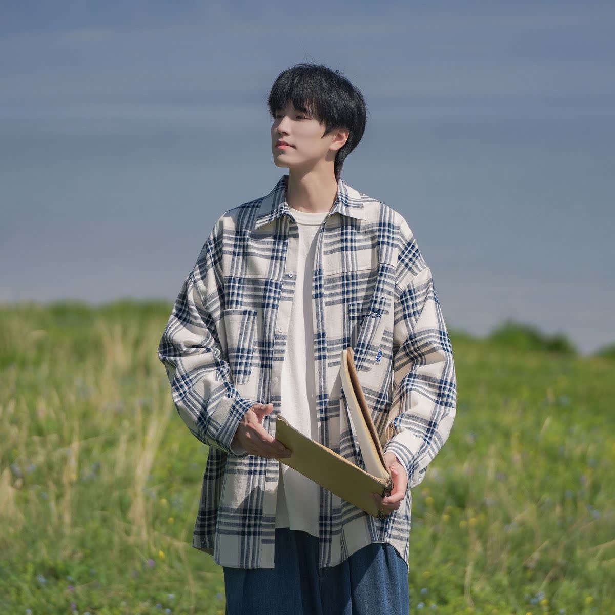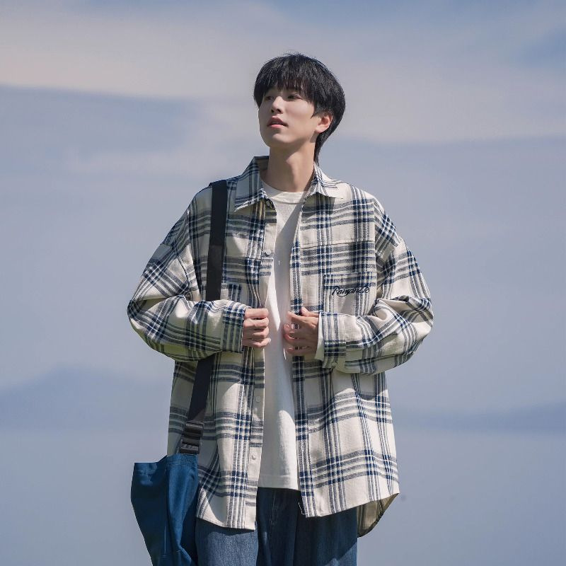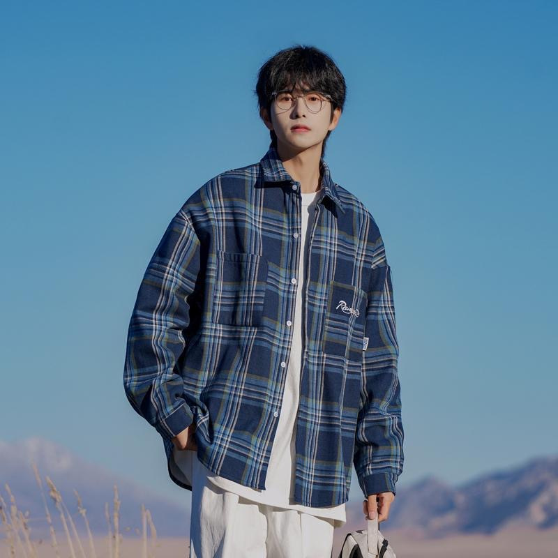 홍콩 차이 예술 남성 청소년 감각 격자 무늬 셔츠 남자 긴팔 2025 년 새 봄과 가을 남자 내부 셔츠 재킷스토어 가기