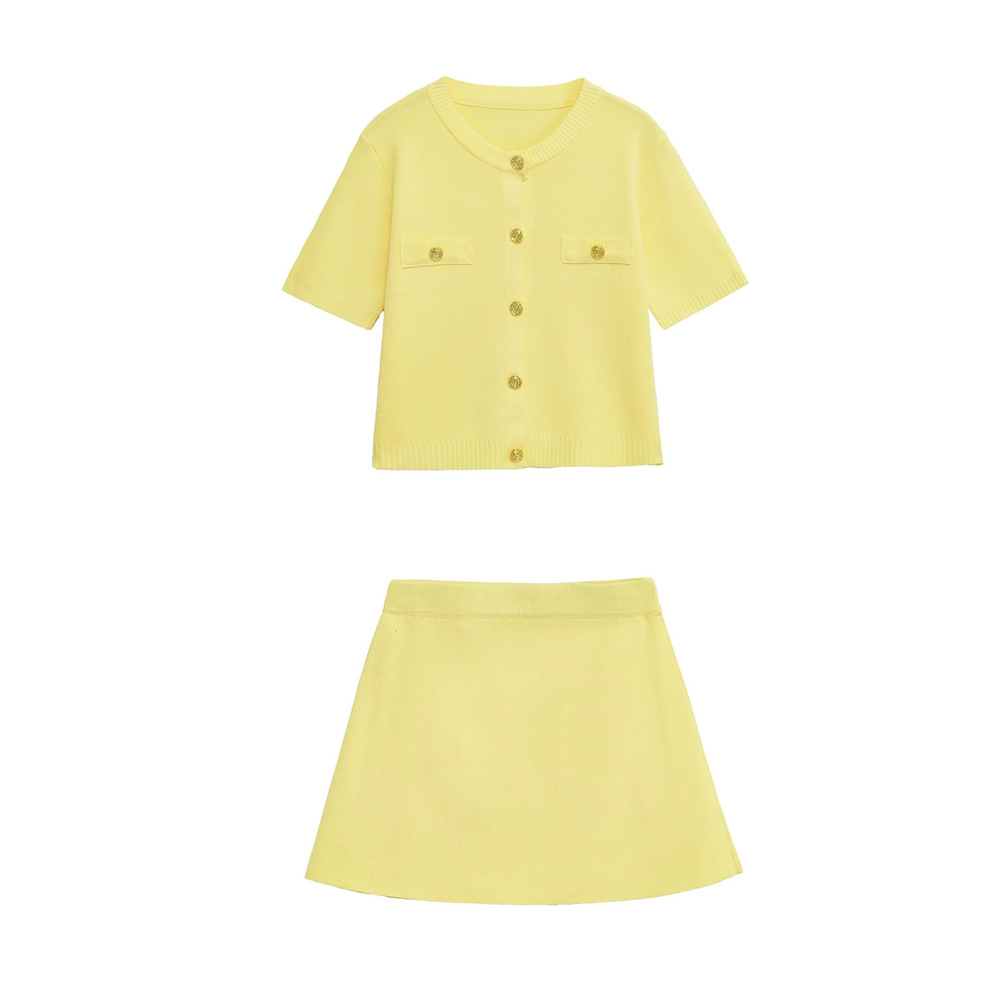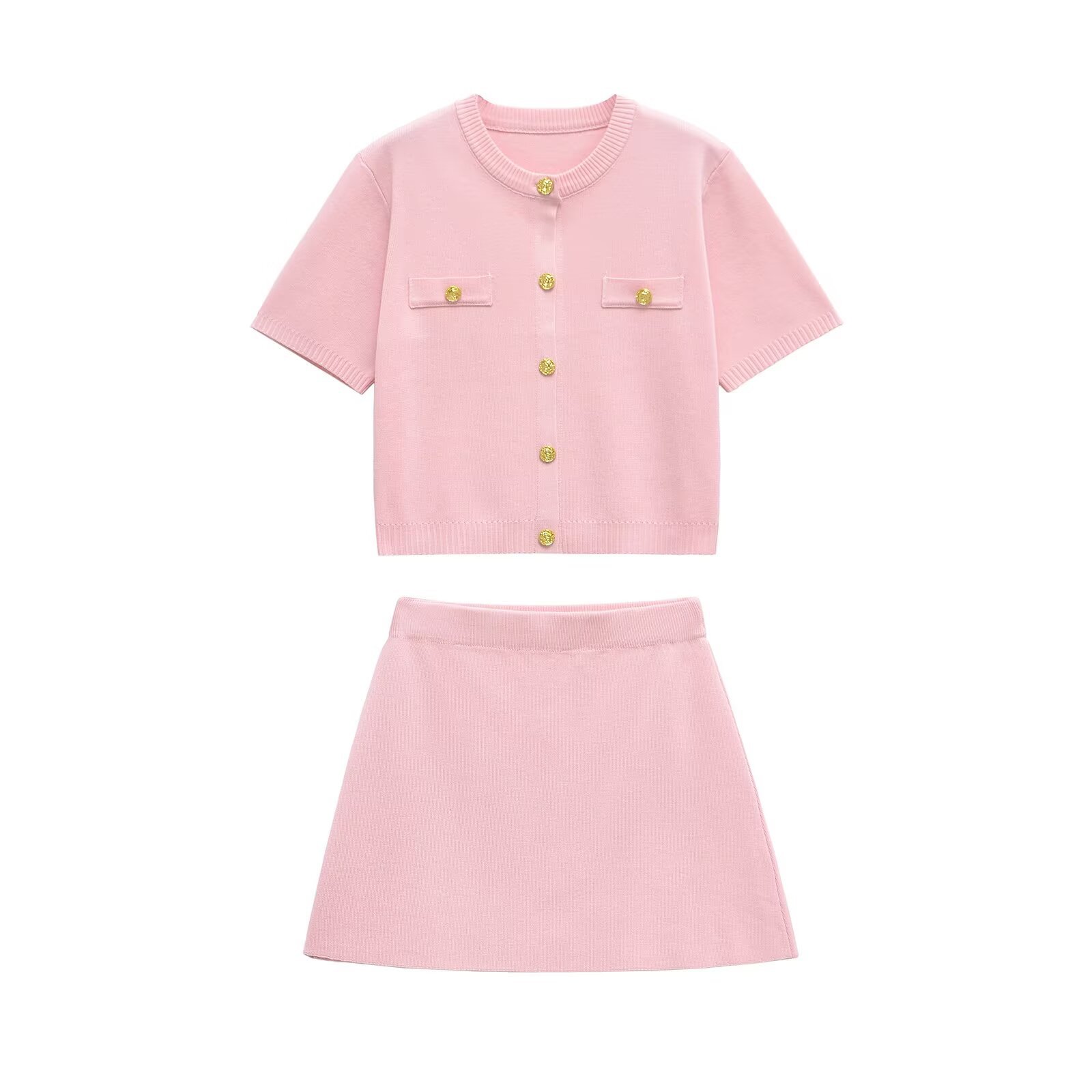 PB & ZA 여자 2025 여름 새로운 반팔 니트 톱 18220022 플랫 니들 미니 스커트 6236009