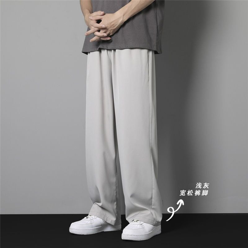 소스 공장 바지 남자의 여름 얇은 아이스 실크 바지 캐주얼 바지 Ins 트렌디 한 스트레이트 펜던트 느슨한 바지