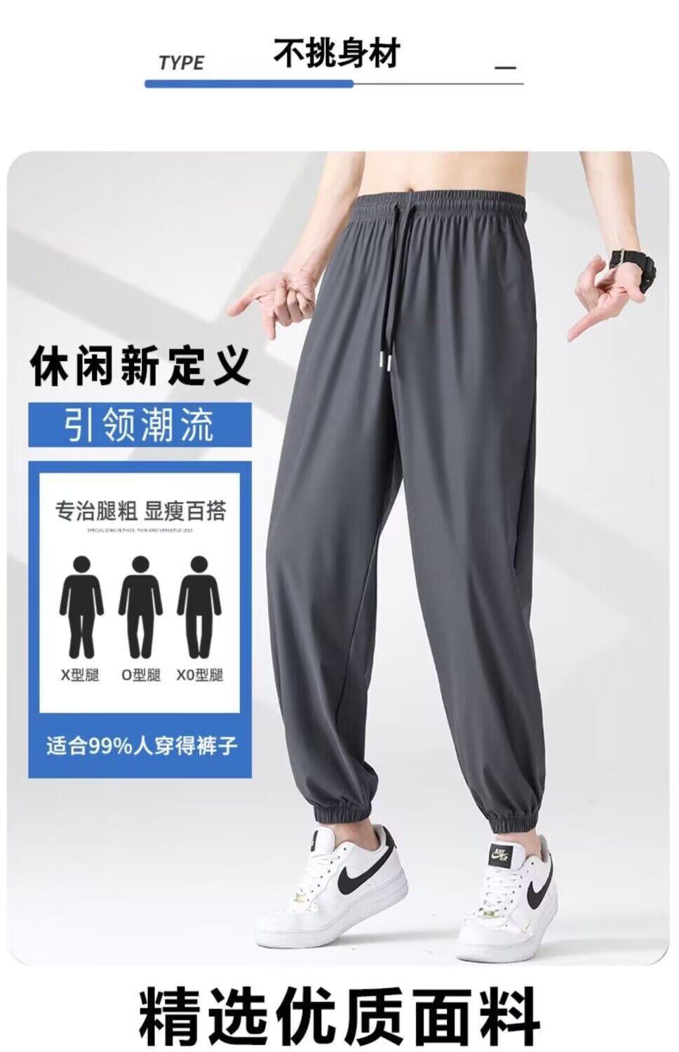 소스 공장 바지 남자의 여름 얇은 아이스 실크 바지 캐주얼 바지 Ins 트렌디 한 스트레이트 펜던트 느슨한 바지스토어 가기