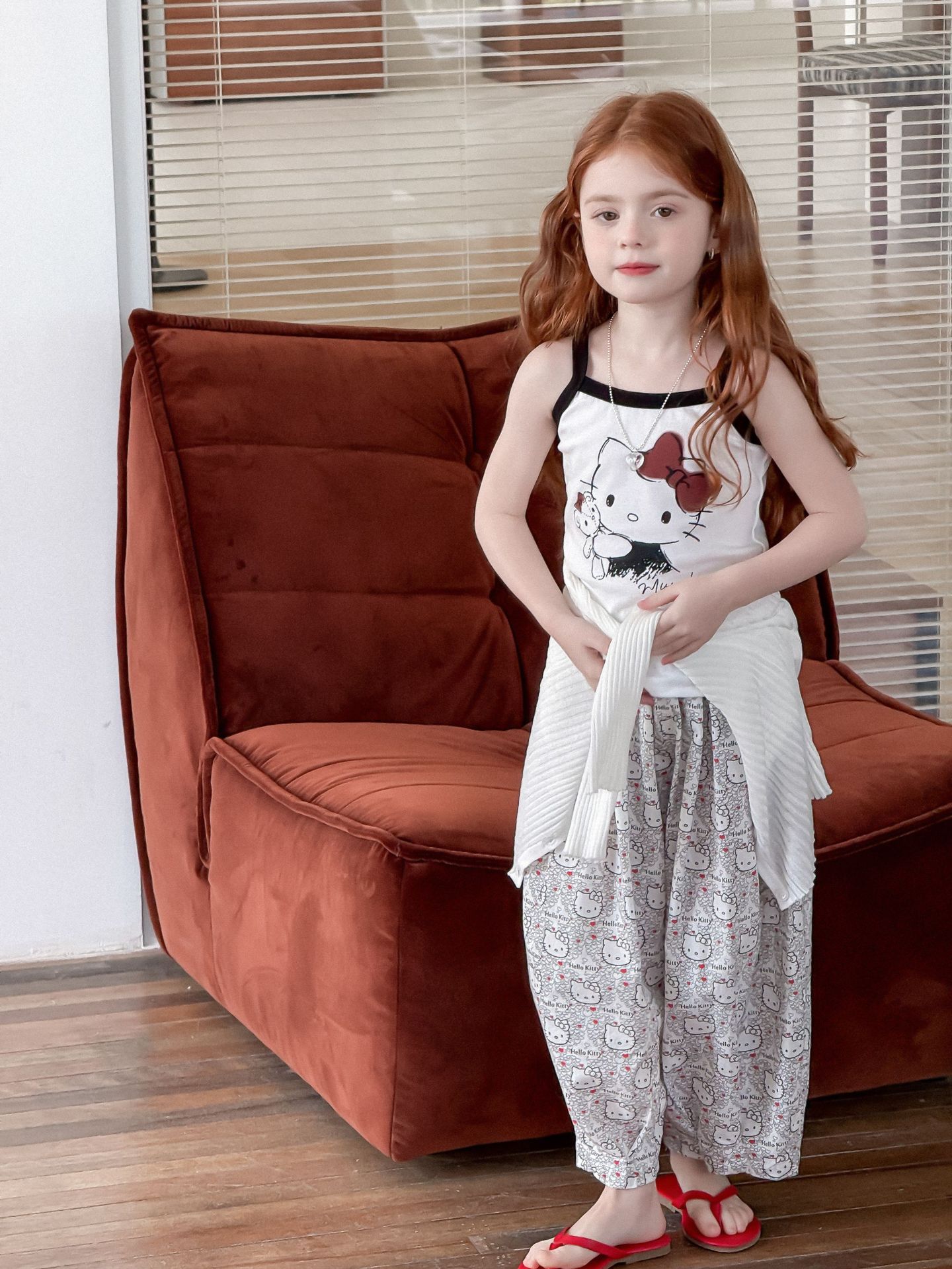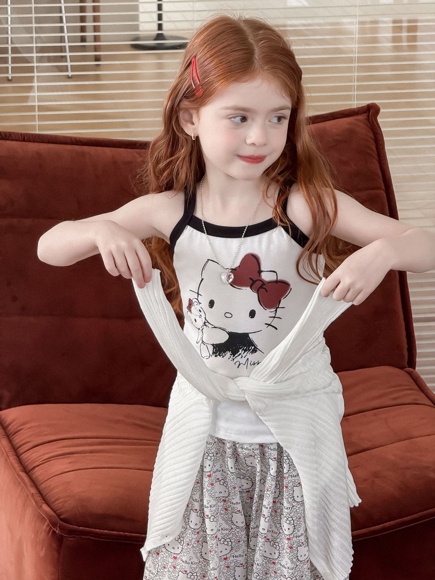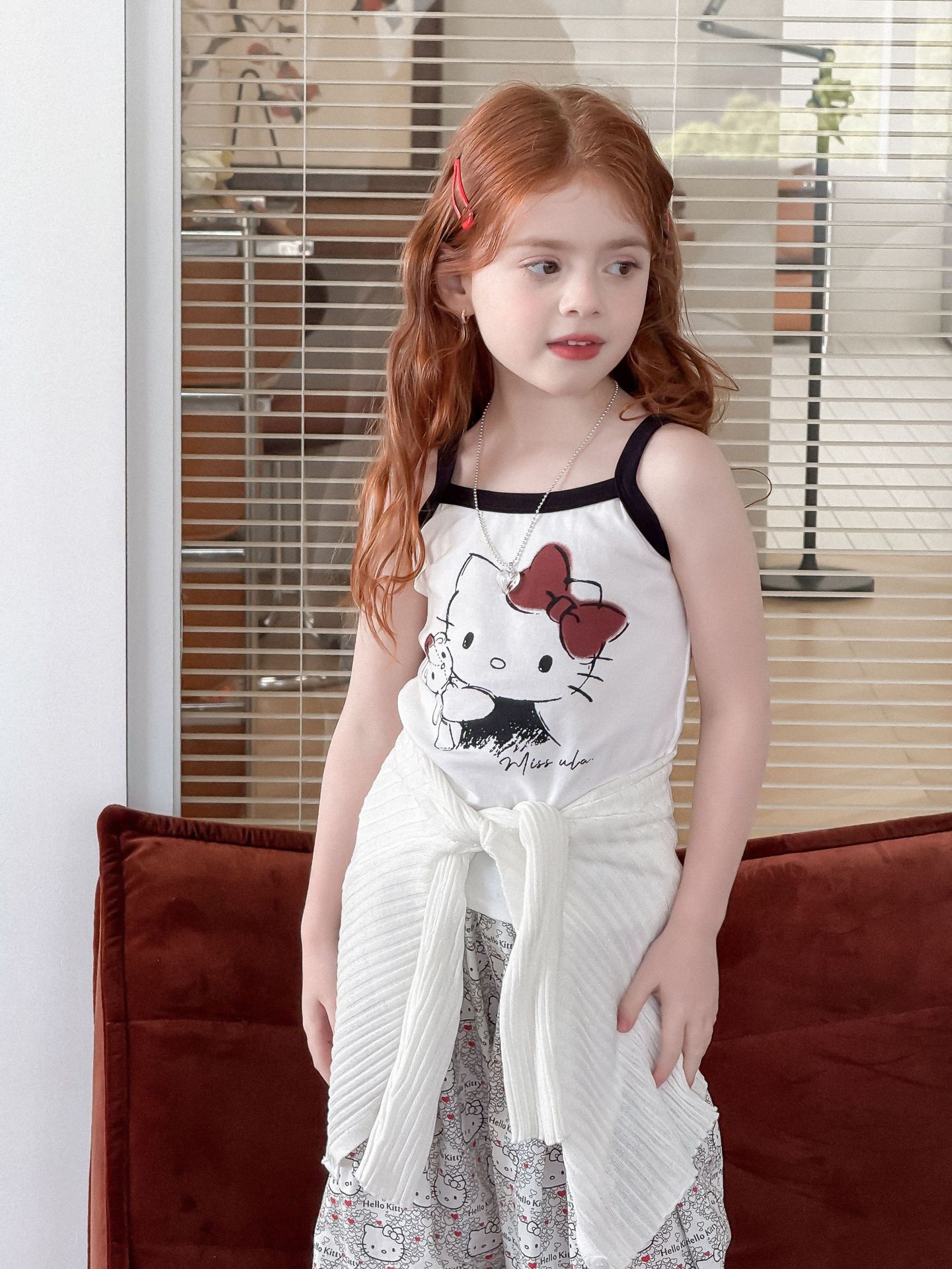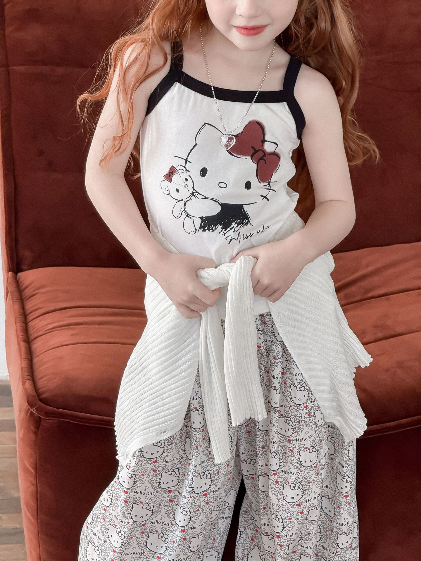 소녀의 인쇄 조끼 2025 여름 새로운 귀여운 만화 카미 솔 어린이 슬림 핏 스트레치 얇은 트렌디 탑스토어 가기