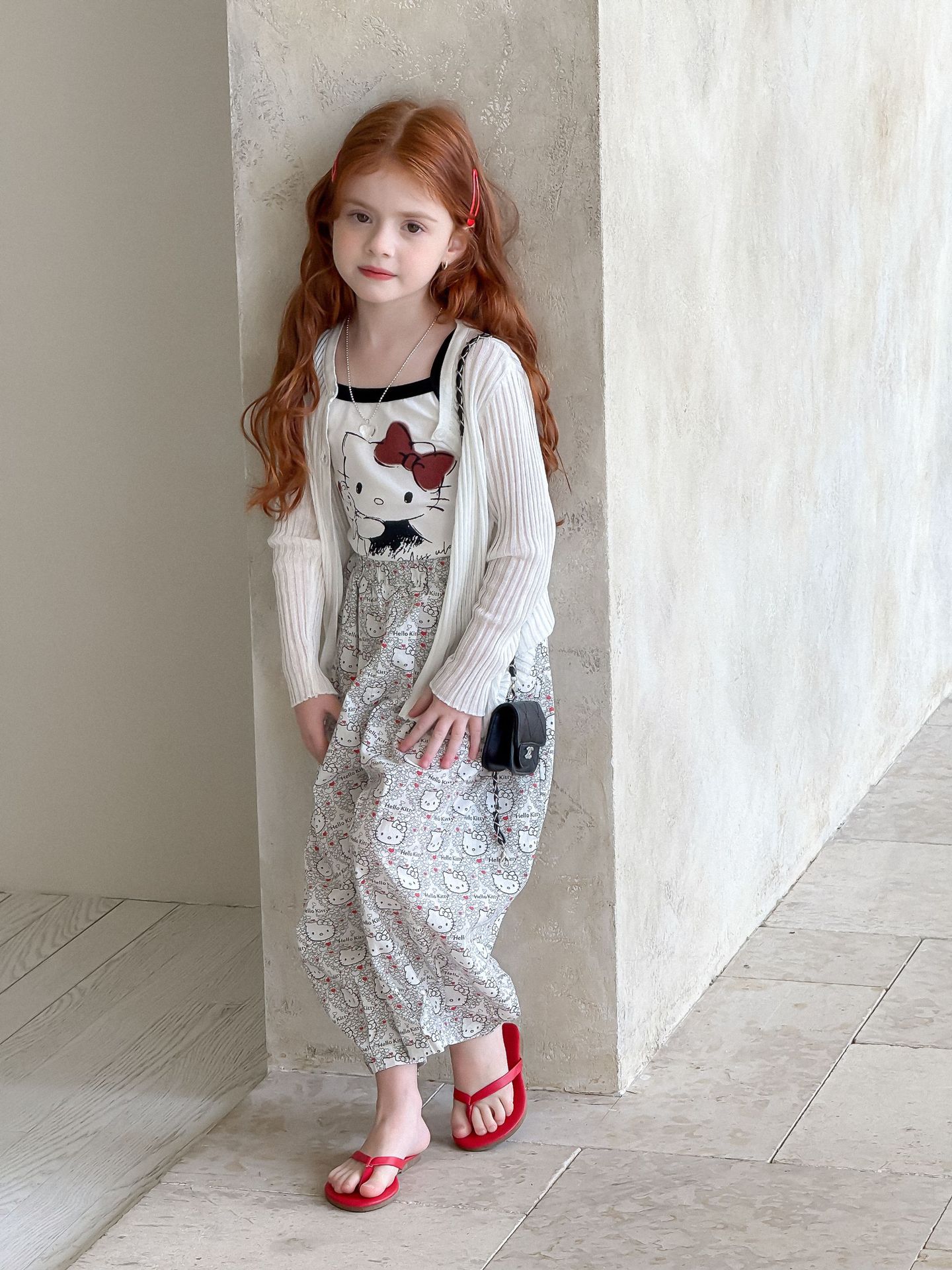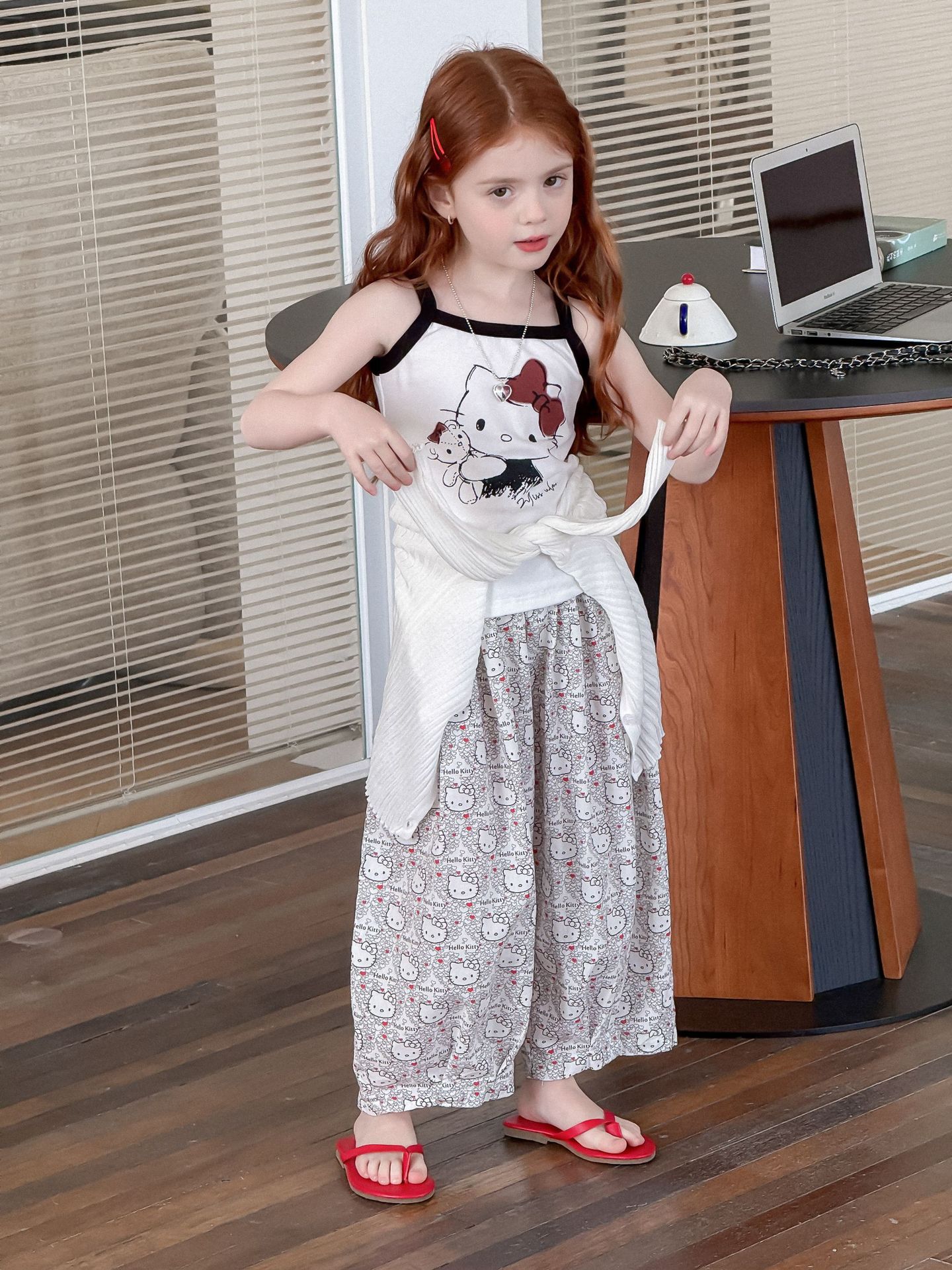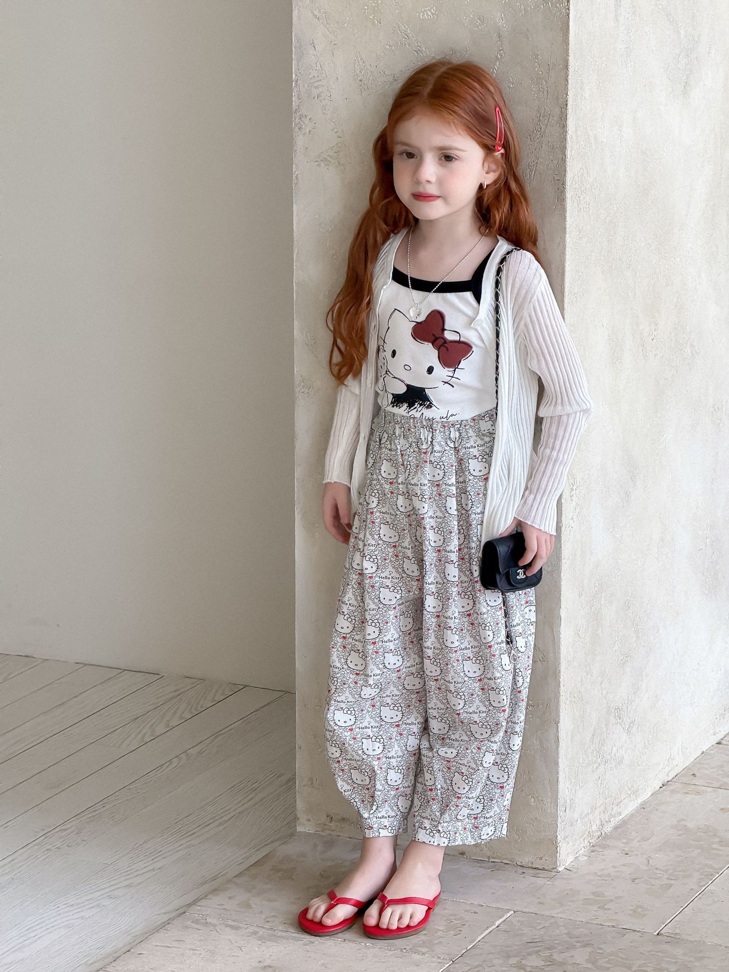 소녀의 인쇄 조끼 2025 여름 새로운 귀여운 만화 카미 솔 어린이 슬림 핏 스트레치 얇은 트렌디 탑스토어 가기