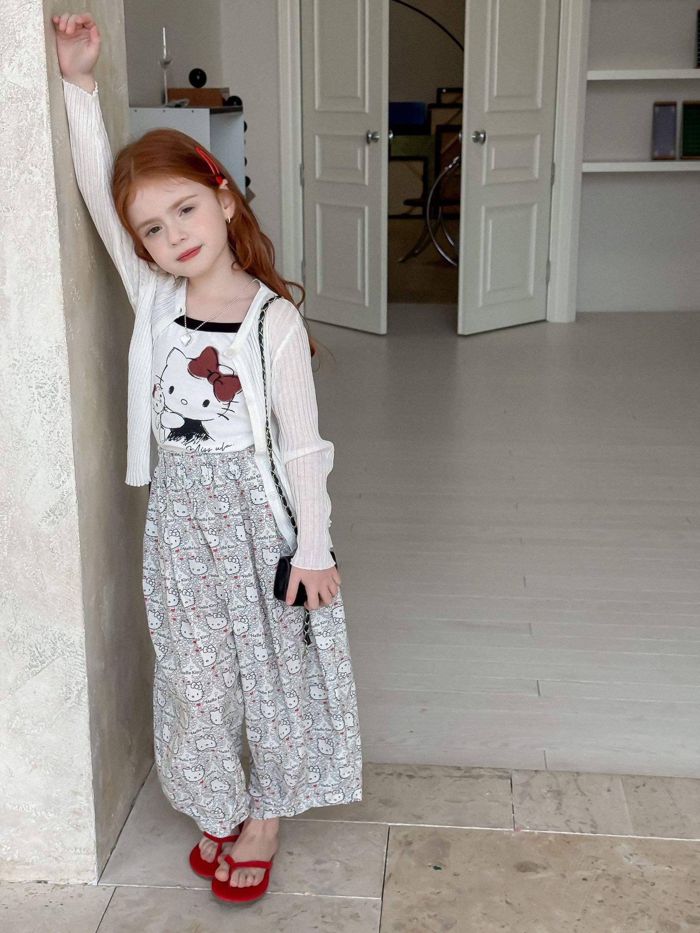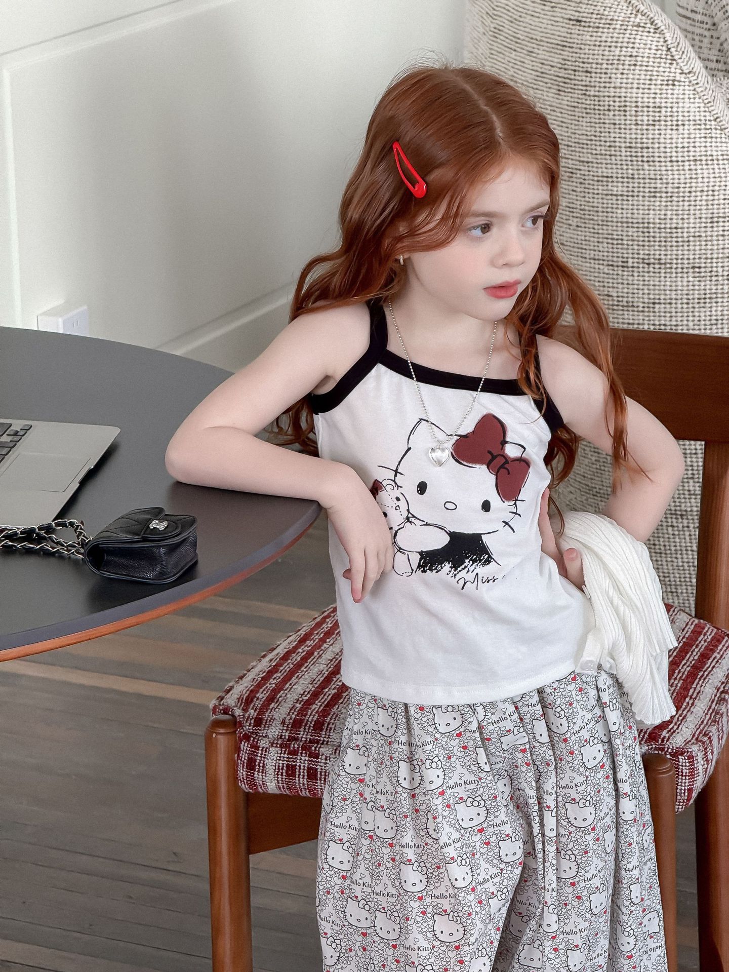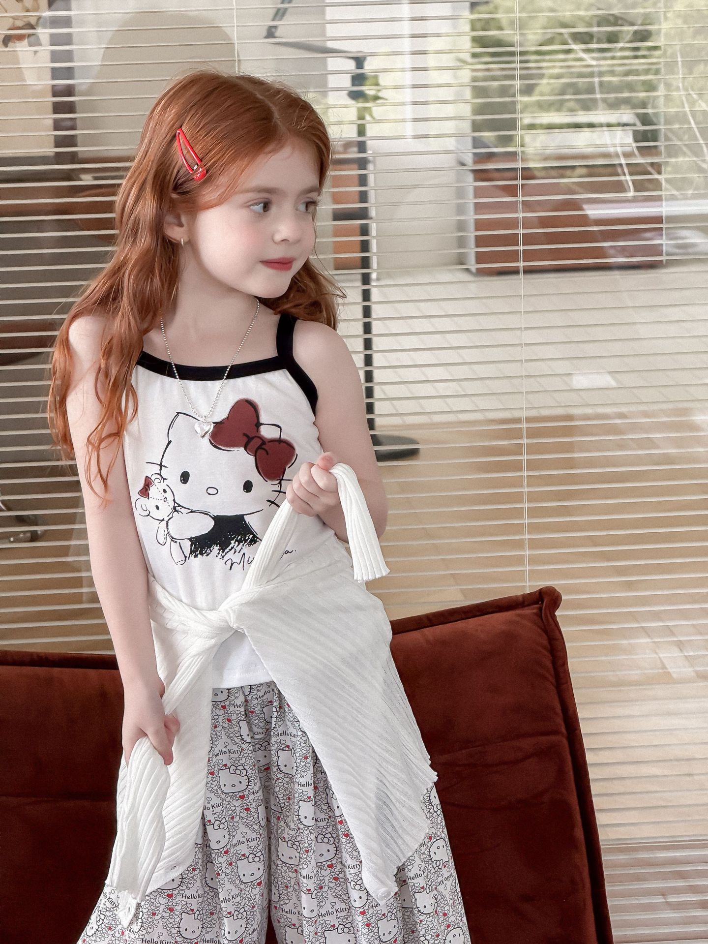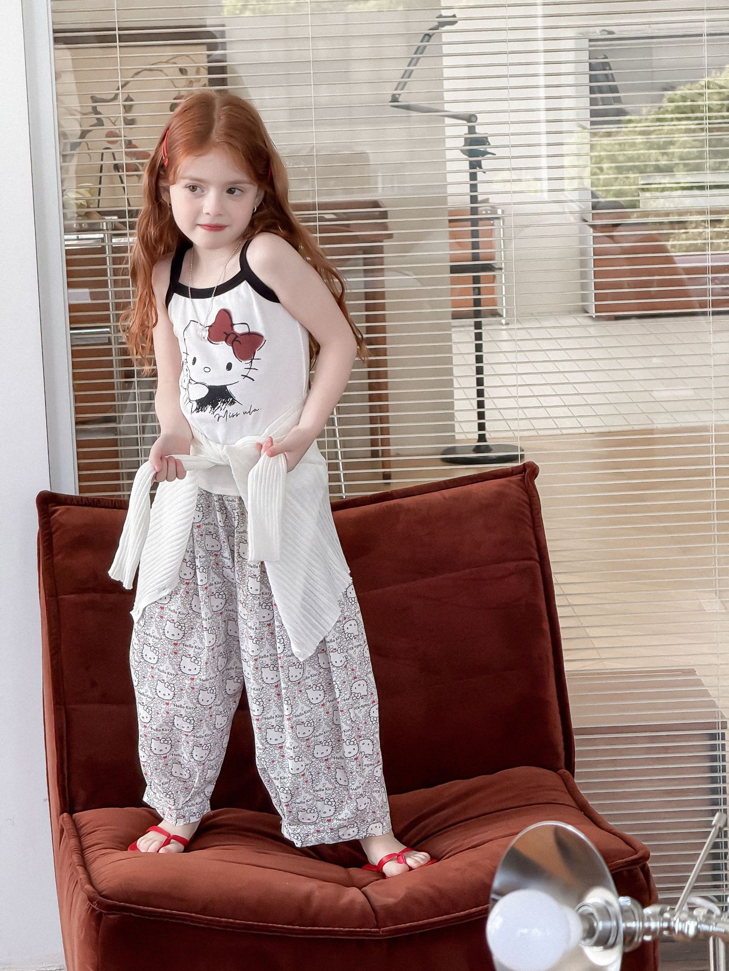 소녀의 인쇄 조끼 2025 여름 새로운 귀여운 만화 카미 솔 어린이 슬림 핏 스트레치 얇은 트렌디 탑스토어 가기