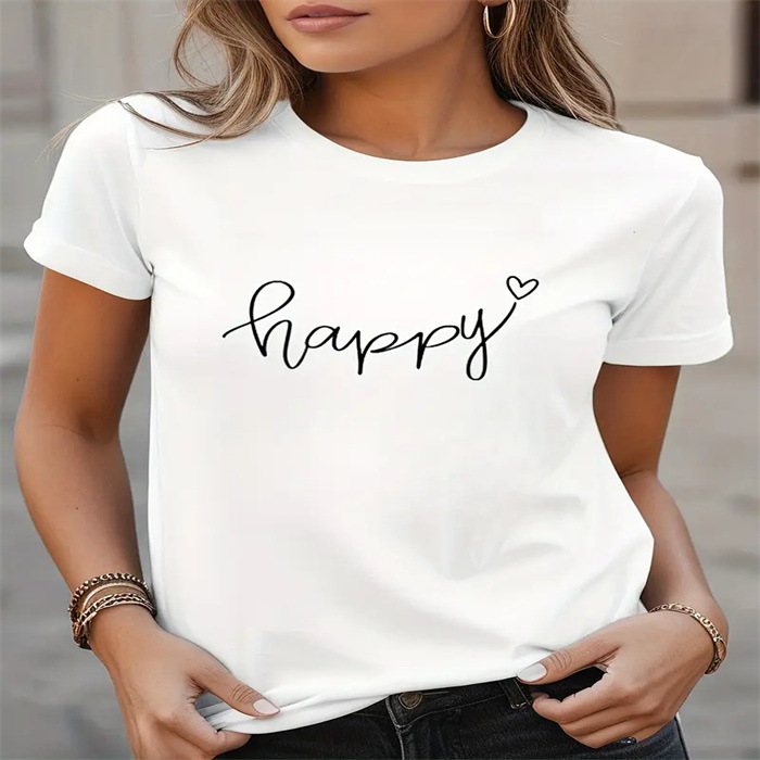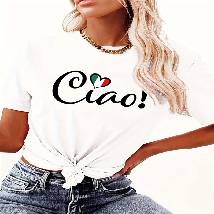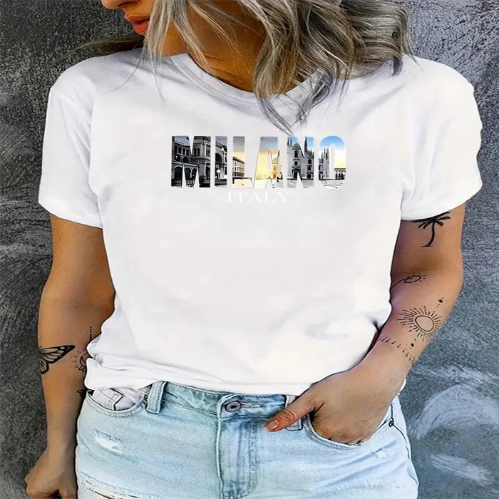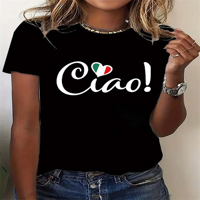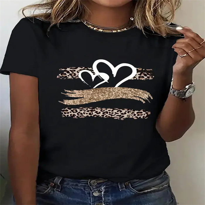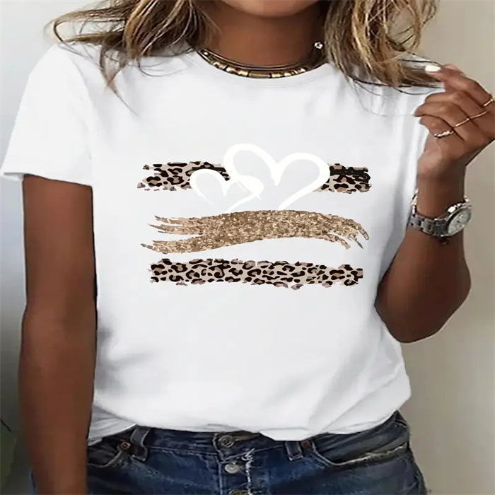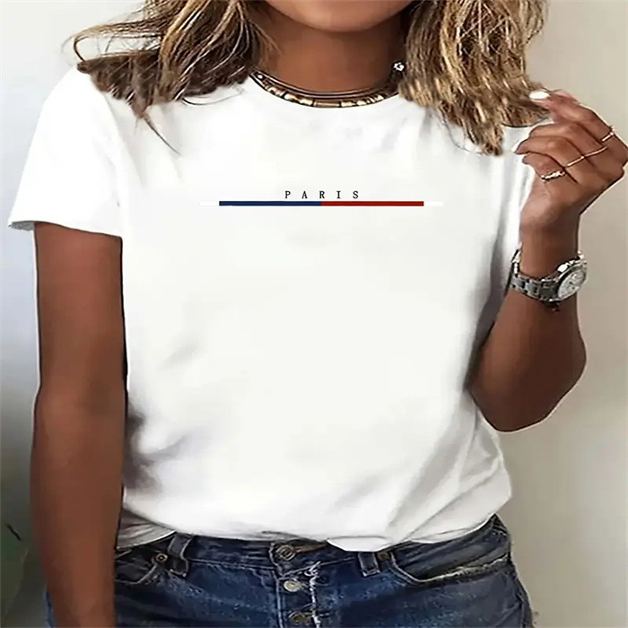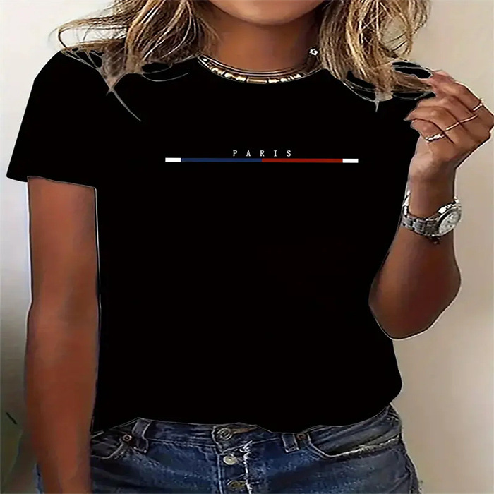 국경 간 스팟 여성 여름 티셔츠 프린트 패션 캐주얼 귀여운 반팔 여성 라운드 넥 프린트 반팔 티셔츠스토어 가기