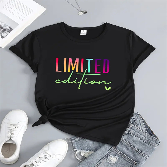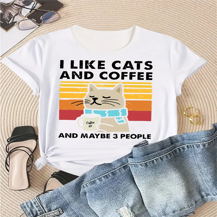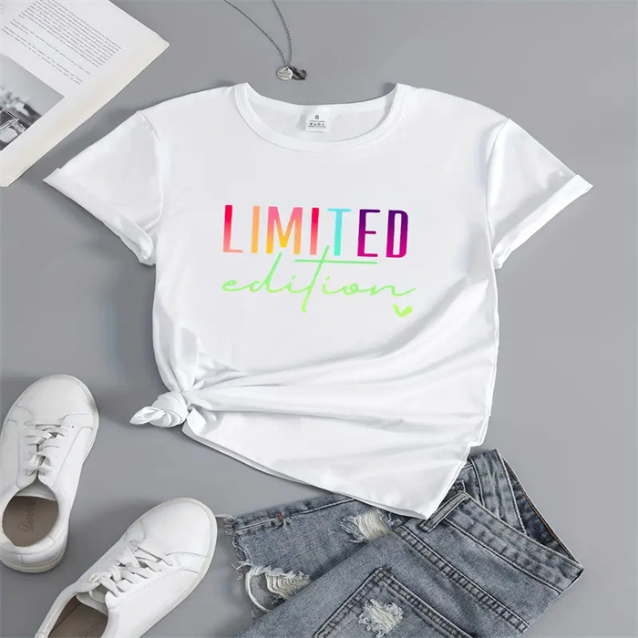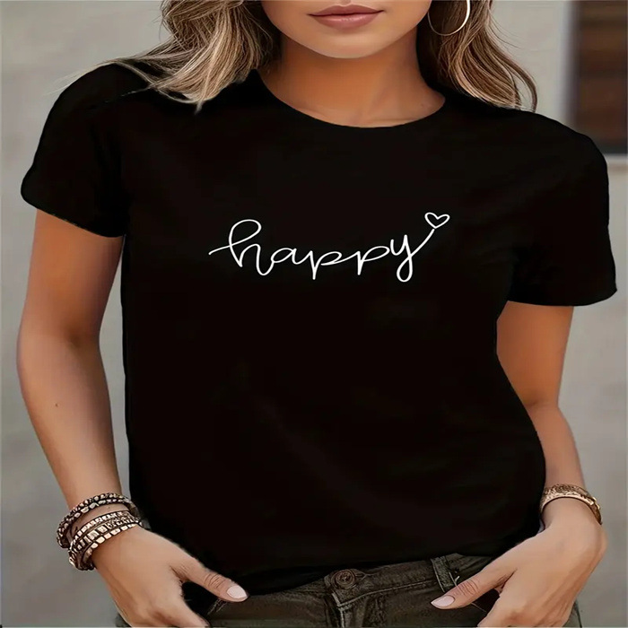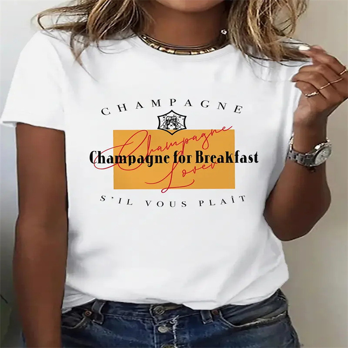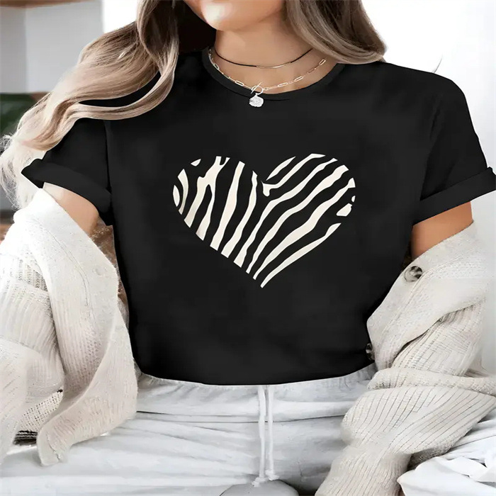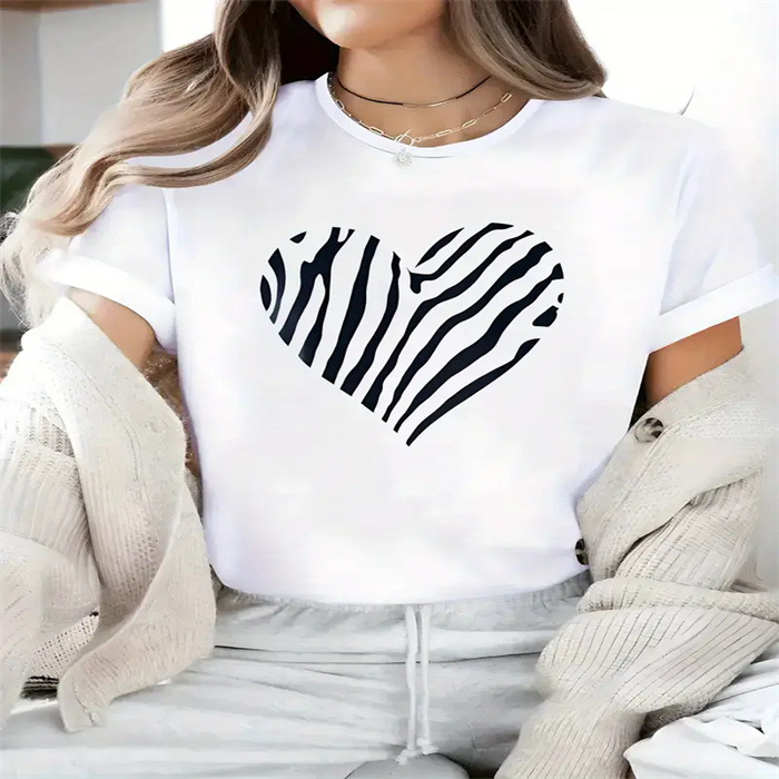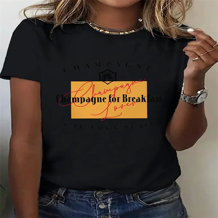 국경 간 스팟 여성 여름 티셔츠 프린트 패션 캐주얼 귀여운 반팔 여성 라운드 넥 프린트 반팔 티셔츠스토어 가기