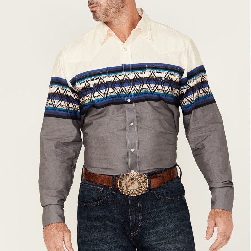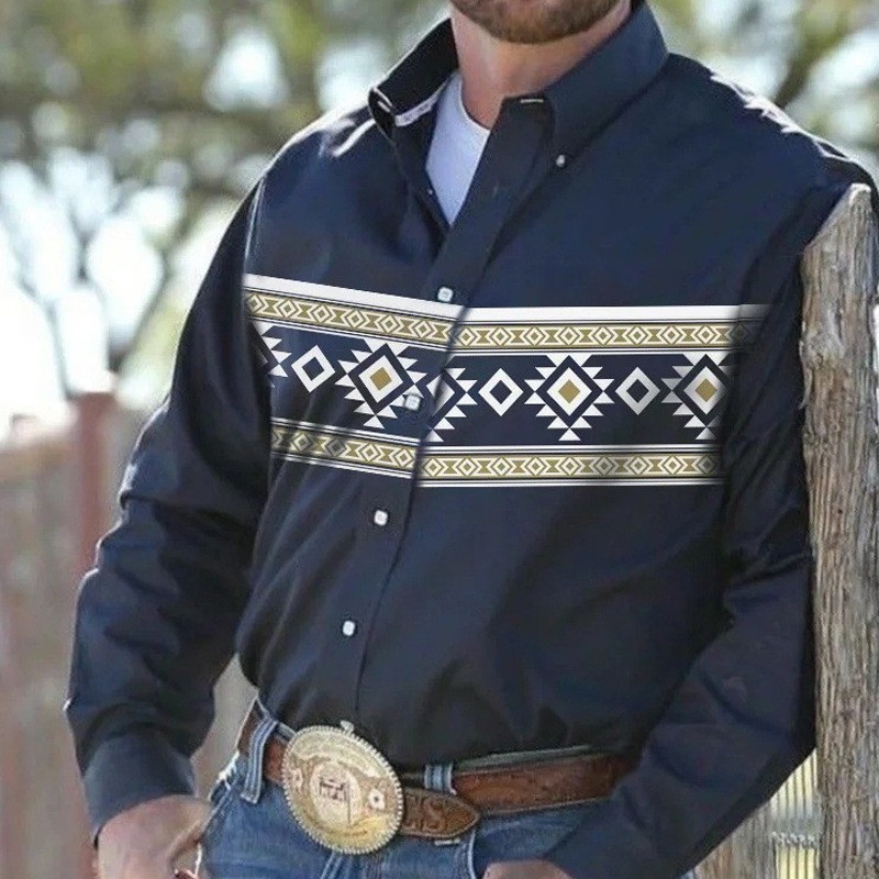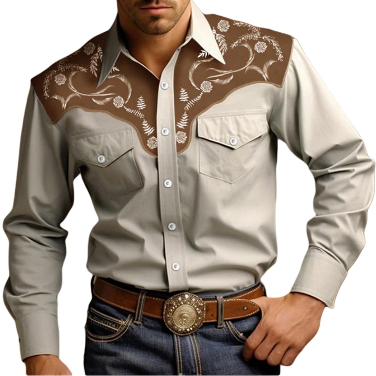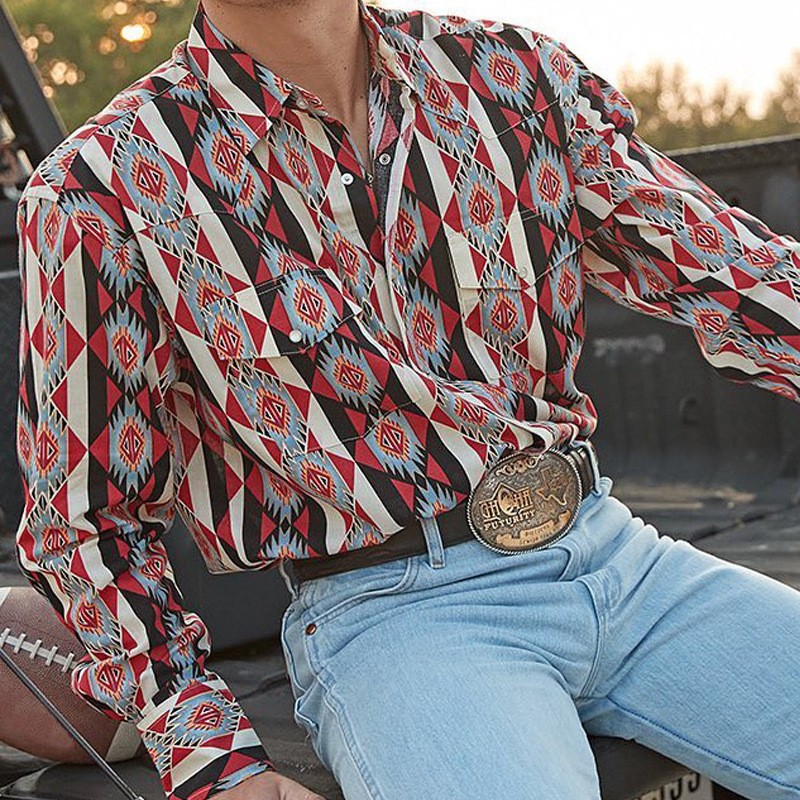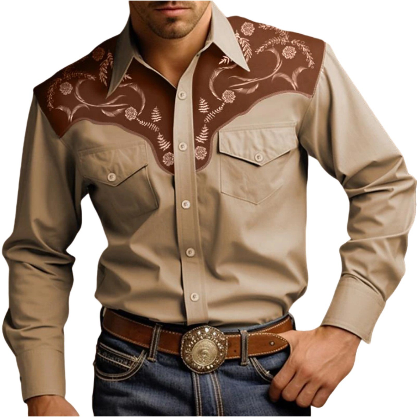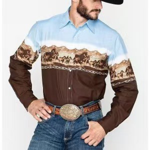 크로스보더 웨스턴 카우보이 트렌드 레트로 젊은 남성용 펑크 디지털 프린트 더블 시계주머니 남성 셔츠 다림질 필요 없음스토어 가기
