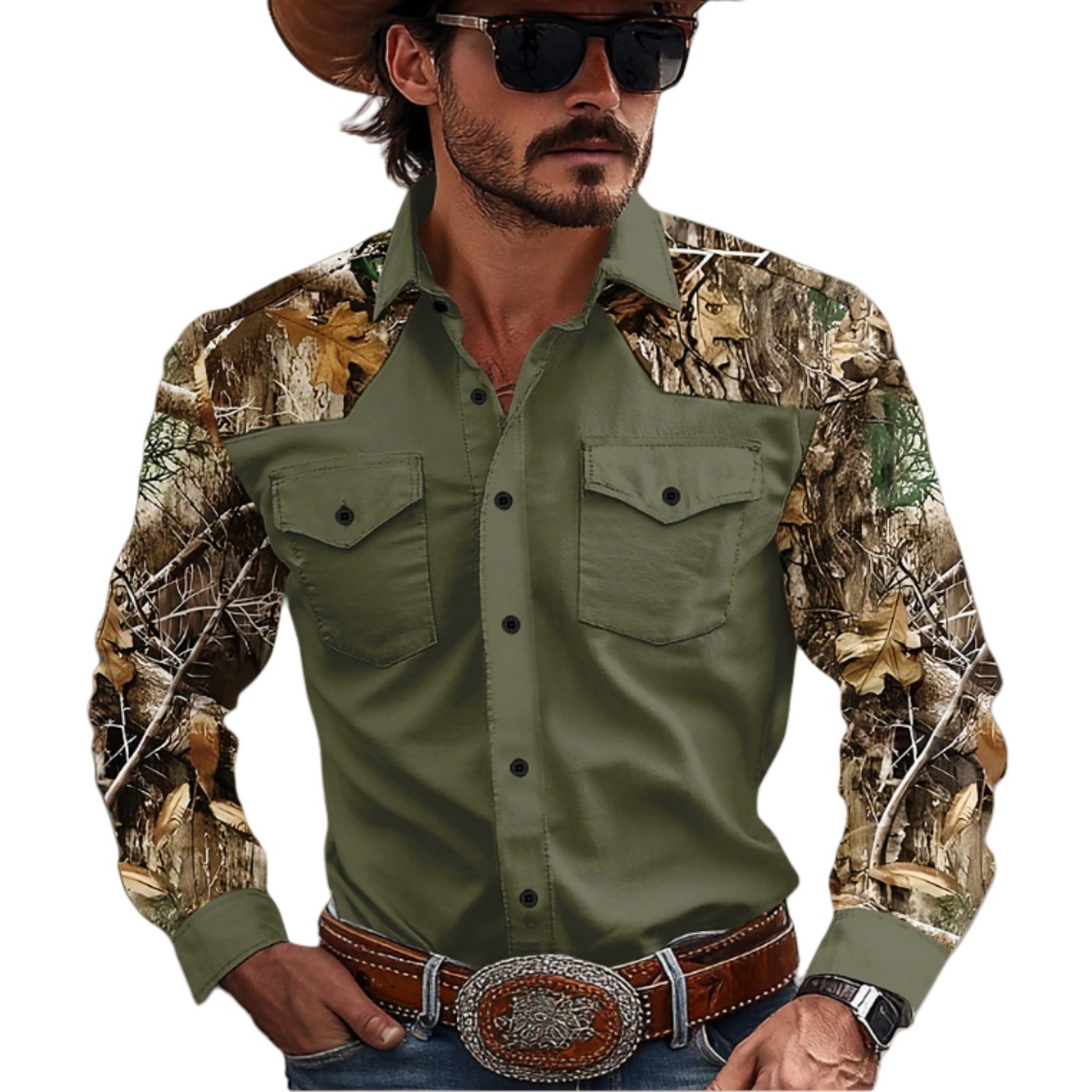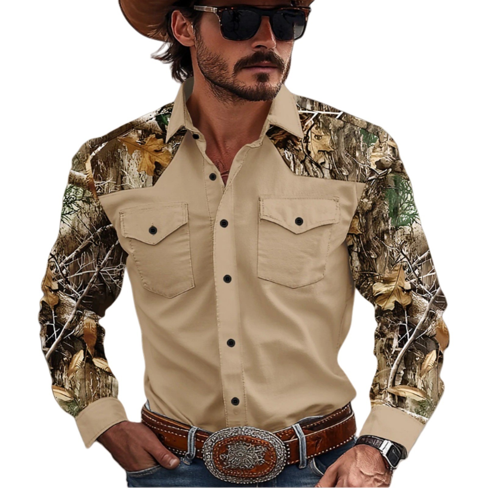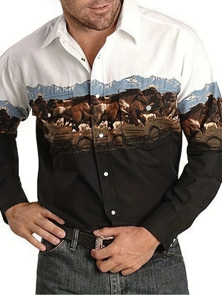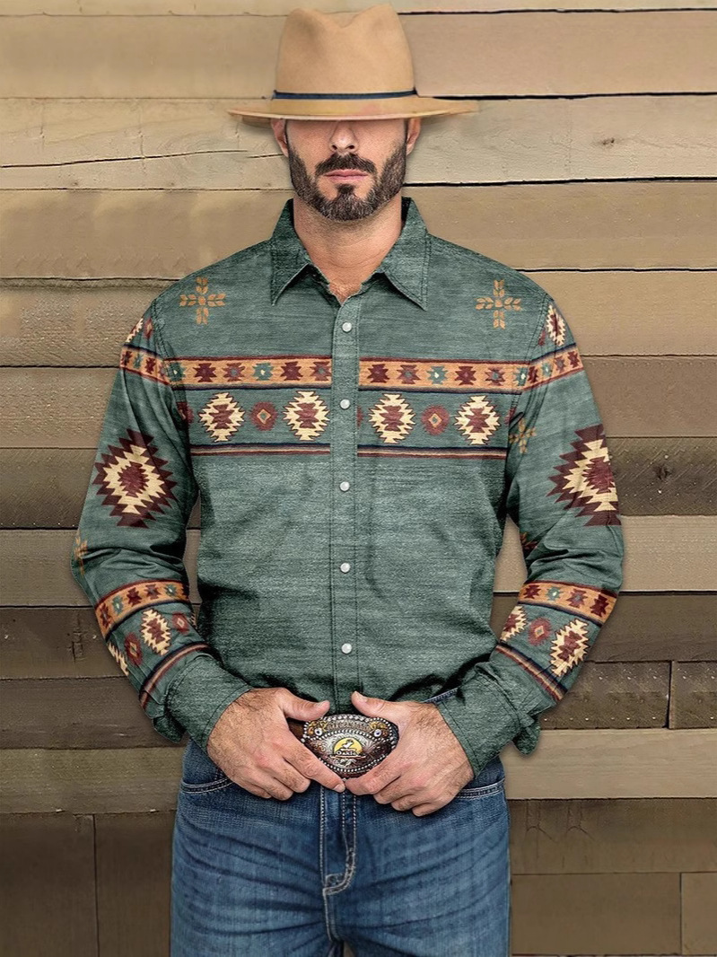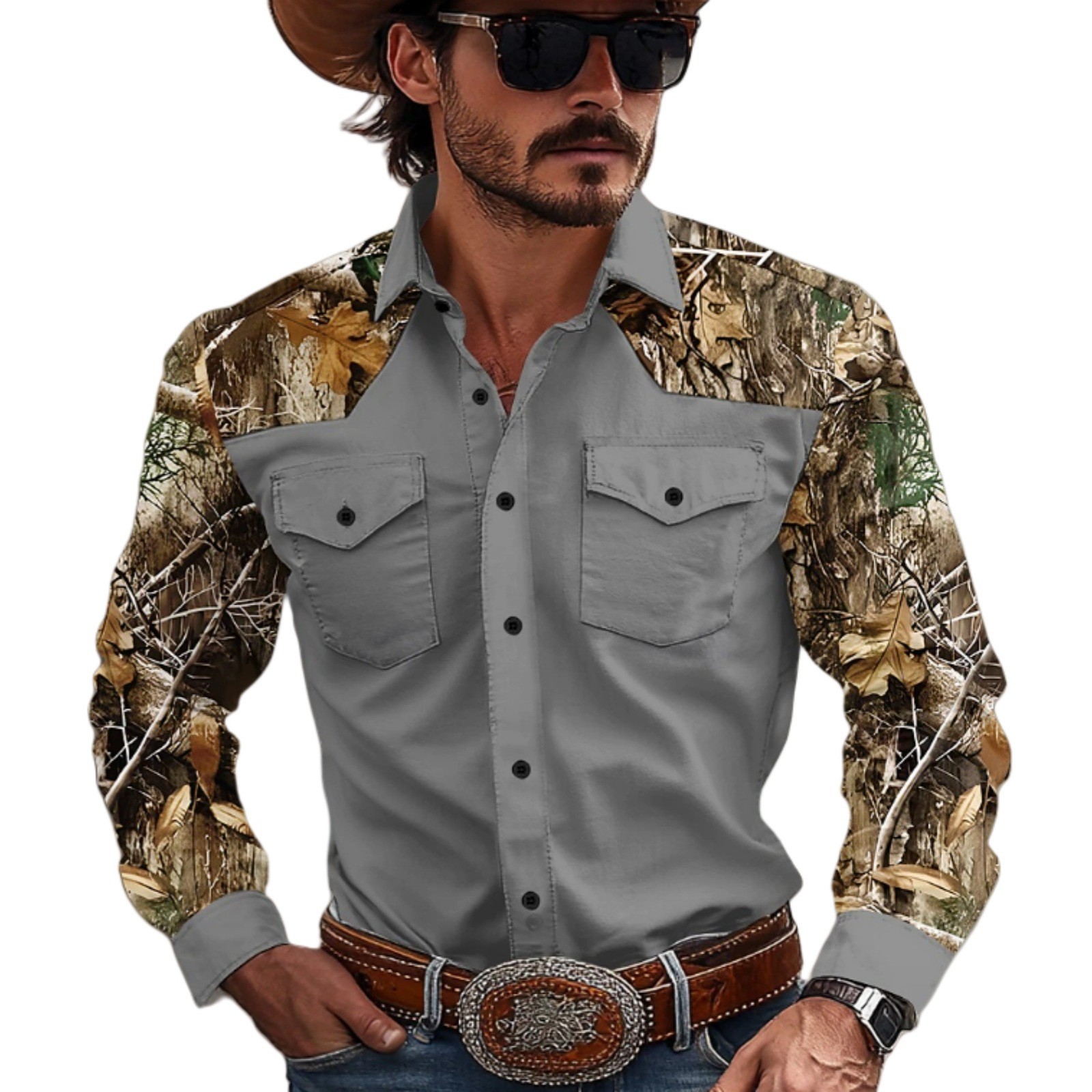 크로스보더 웨스턴 카우보이 트렌드 레트로 젊은 남성용 펑크 디지털 프린트 더블 시계주머니 남성 셔츠 다림질 필요 없음스토어 가기