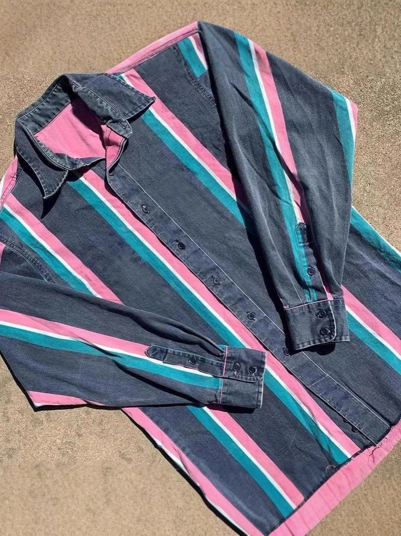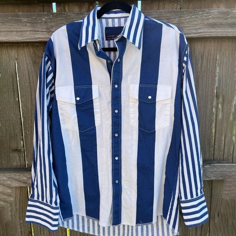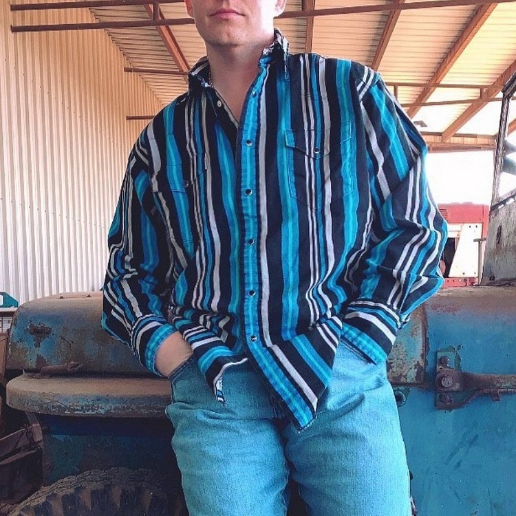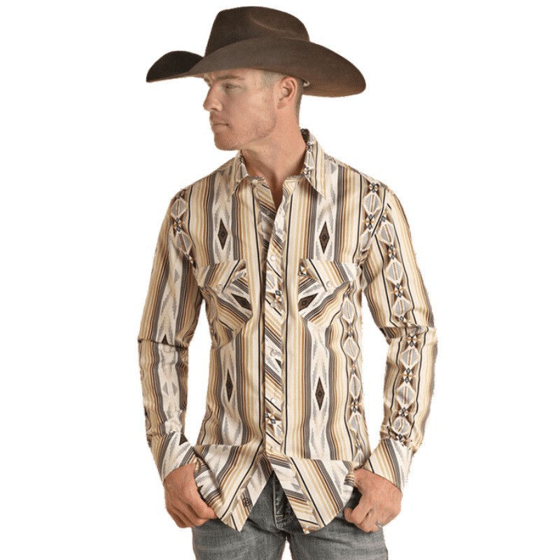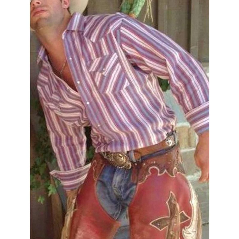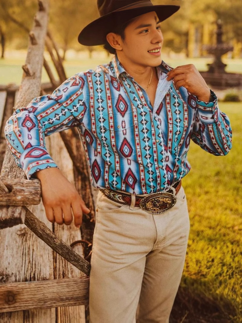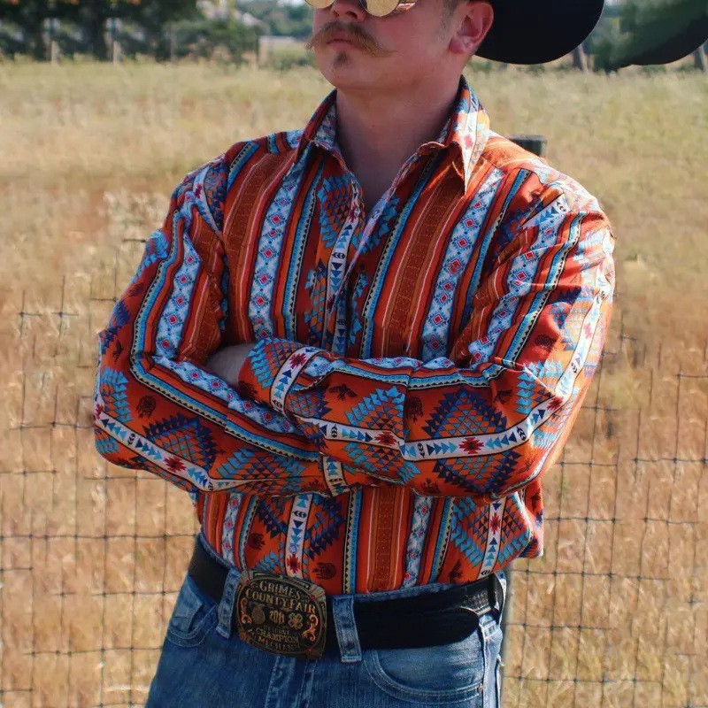 크로스보더 웨스턴 카우보이 트렌드 레트로 젊은 남성용 펑크 디지털 프린트 더블 시계주머니 남성 셔츠 다림질 필요 없음스토어 가기