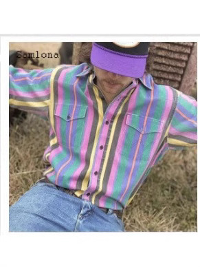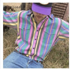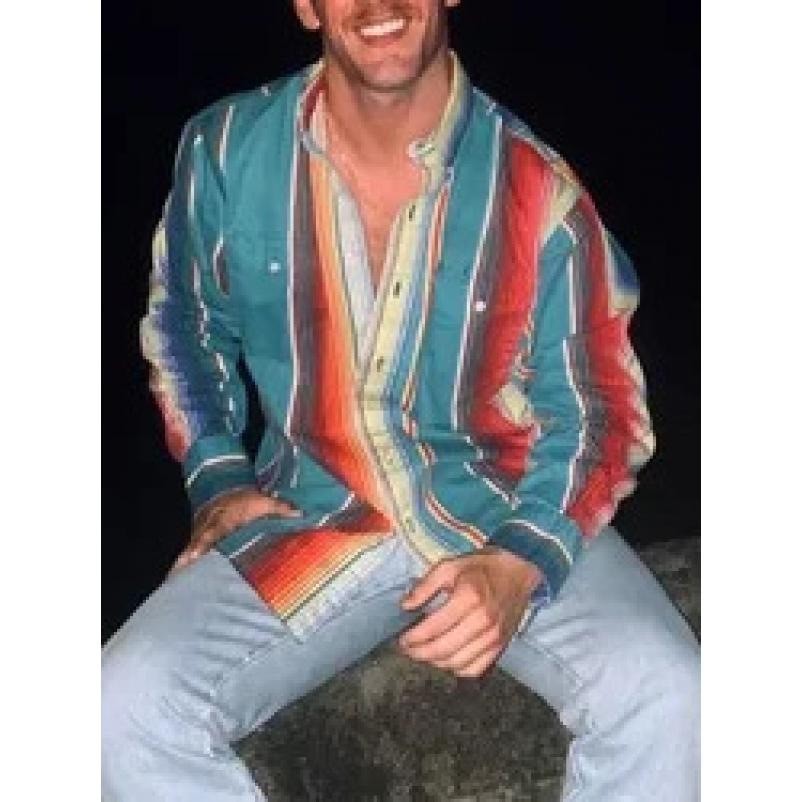 크로스보더 웨스턴 카우보이 트렌드 레트로 젊은 남성용 펑크 디지털 프린트 더블 시계주머니 남성 셔츠 다림질 필요 없음