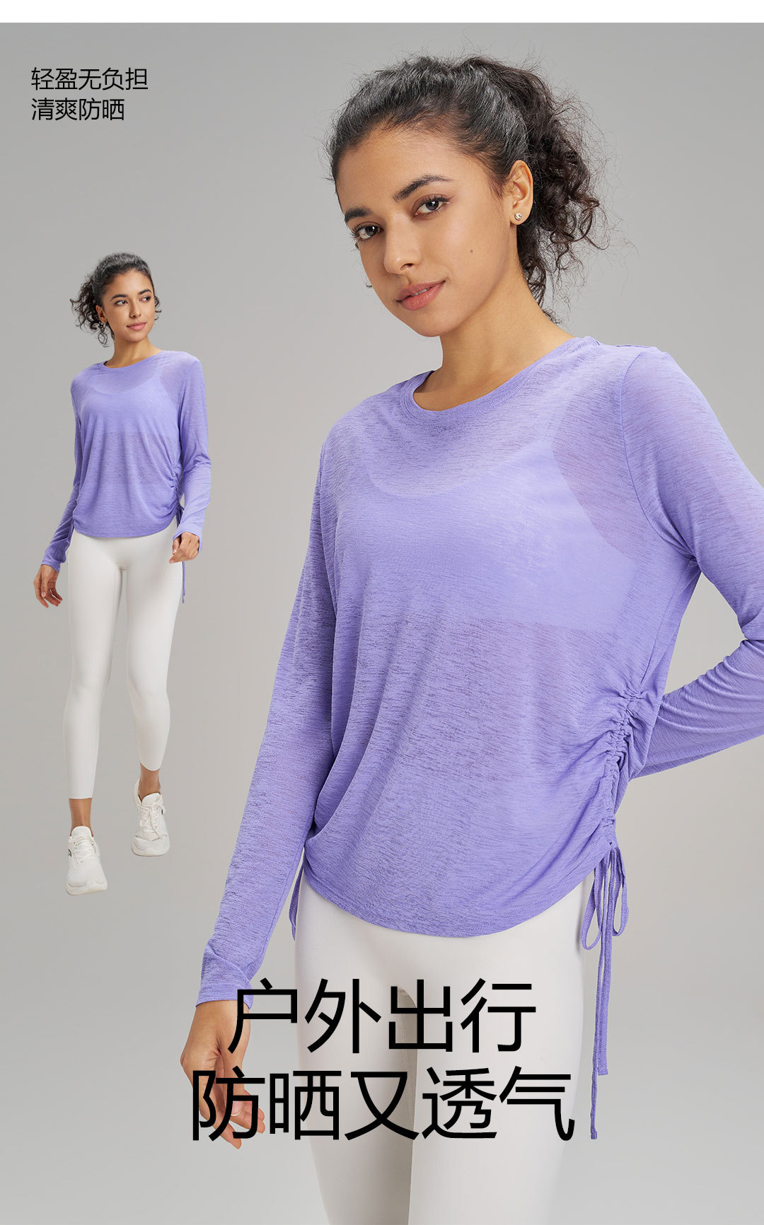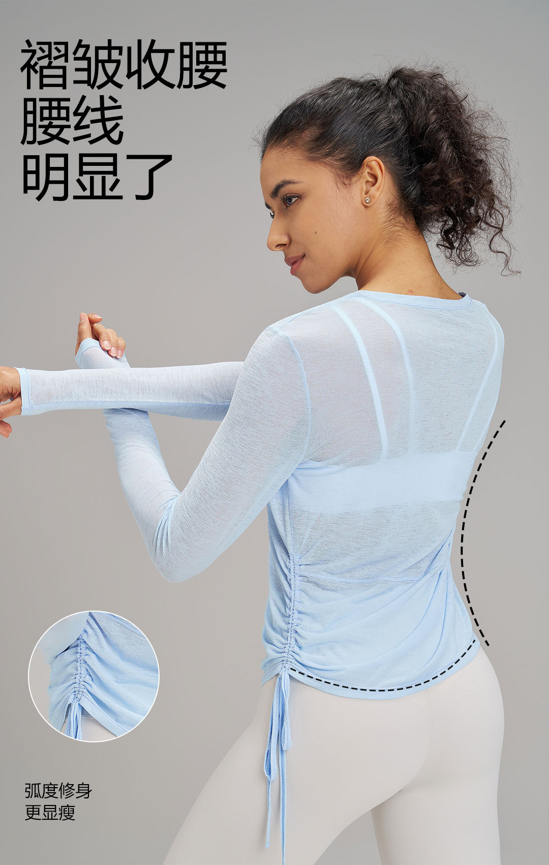 메쉬 통기성 Drawstring 긴 소매 탑 스포츠 피트니스 요가 티셔츠 빠른 건조 관점 느슨한 요가 착용 여성스토어 가기