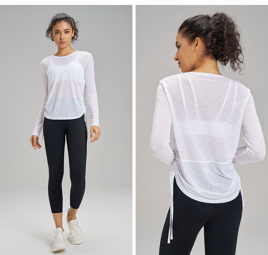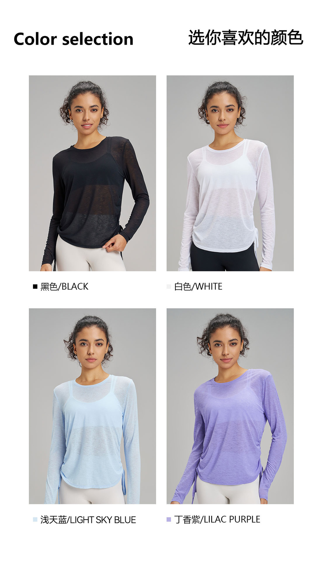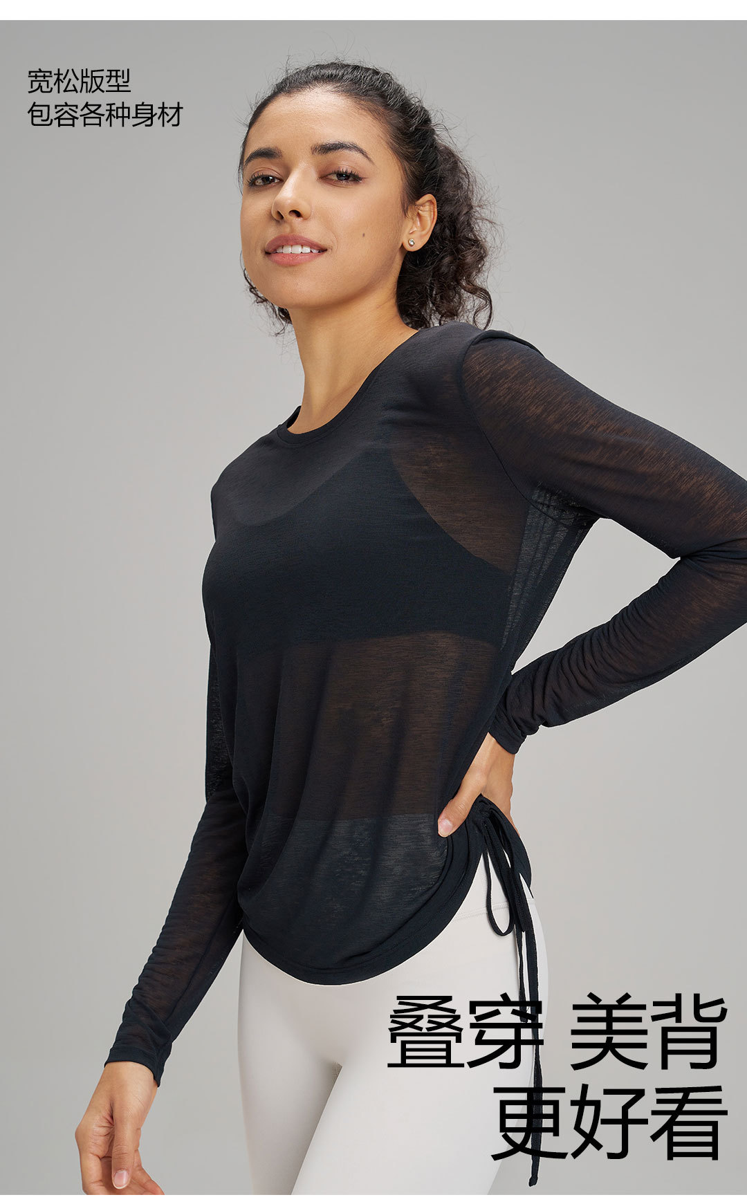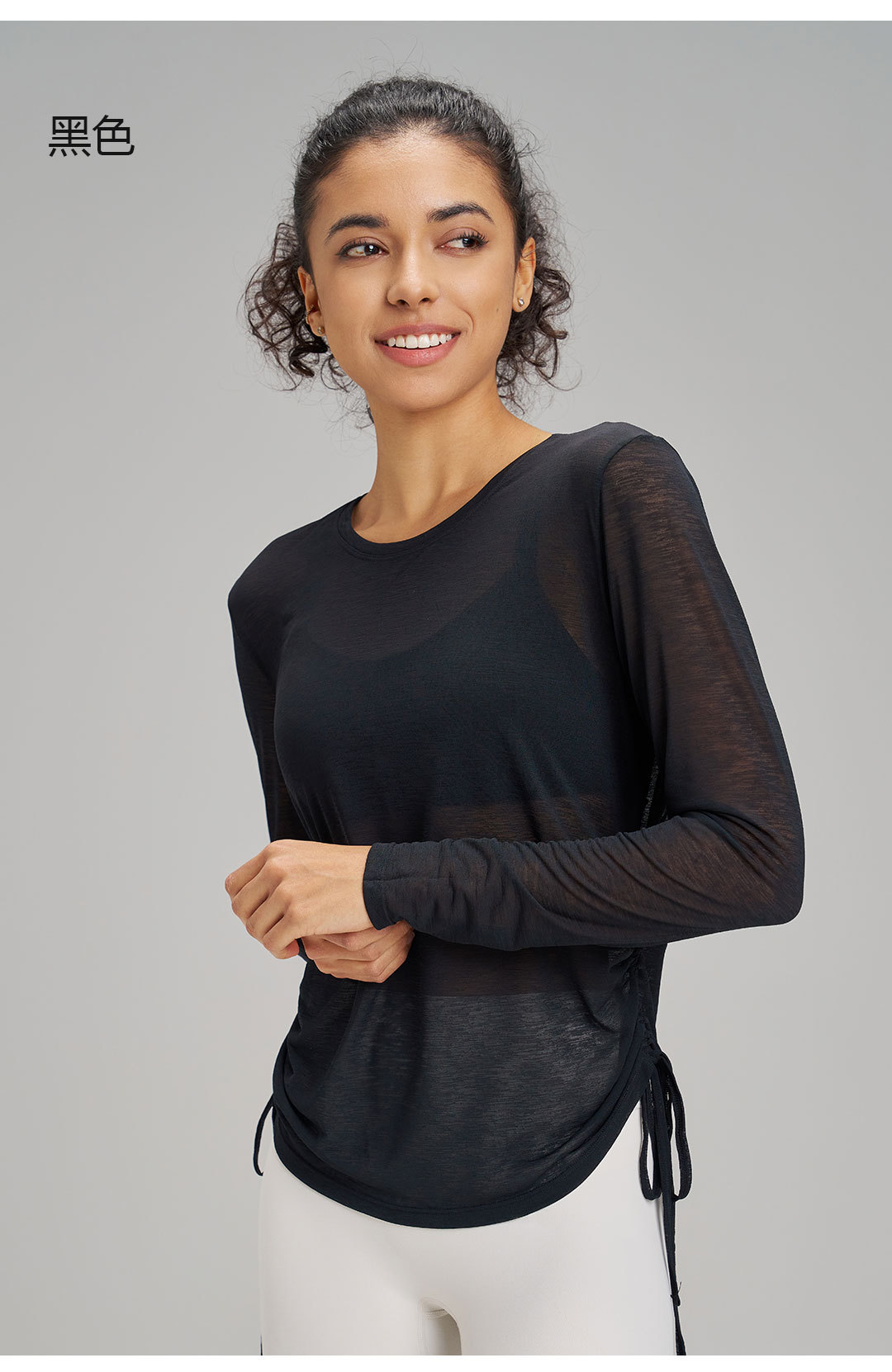 메쉬 통기성 Drawstring 긴 소매 탑 스포츠 피트니스 요가 티셔츠 빠른 건조 관점 느슨한 요가 착용 여성