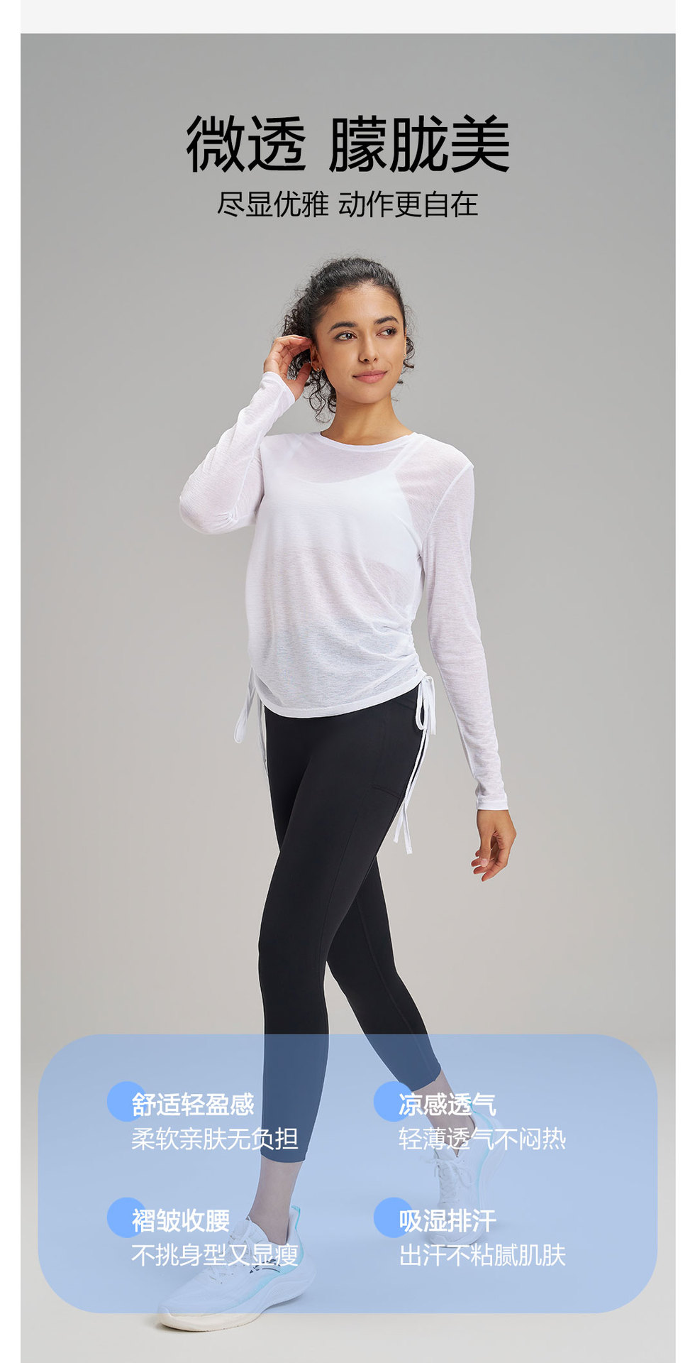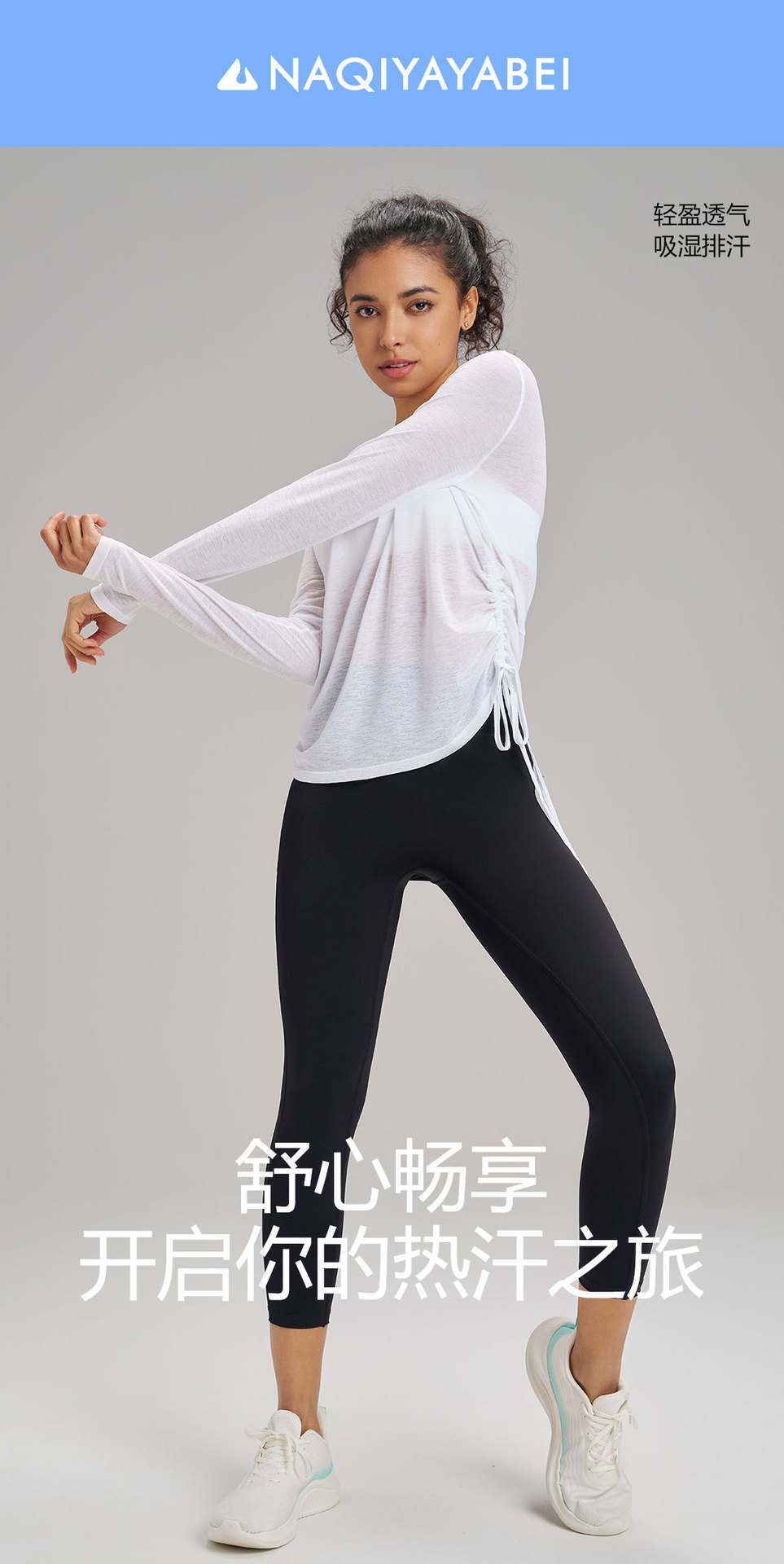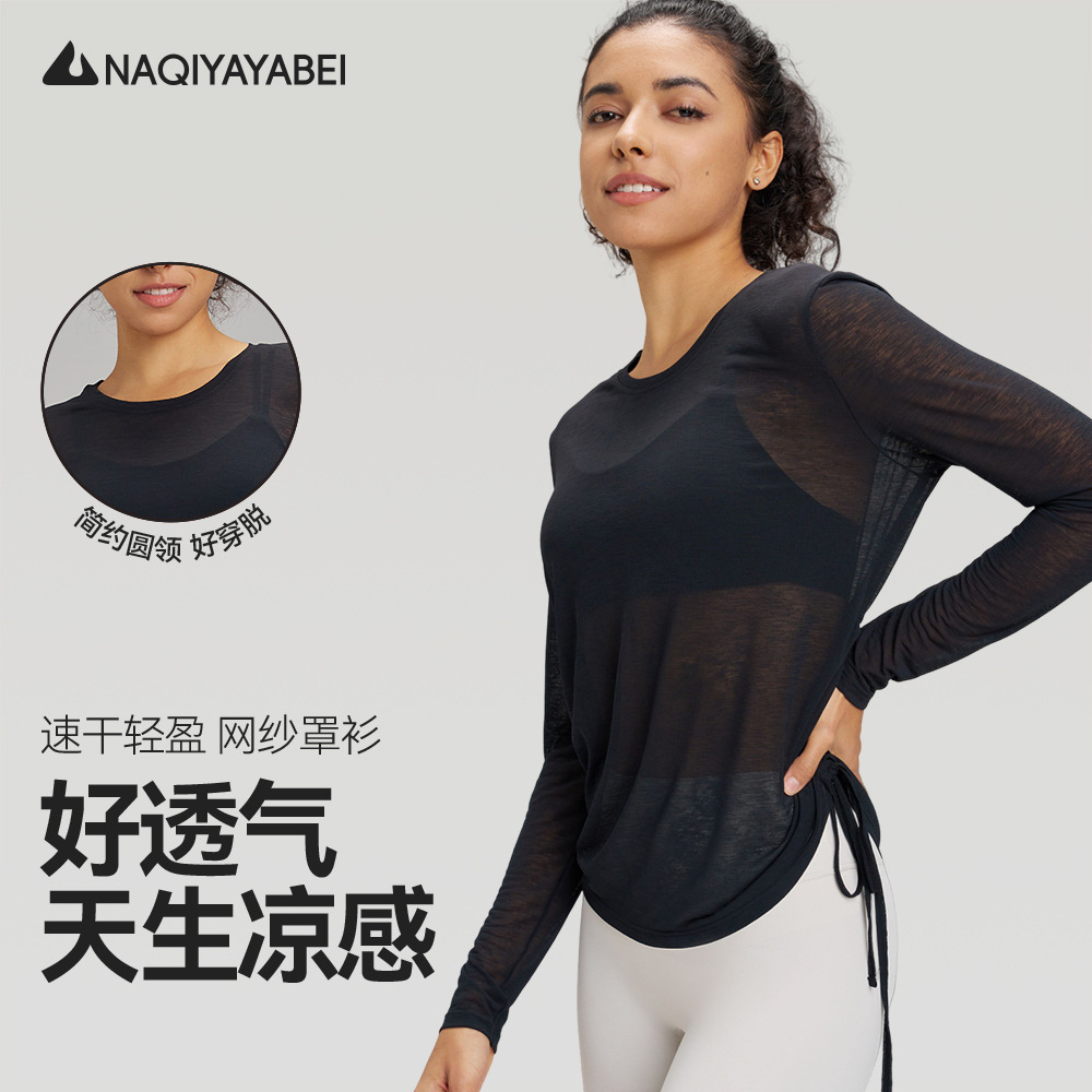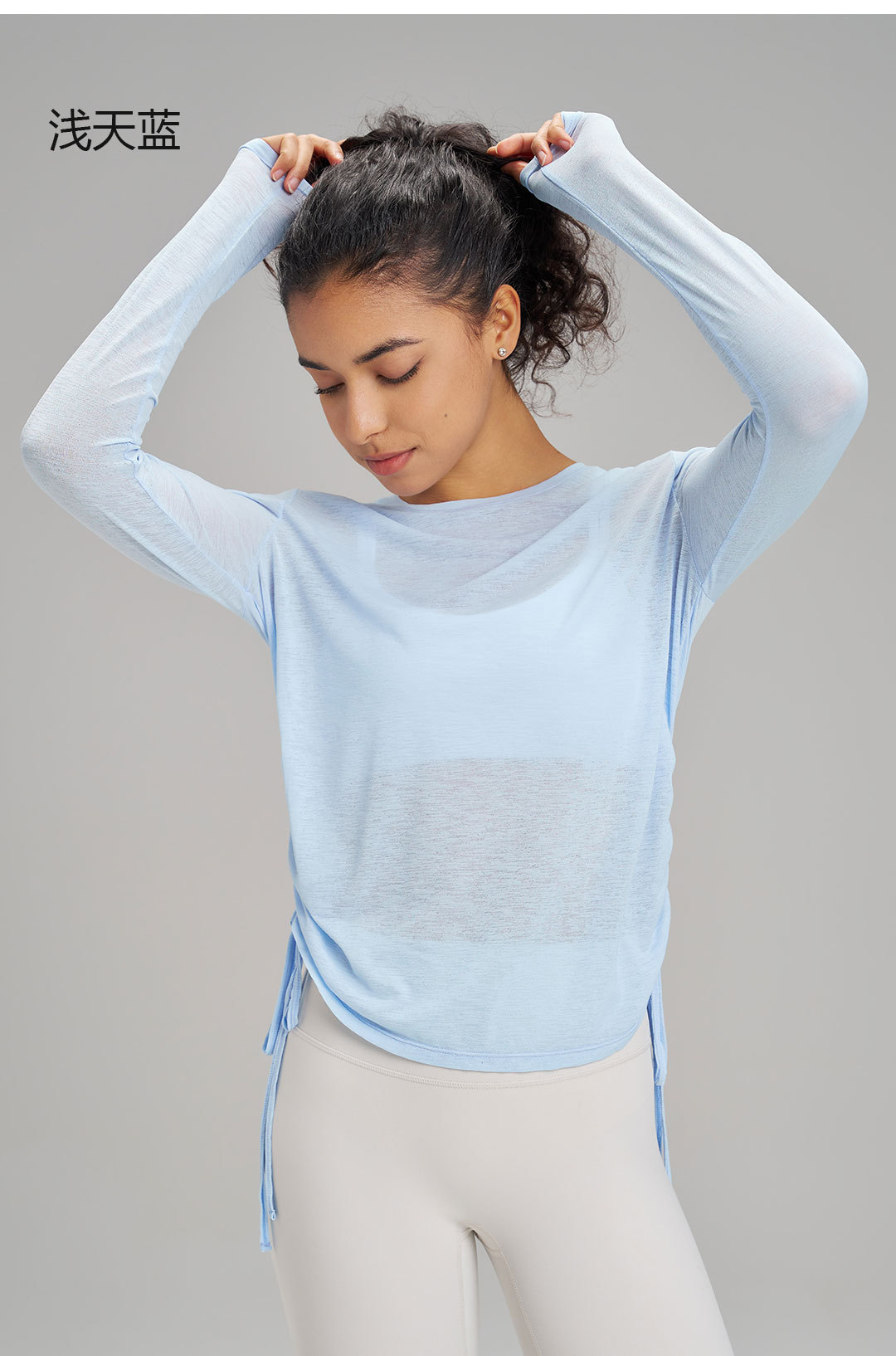 메쉬 통기성 Drawstring 긴 소매 탑 스포츠 피트니스 요가 티셔츠 빠른 건조 관점 느슨한 요가 착용 여성