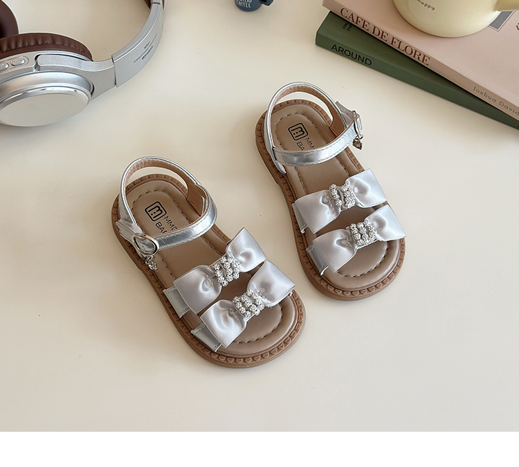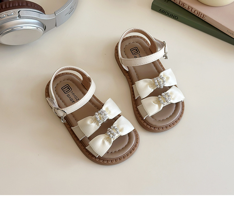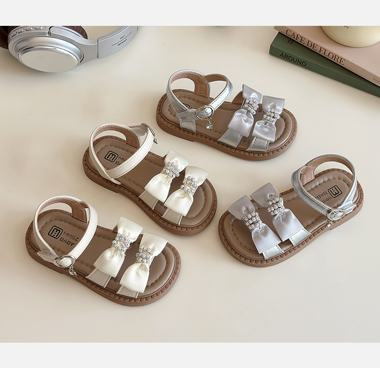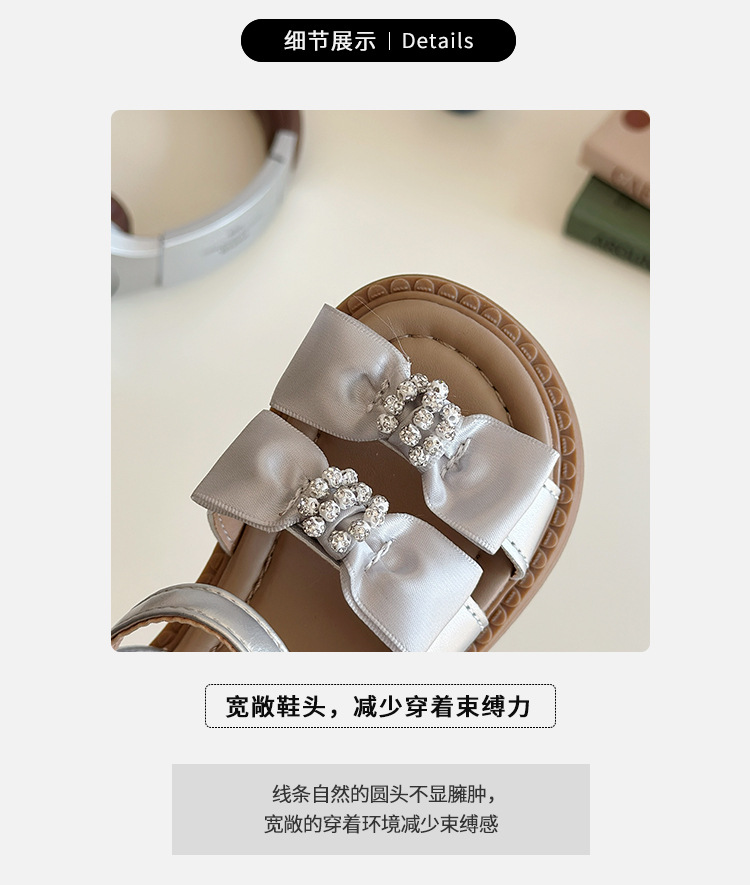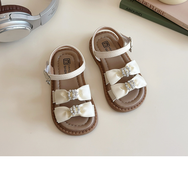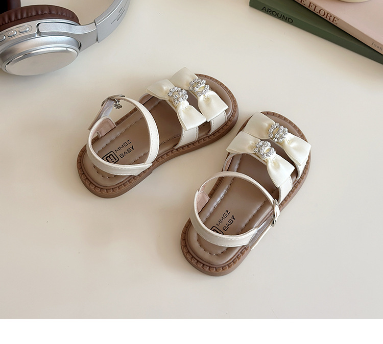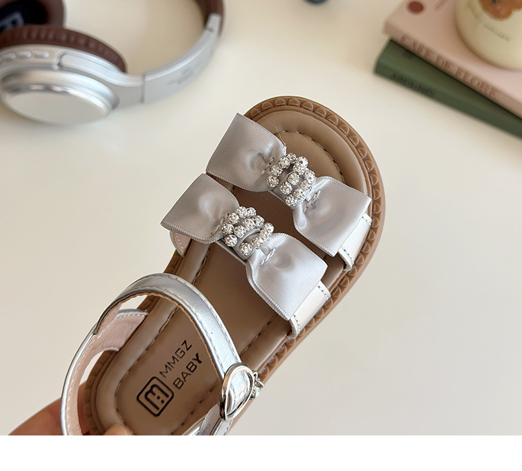 어린이 오픈토 샌들 2026 여름 신상품 소녀용 라인스톤 리본 신발 한국 스타일 여자 아기 공주 신발스토어 가기