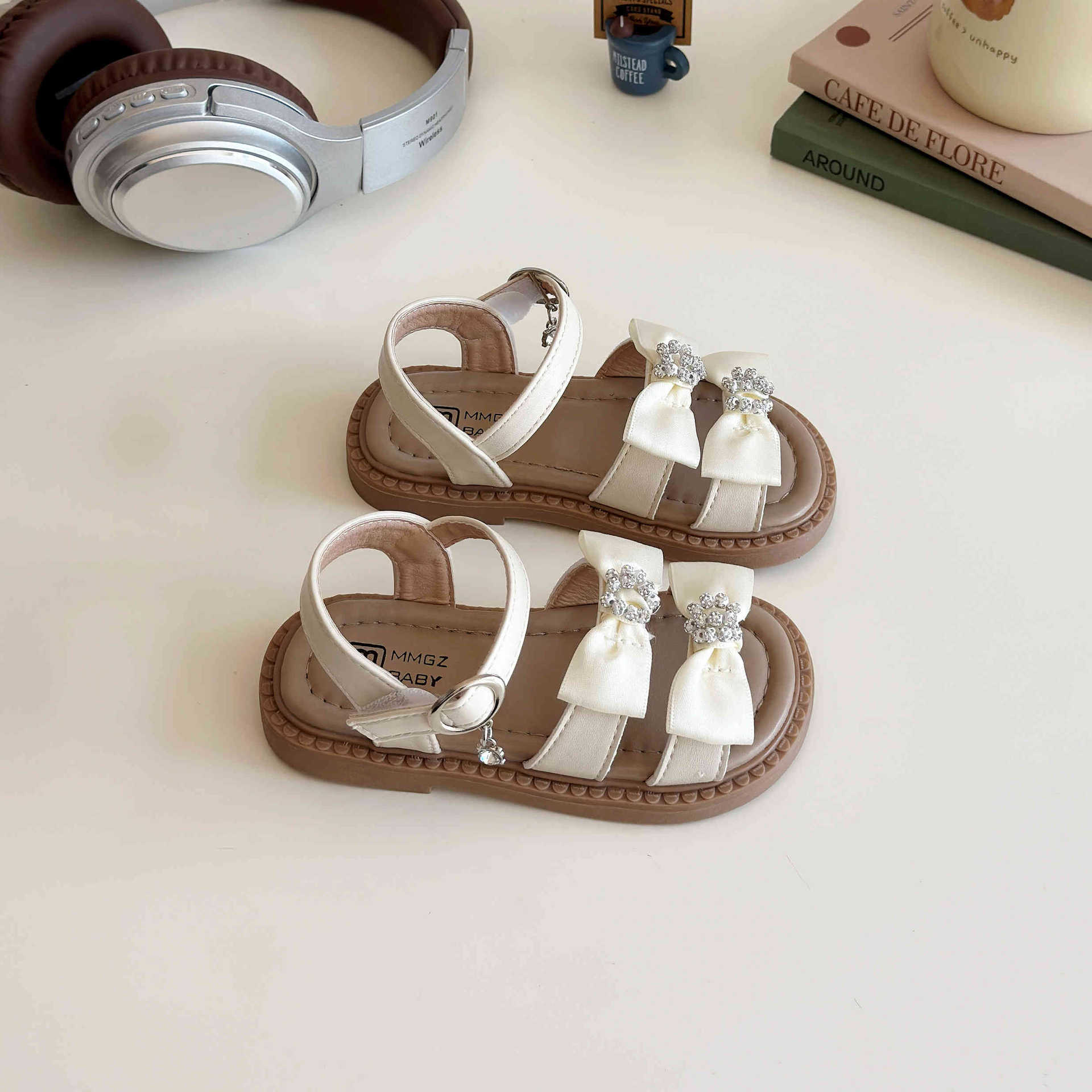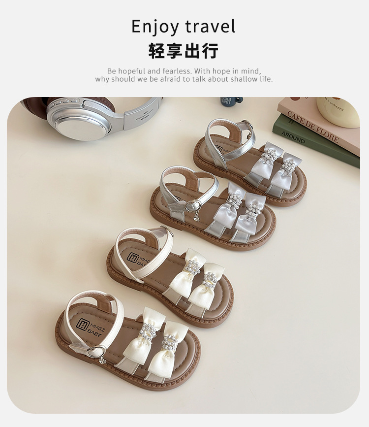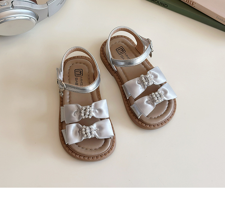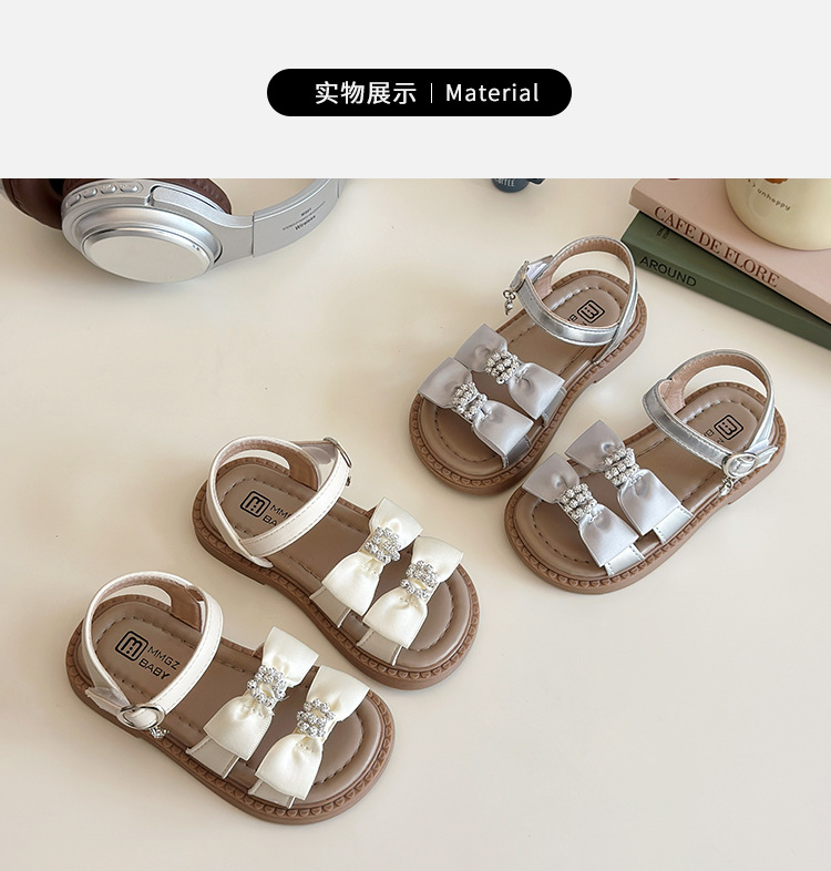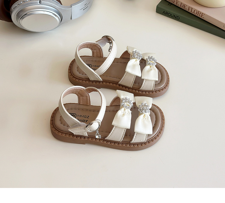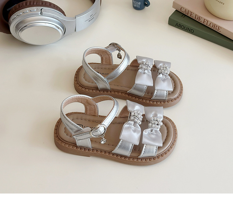 어린이 오픈토 샌들 2026 여름 신상품 소녀용 라인스톤 리본 신발 한국 스타일 여자 아기 공주 신발스토어 가기