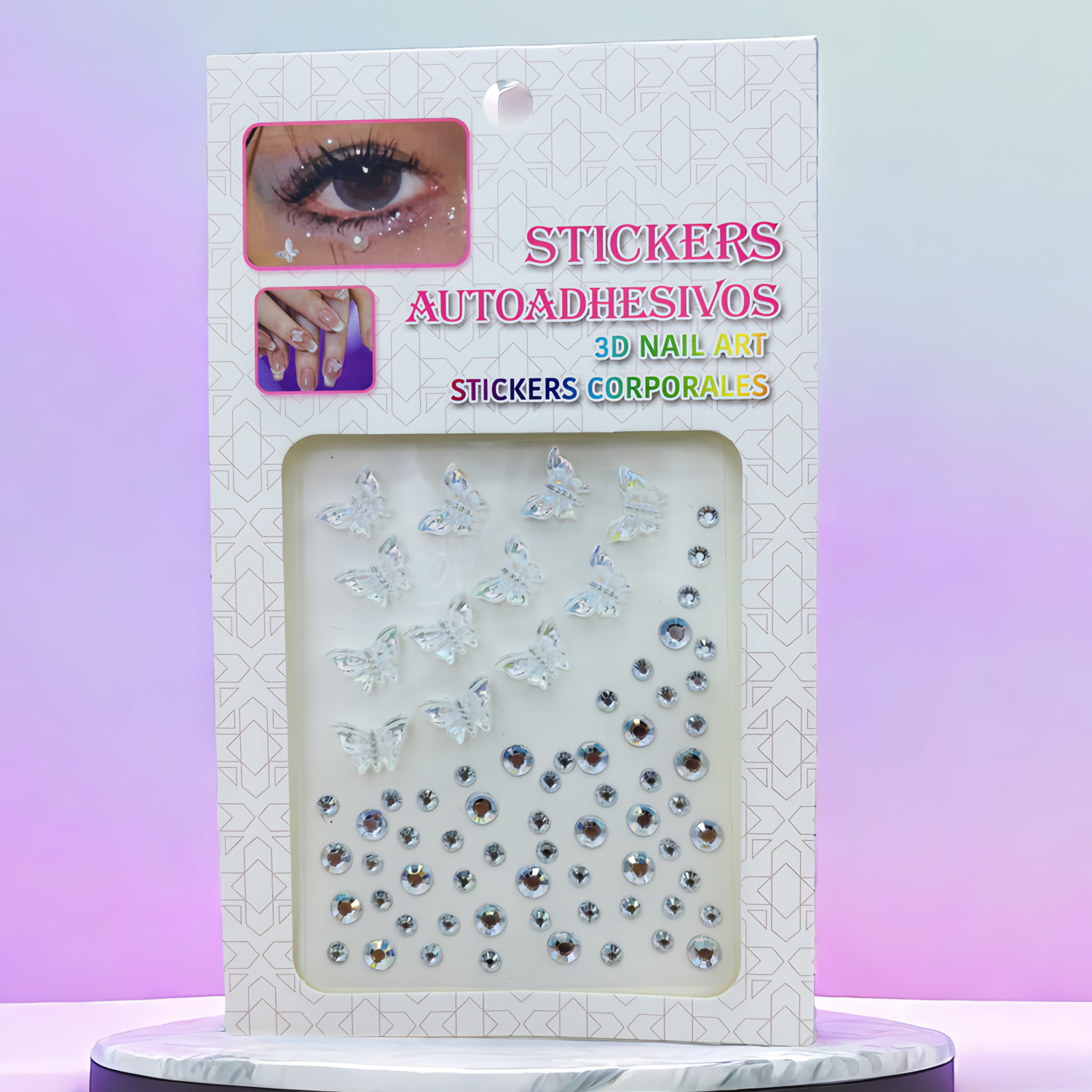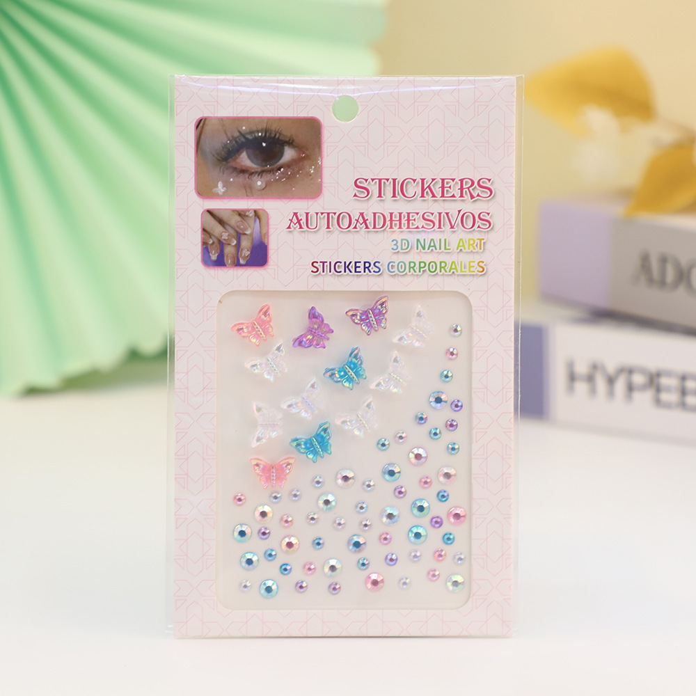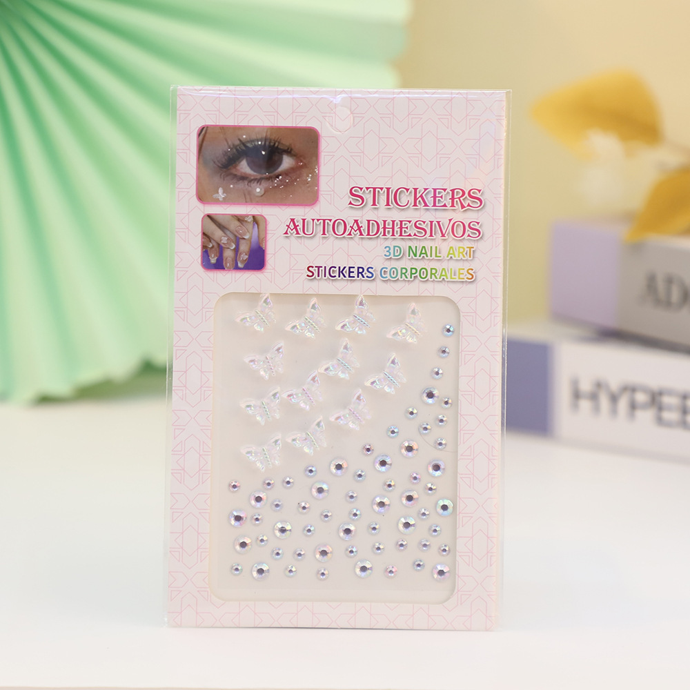 나비 다이아몬드 아이 메이크업 스티커 아이 다이아몬드 스티커 보석 베니어 장식 진주 눈 메이크업 액세서리 어린이 무대 라인석 스티커