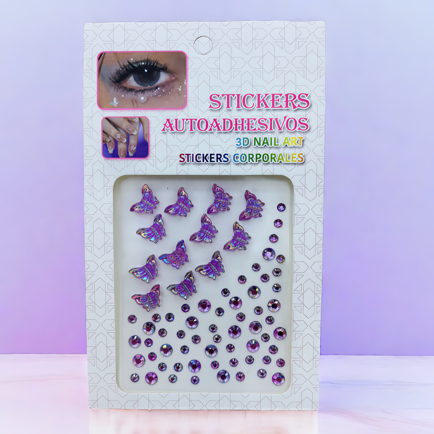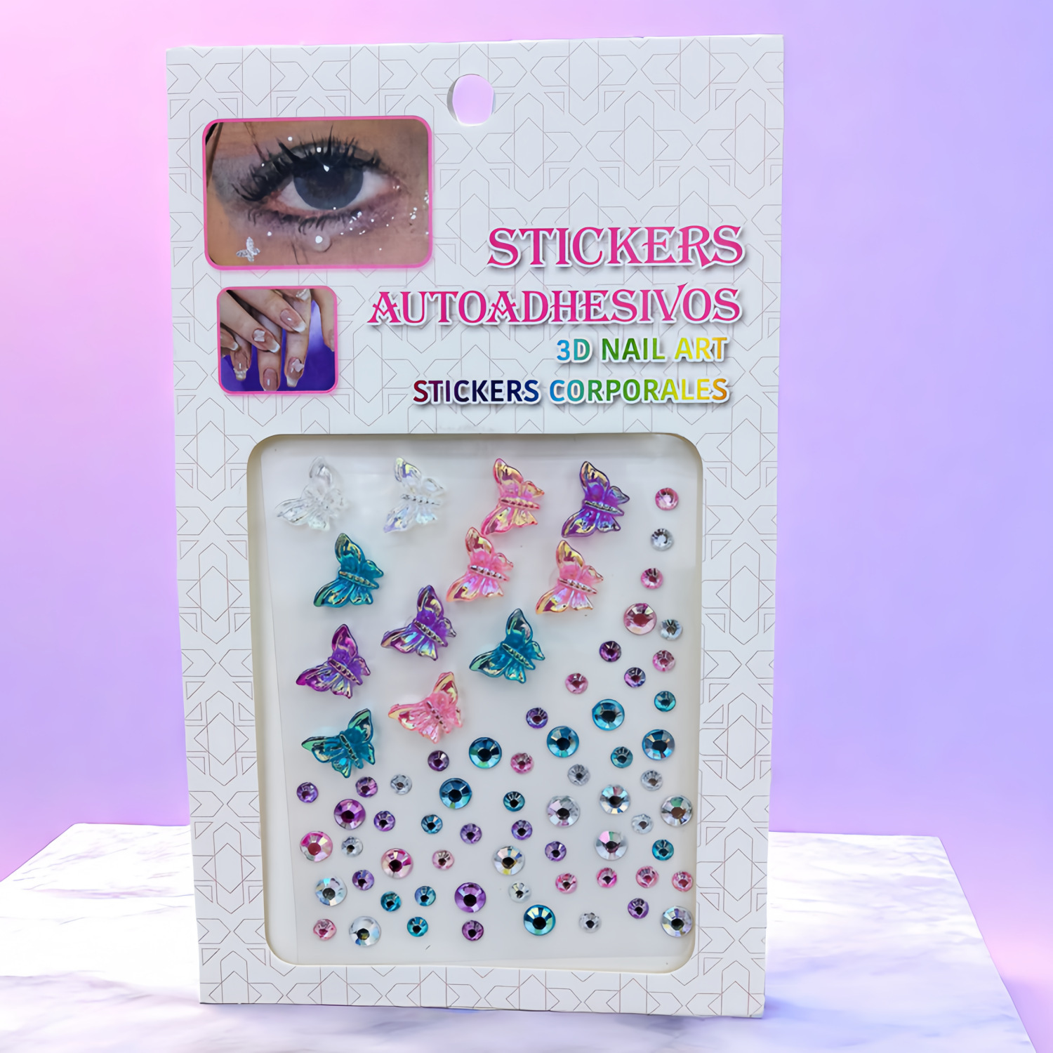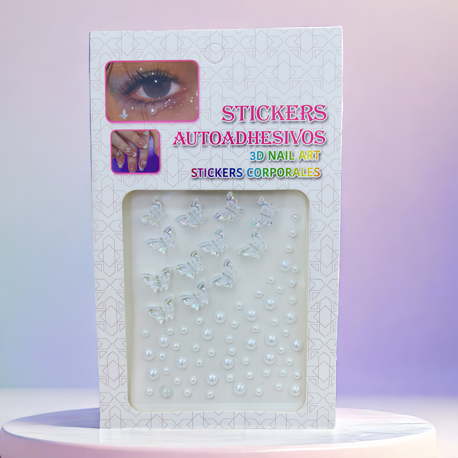 나비 다이아몬드 아이 메이크업 스티커 아이 다이아몬드 스티커 보석 베니어 장식 진주 눈 메이크업 액세서리 어린이 무대 라인석 스티커