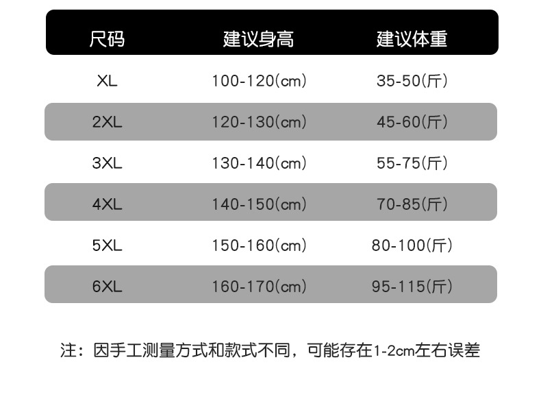• 5XL [권장 키 150-160cm/ 40-50kg ]