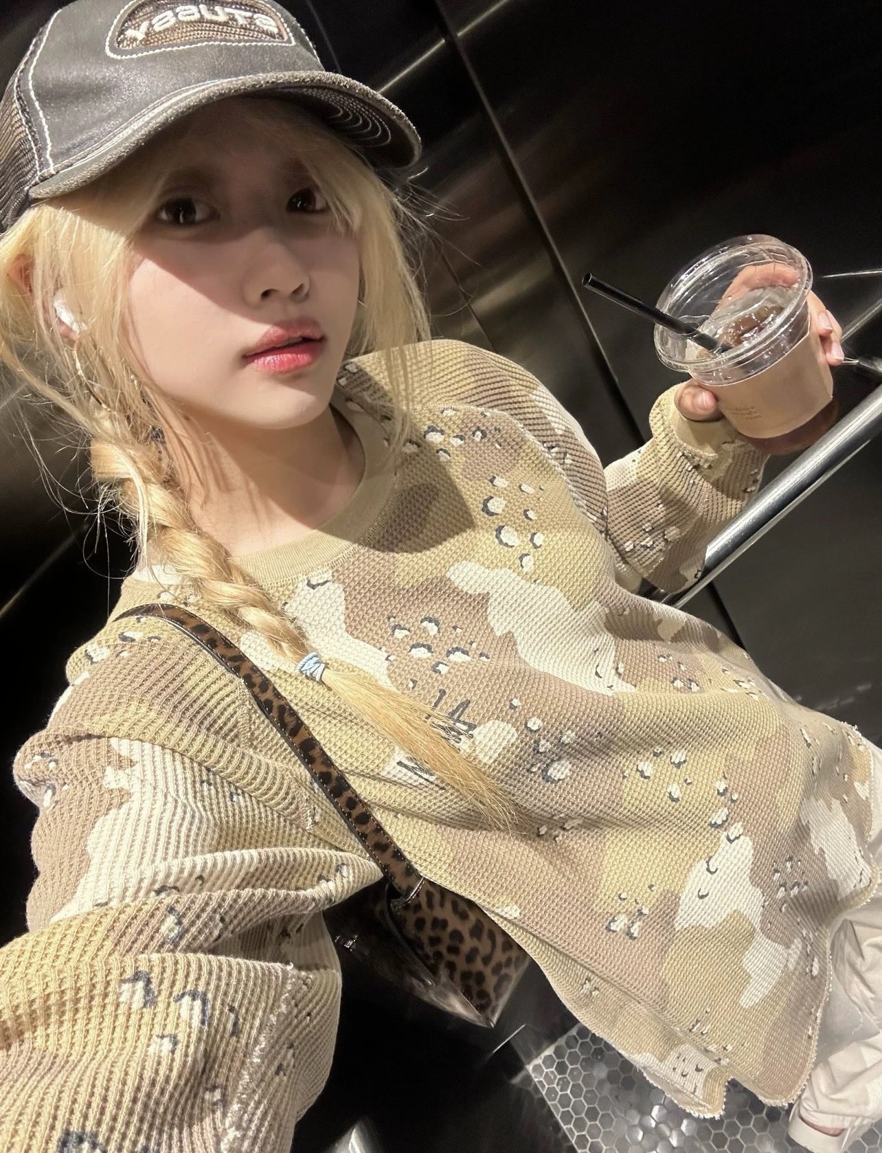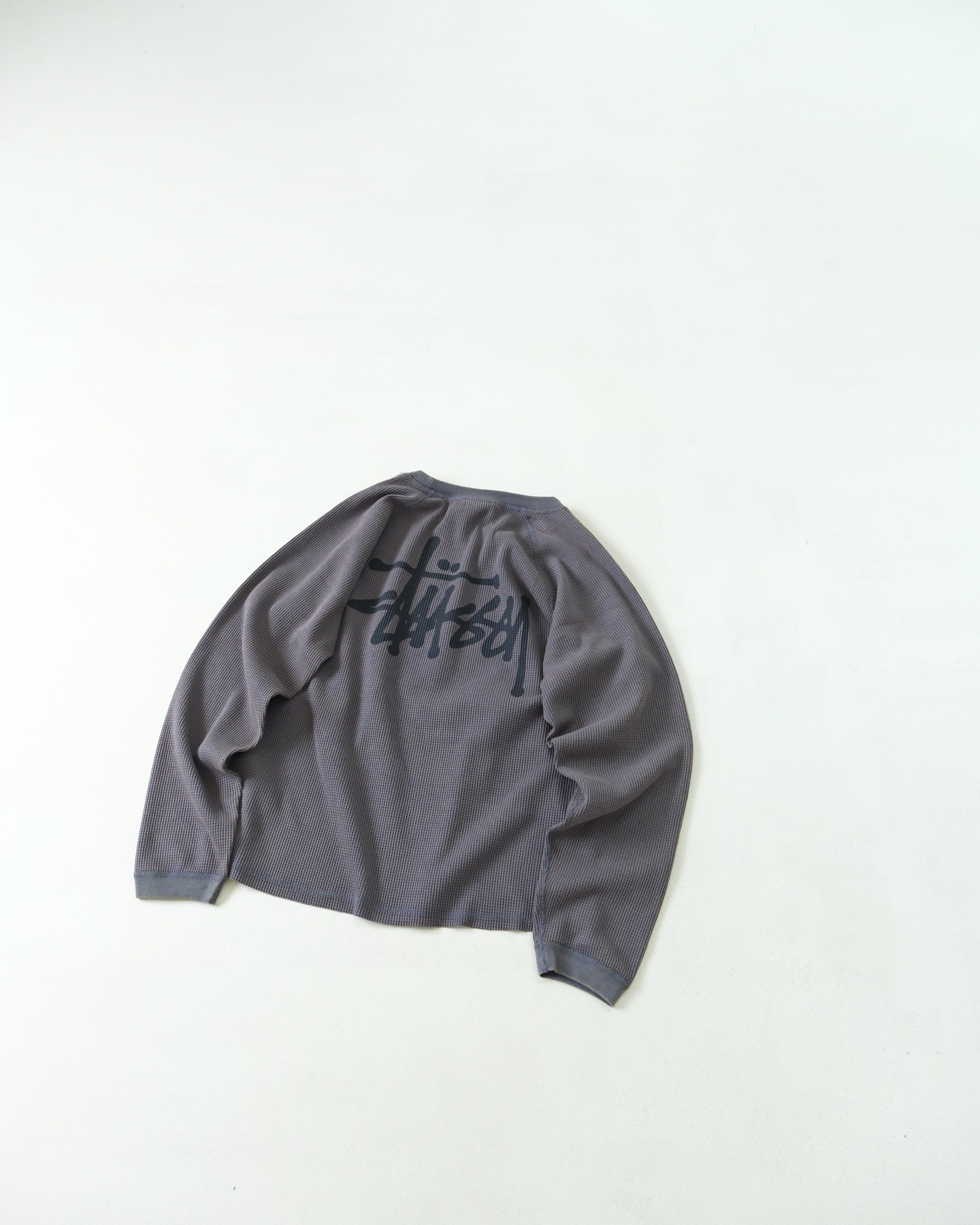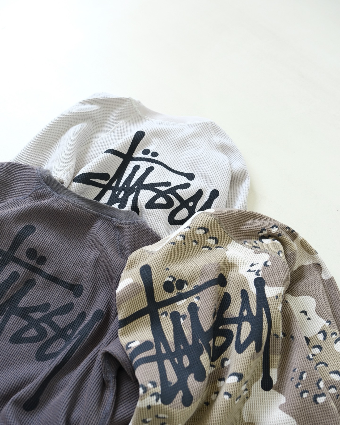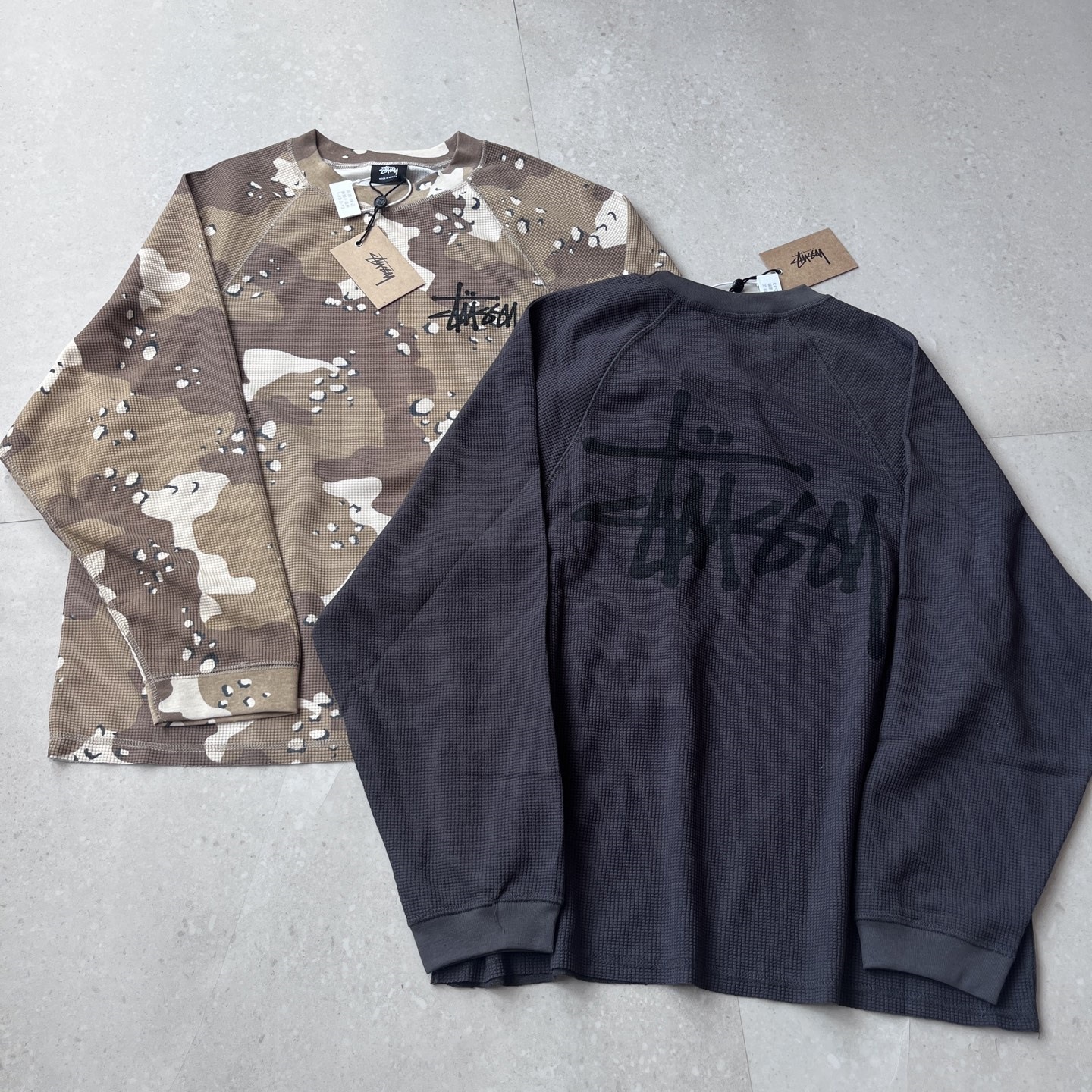 국경 간 고품질 STU 위장 와플 헐렁한 커플 복고풍 툴링 둥근 목 스웨터 긴팔 티셔츠베이스 셔츠