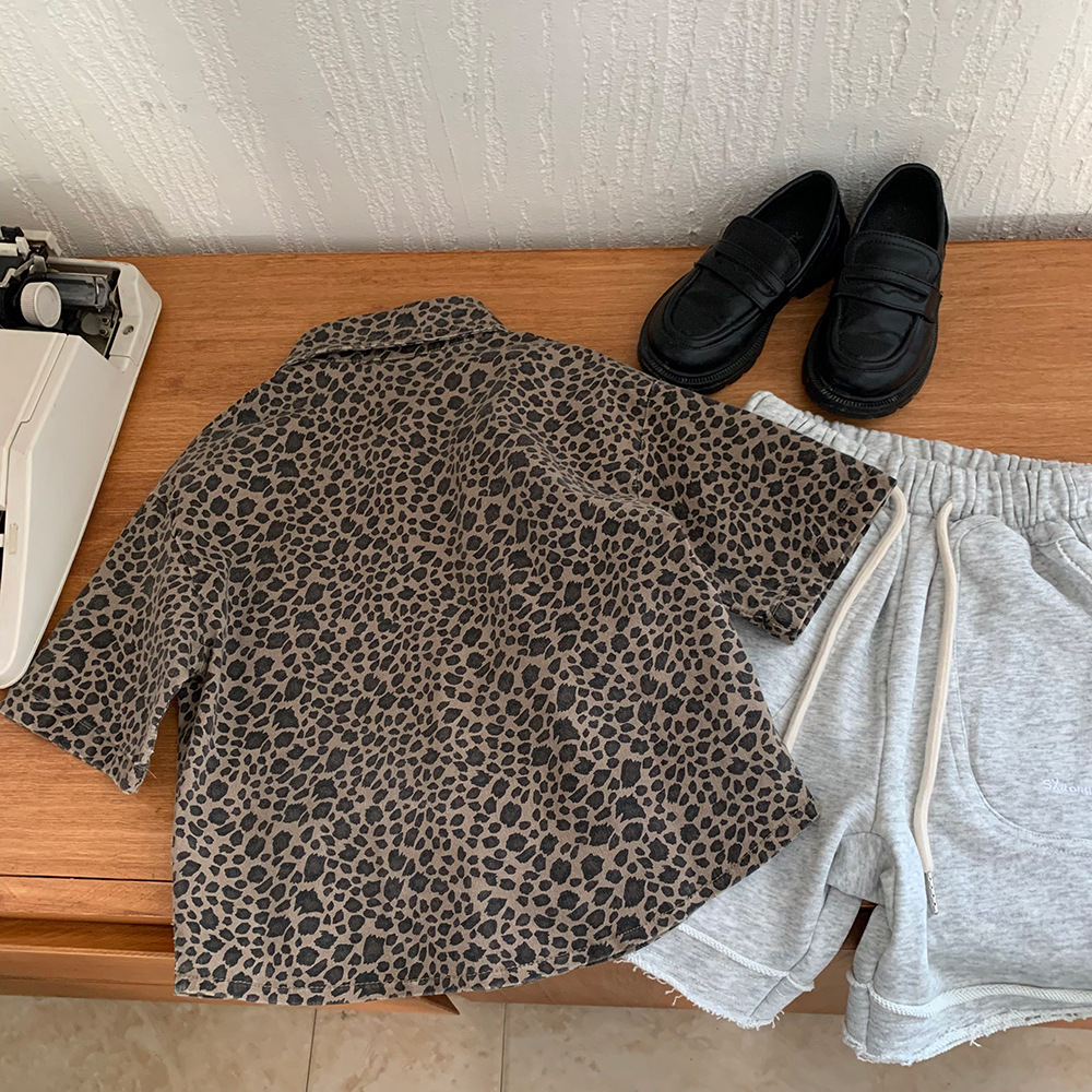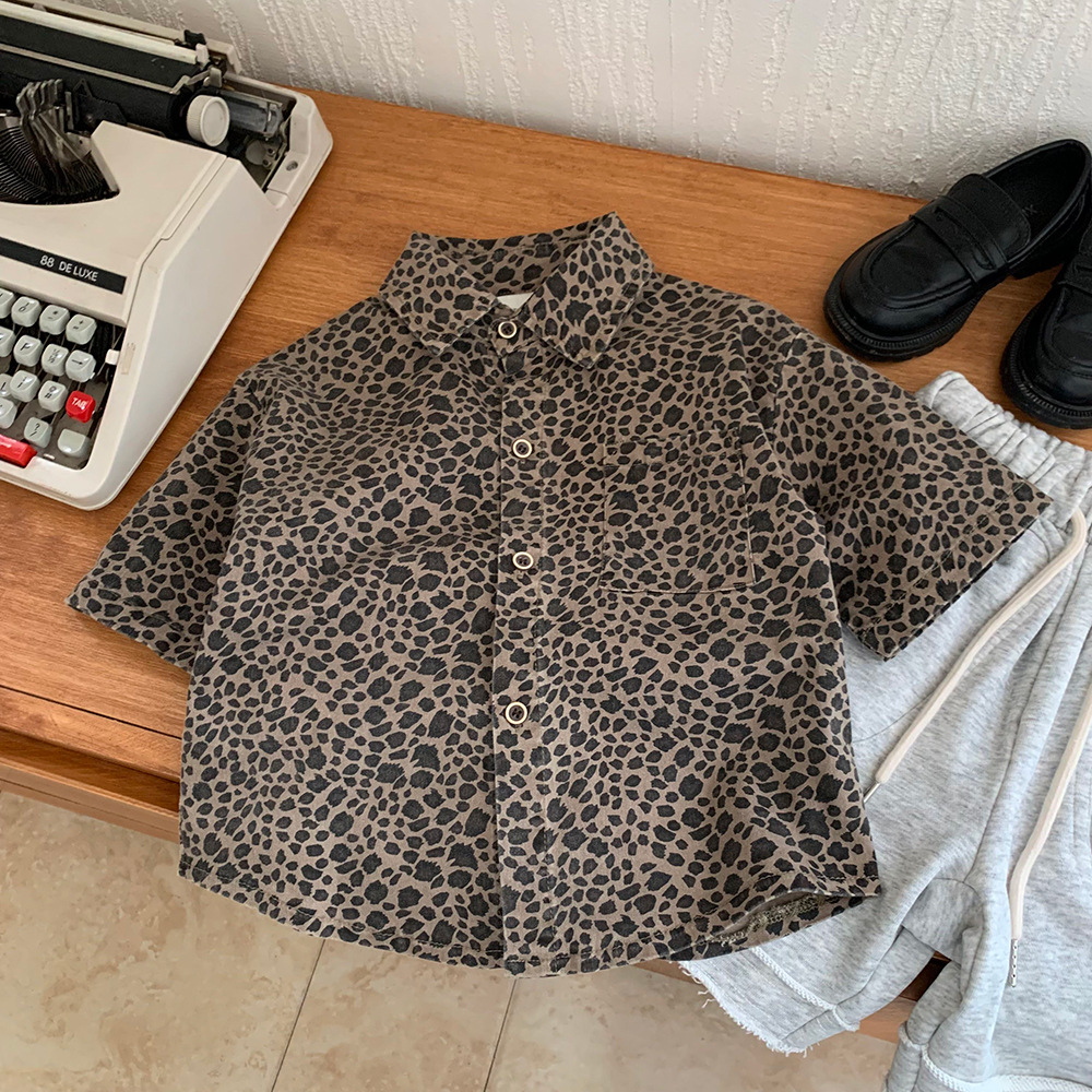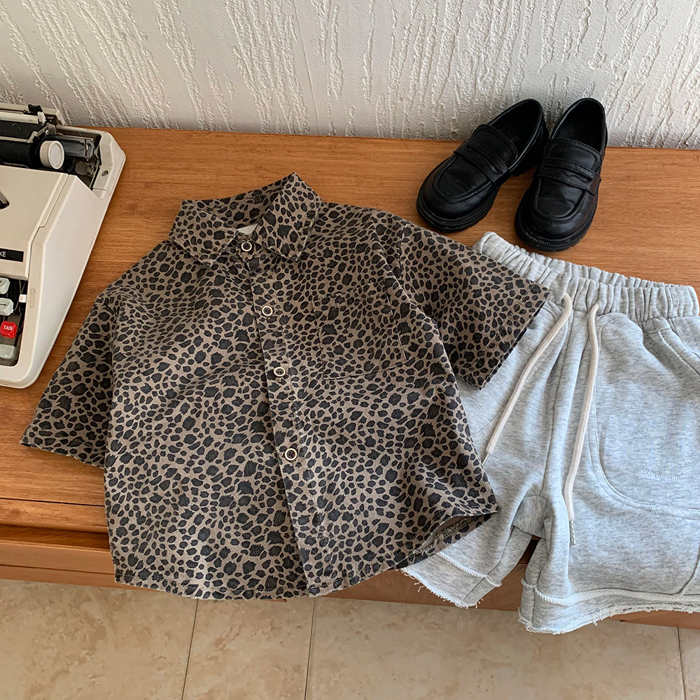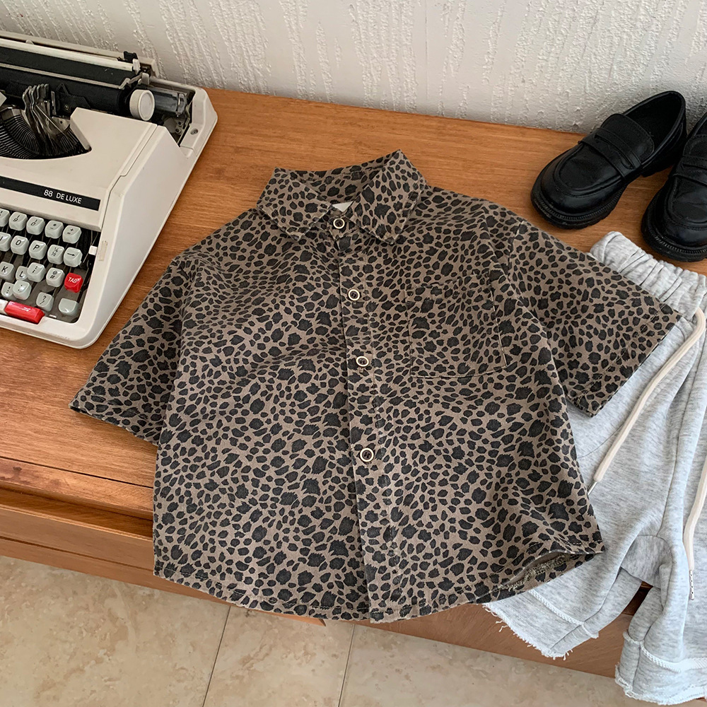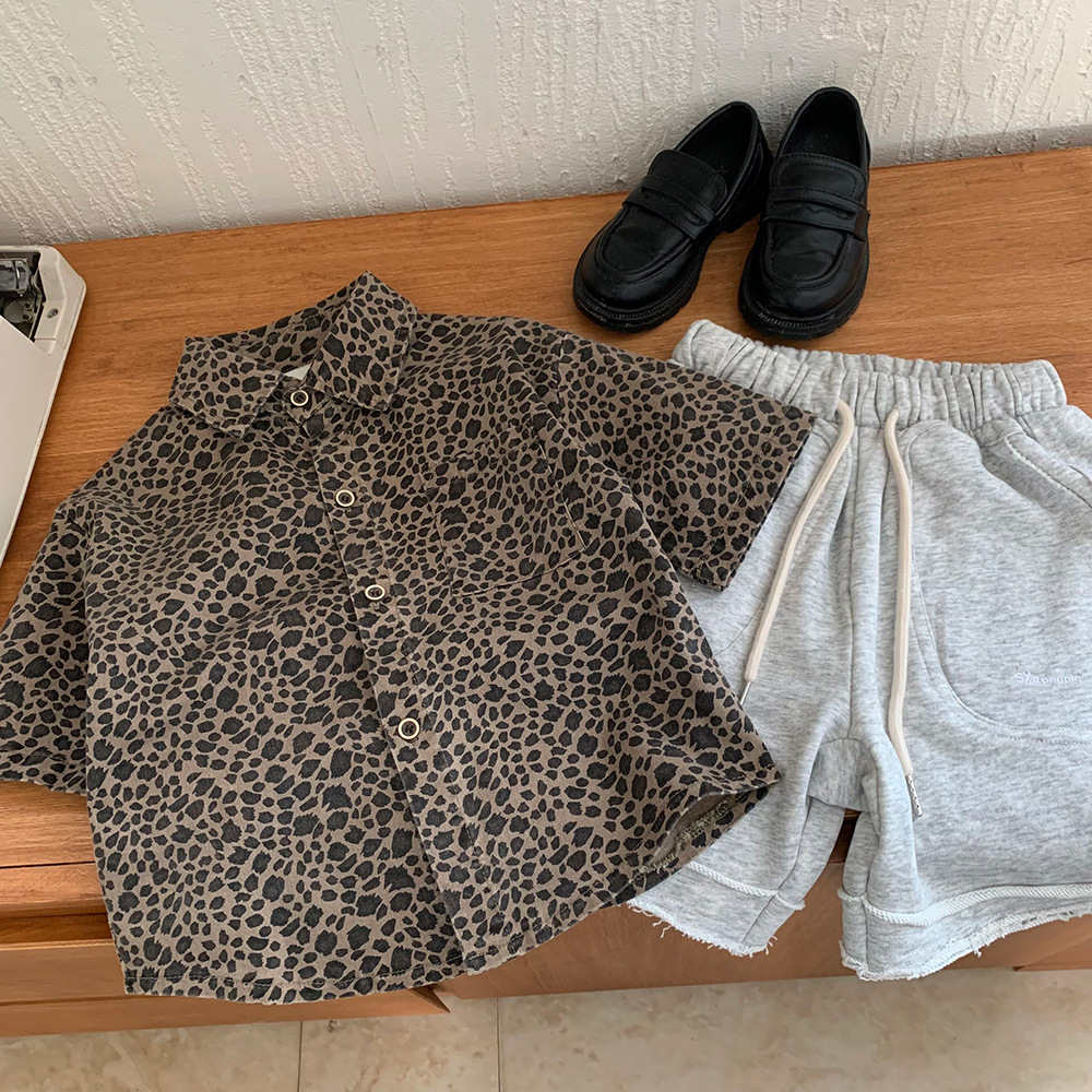 소년의 레오파드 프린트 셔츠 새로운 봄, 여름 아기 소녀의 반팔 이너웨어 어린이 면화 셔츠 탑 잘 생긴 여름 의류 트렌드스토어 가기