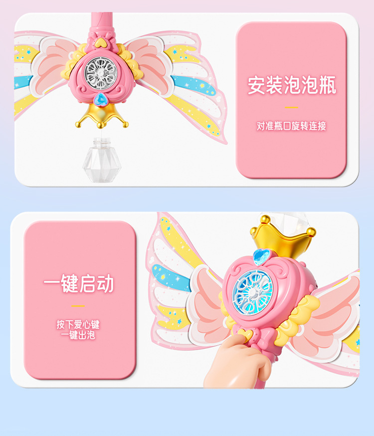 버블 장난감 천사 마술 지팡이 버블 완전 자동 버블 부는 기계 공주 지팡이 전기 장난감 휴대용 버블 건스토어 가기
