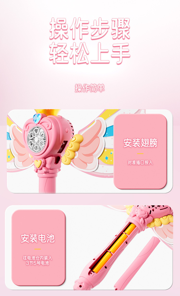 • 핑크 엔젤 마술 지팡이 [색상 상자/배터리 없음] 표준/날개 포함