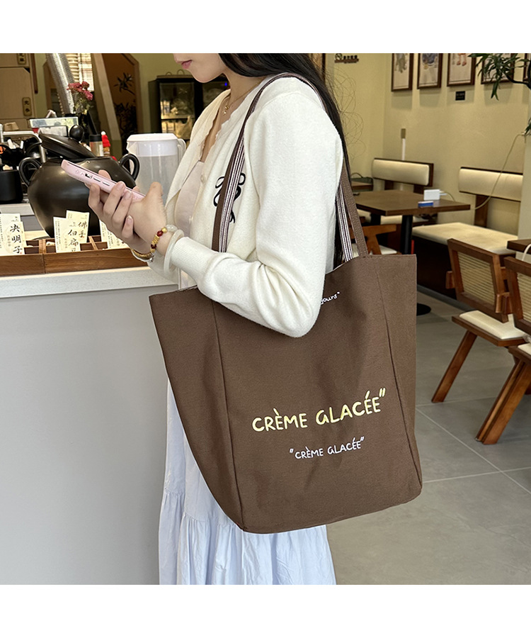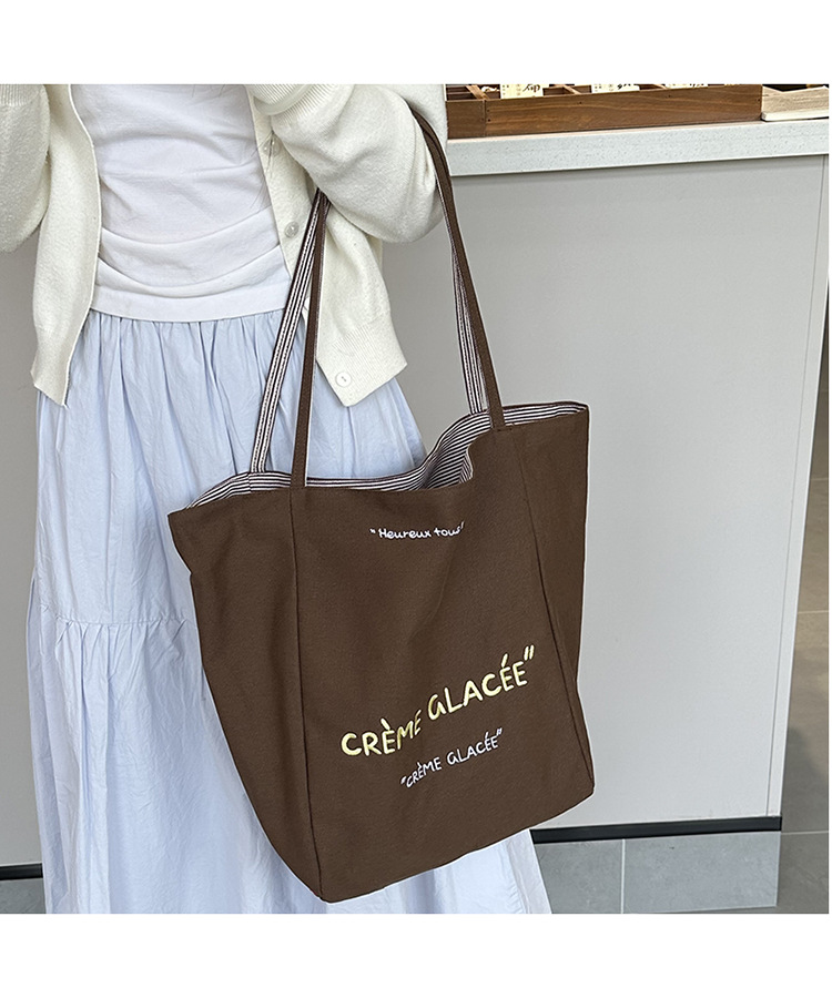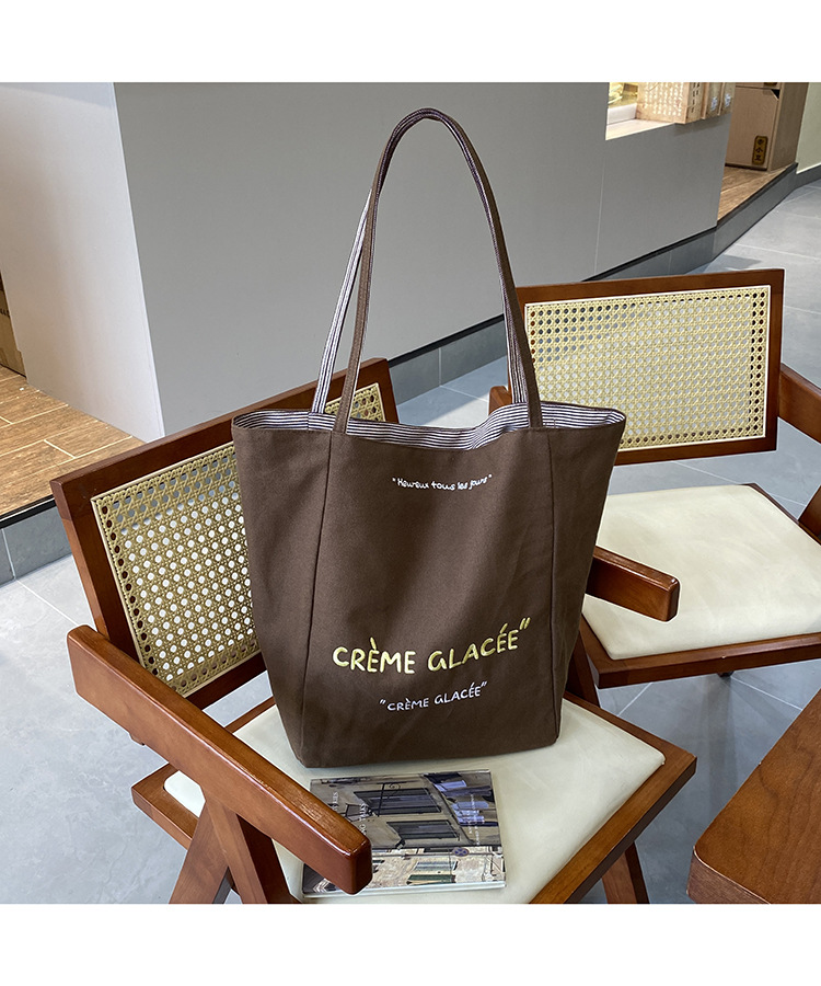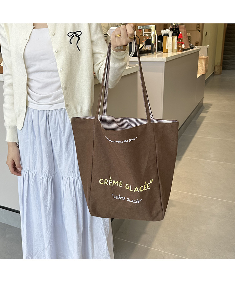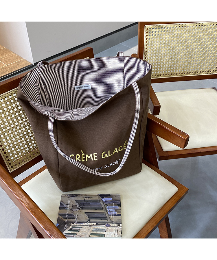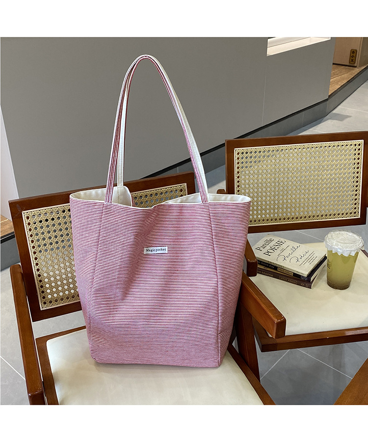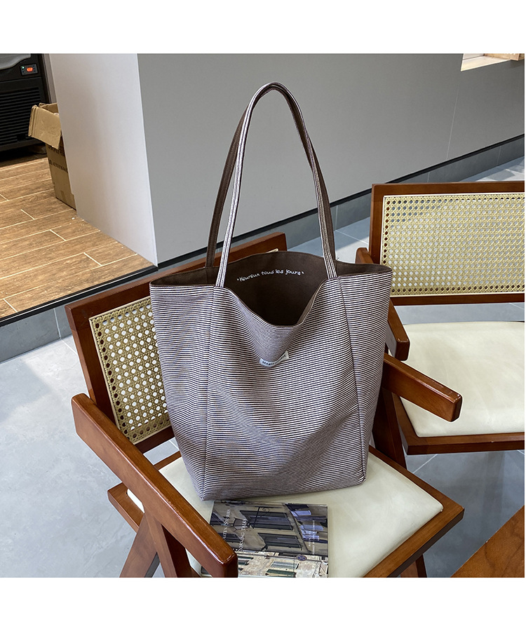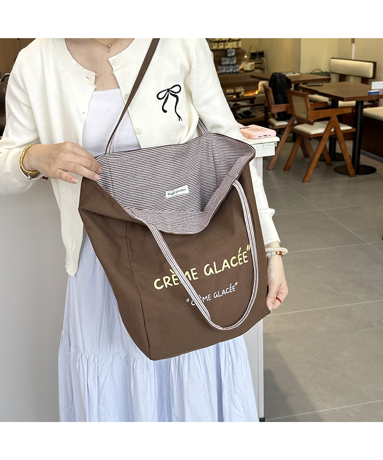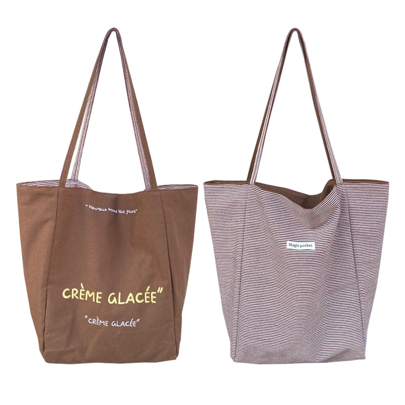 새로운 스타일 긍정적이고 반전 된 양면 줄무늬 어깨 가방 대용량 토트 백 고급 질감 자수 학생 캔버스 백