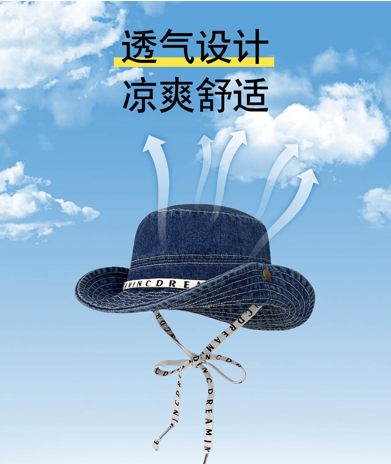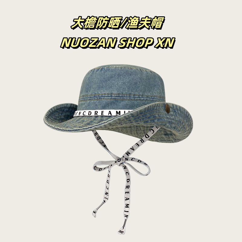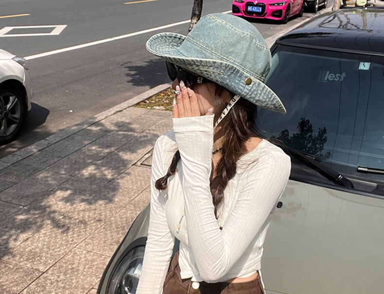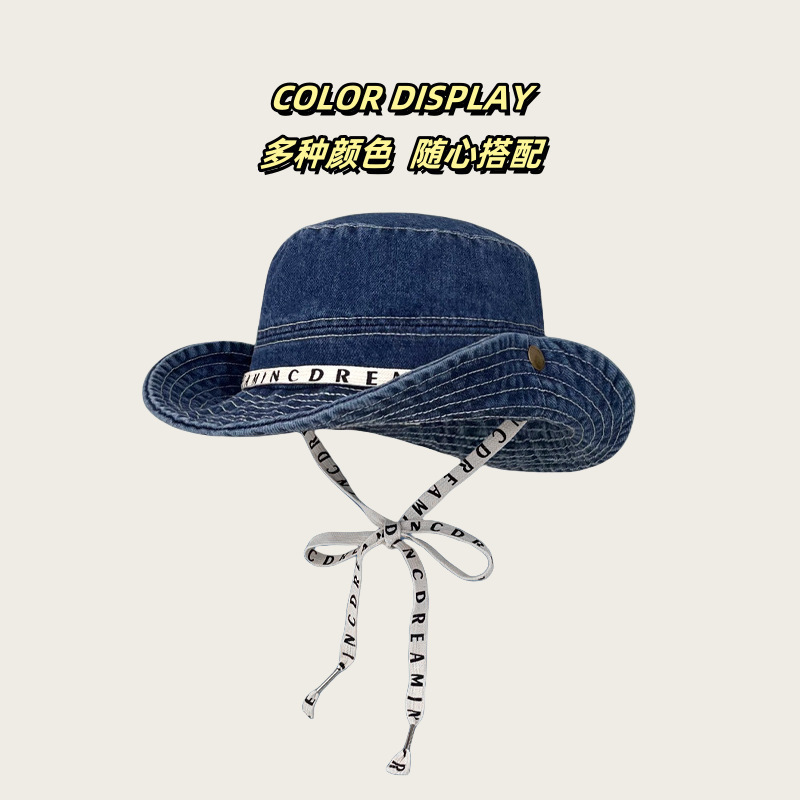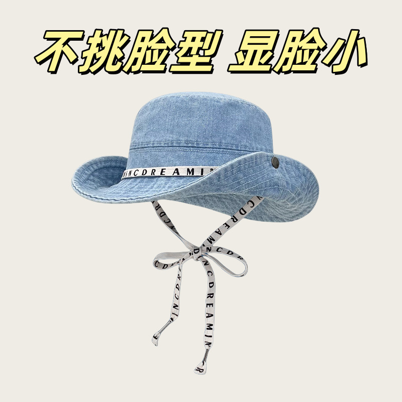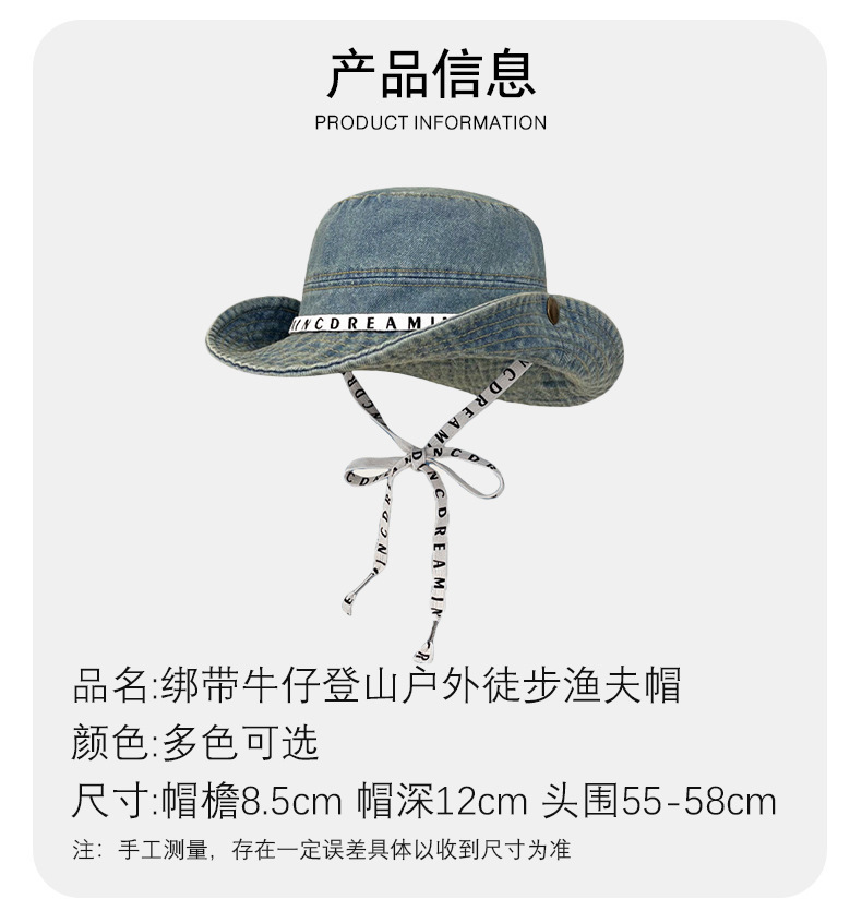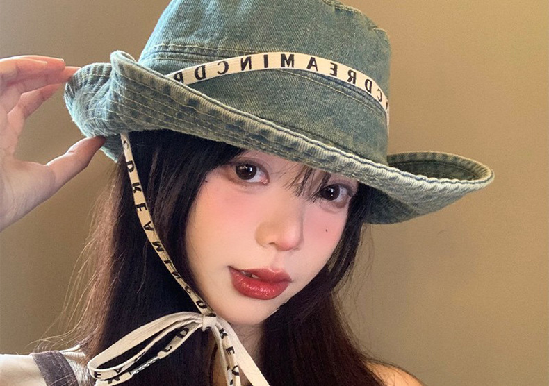 사이버 빨간 편지 데님 등산 모자 면 여성 야외 하이킹 빅 헤드 와이 어부 모자 레트로 웨스턴 카우보이 모자