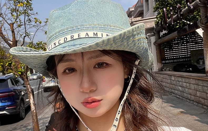 사이버 빨간 편지 데님 등산 모자 면 여성 야외 하이킹 빅 헤드 와이 어부 모자 레트로 웨스턴 카우보이 모자스토어 가기