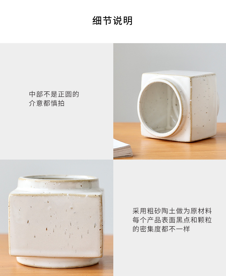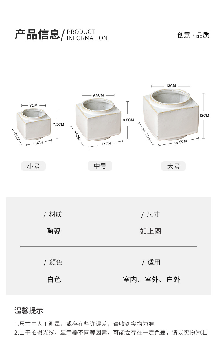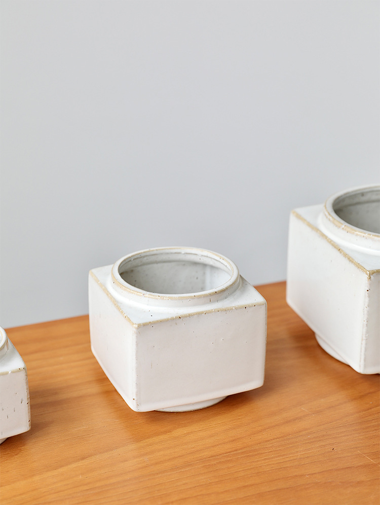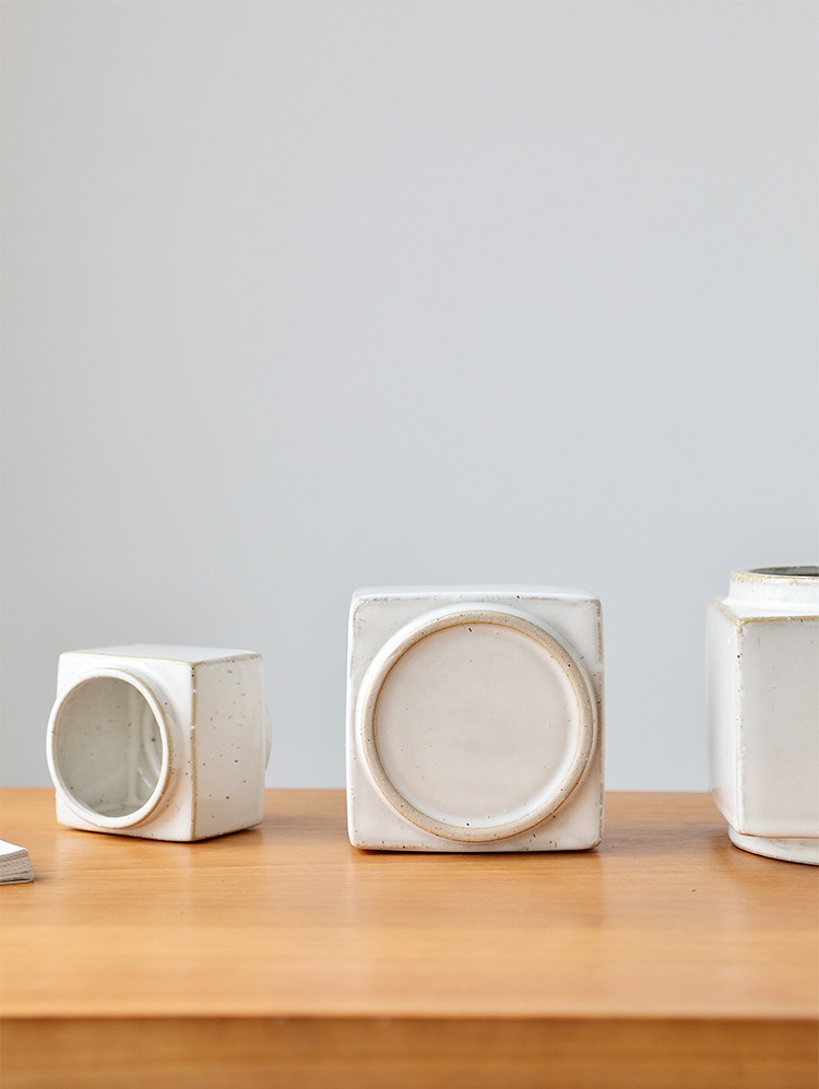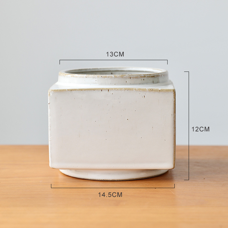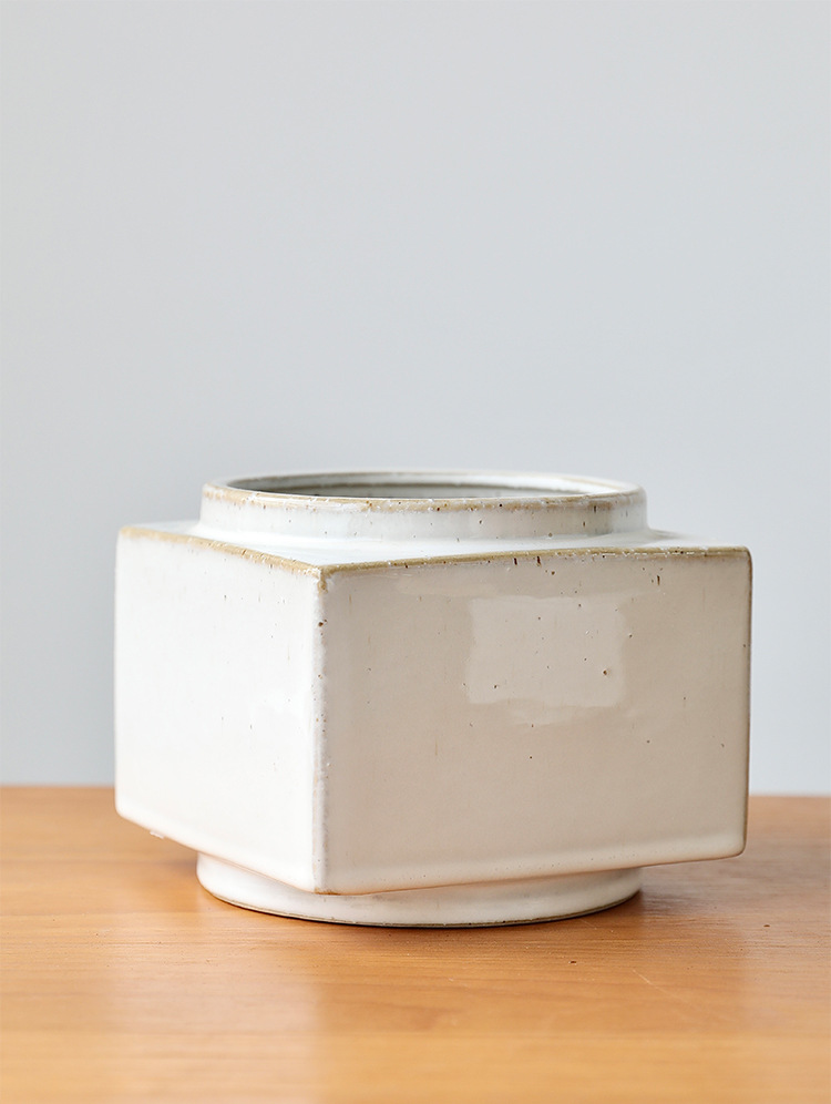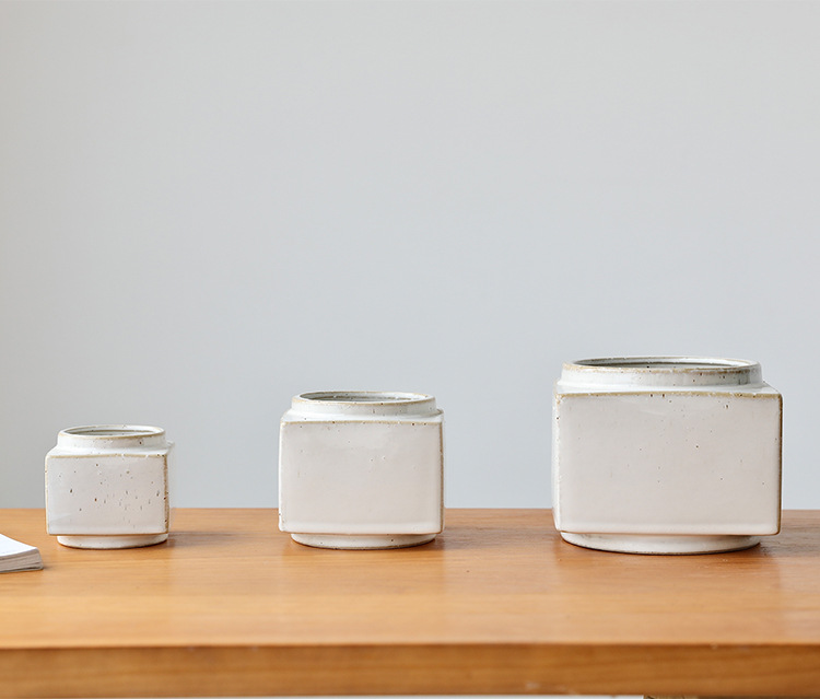 브랜드 디자인 세라믹 녹색 식물 화분 홈 북유럽 사각형 흰색 와비사비 스타일 비 다공성 수경 화분 세트스토어 가기