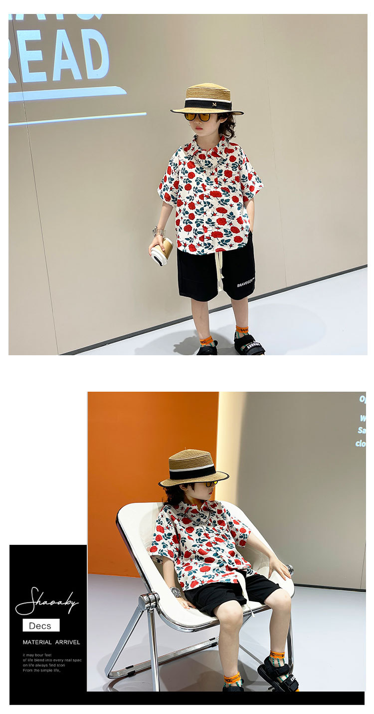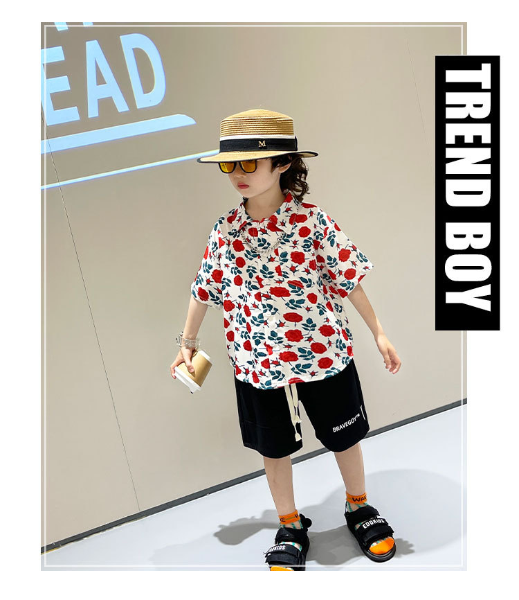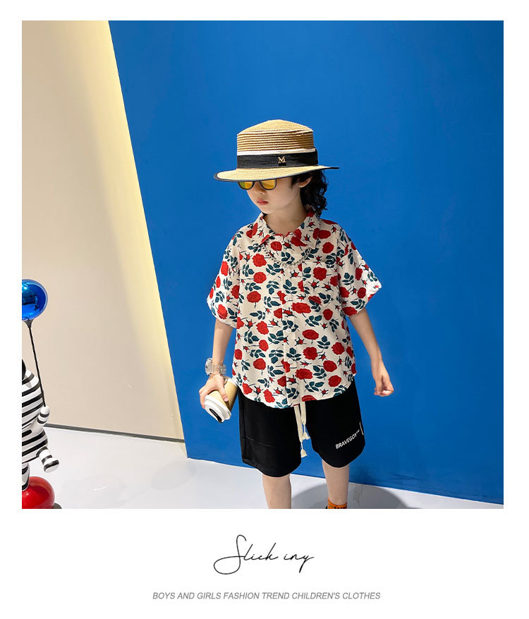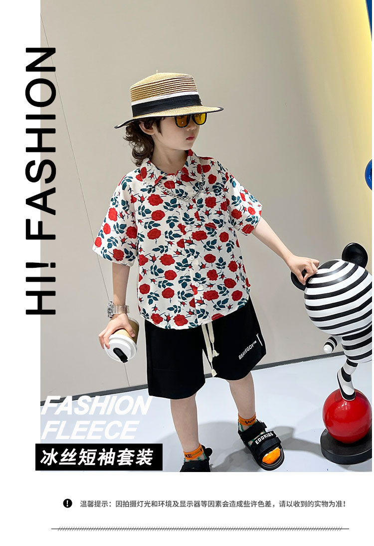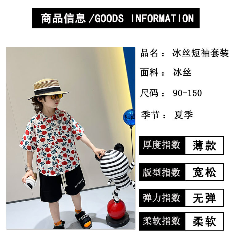 소년 여름 얼음 실크 셔츠 정장 2025 새로운 아동복 경량 투피스 세트 아기 잘 생긴 반팔스토어 가기