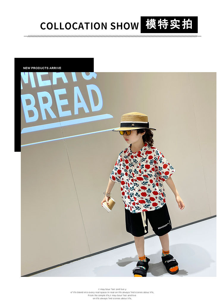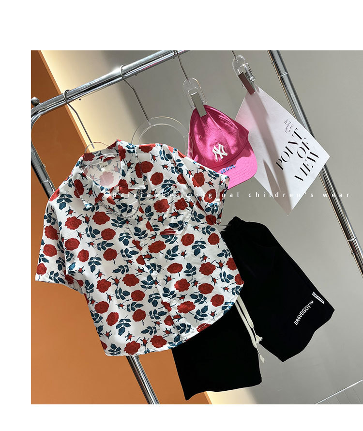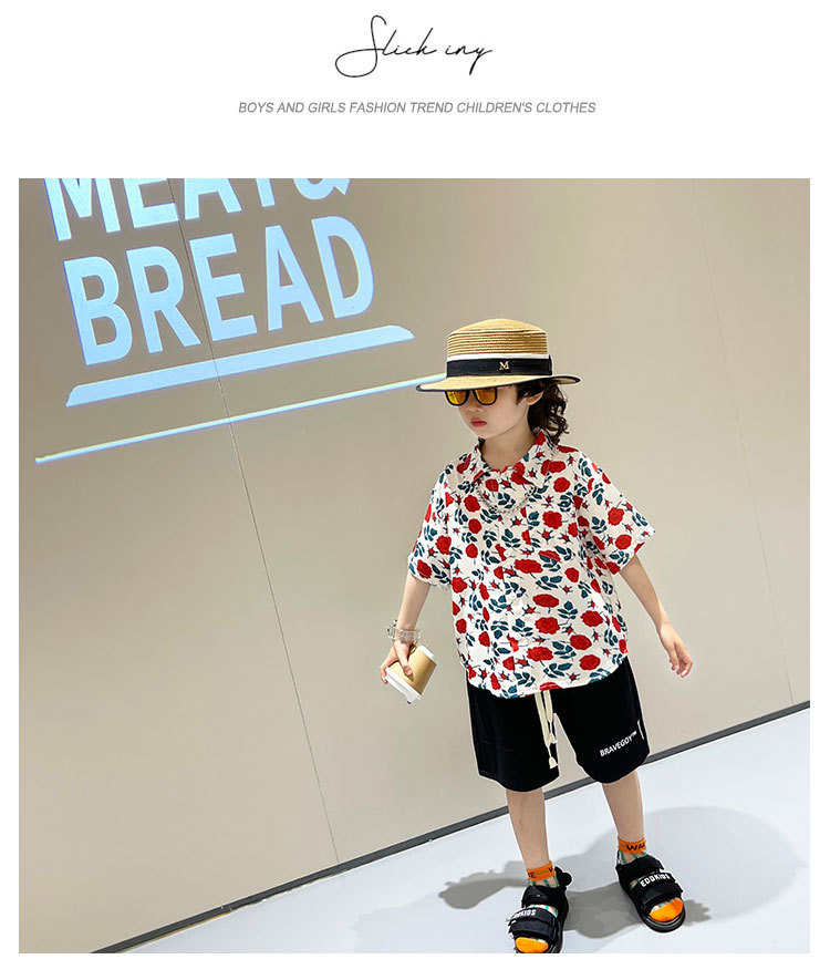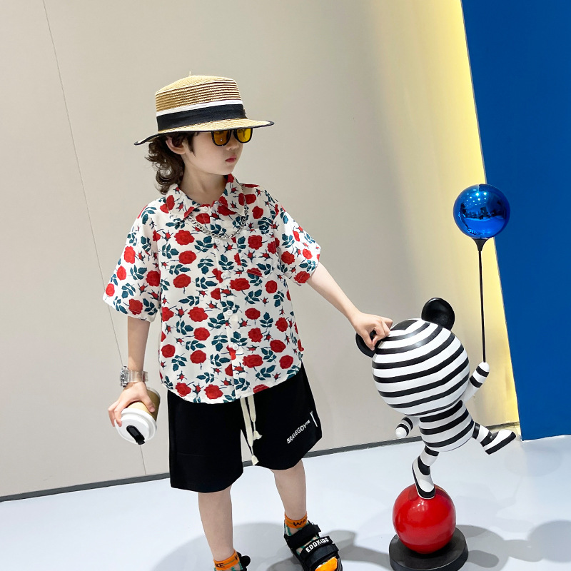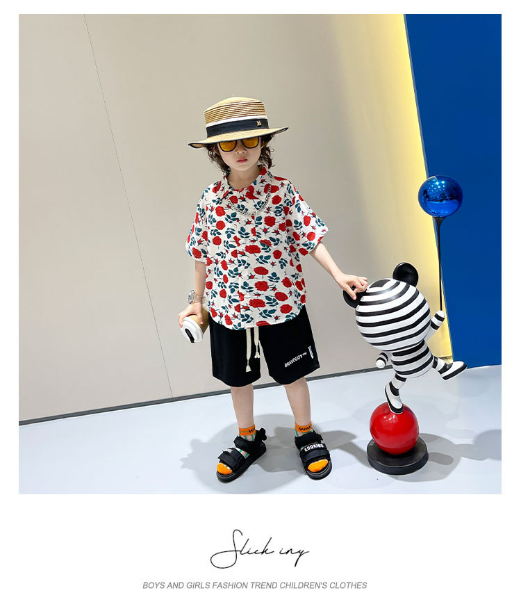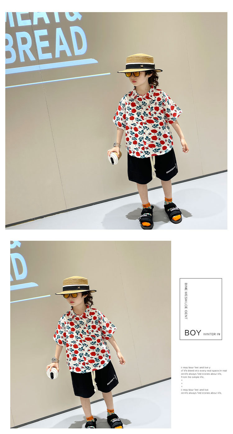 소년 여름 얼음 실크 셔츠 정장 2025 새로운 아동복 경량 투피스 세트 아기 잘 생긴 반팔스토어 가기