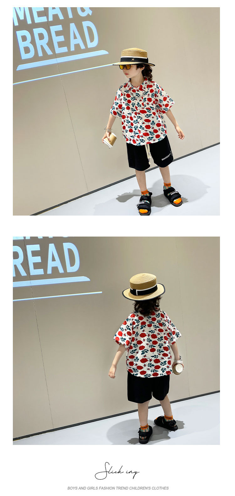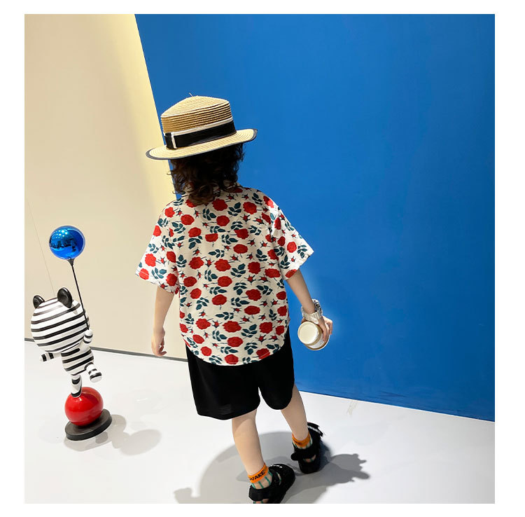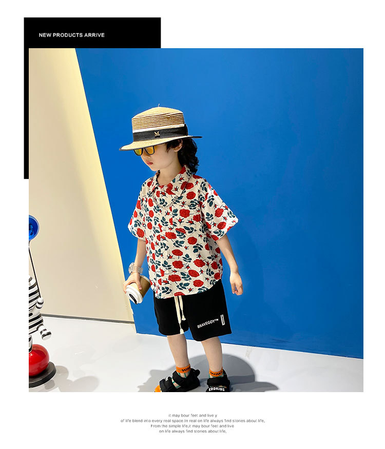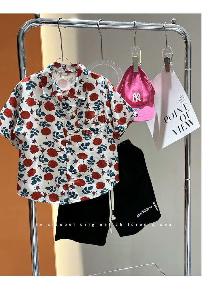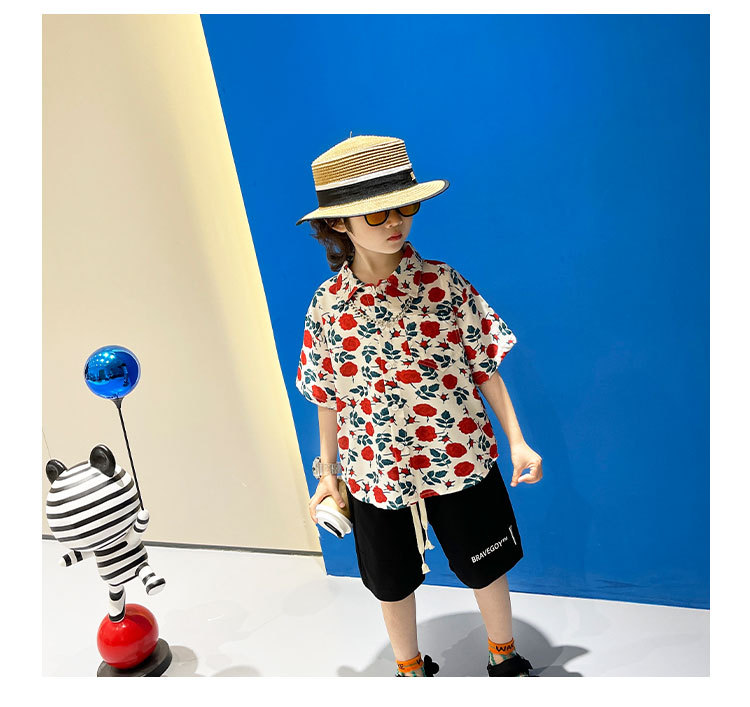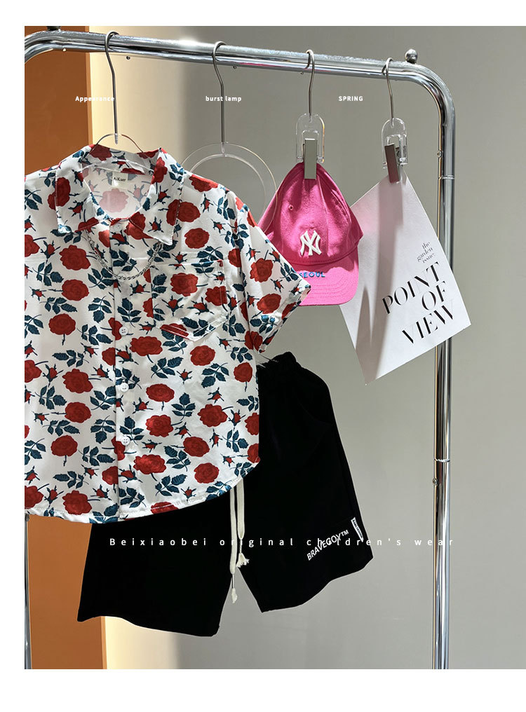 소년 여름 얼음 실크 셔츠 정장 2025 새로운 아동복 경량 투피스 세트 아기 잘 생긴 반팔스토어 가기