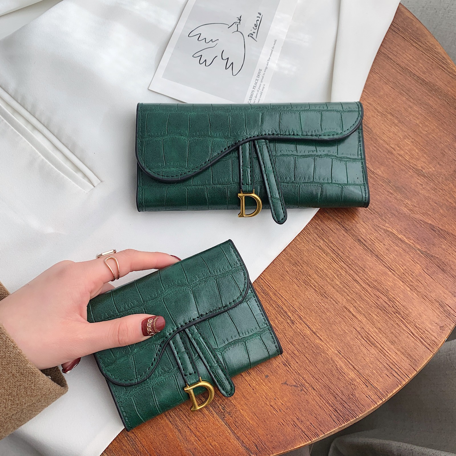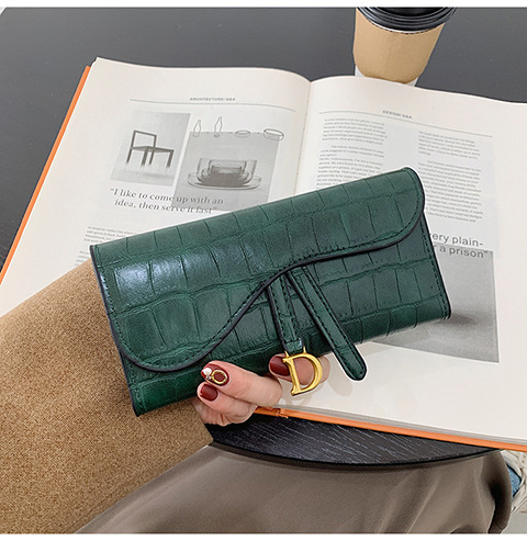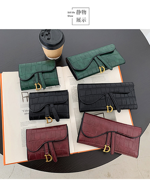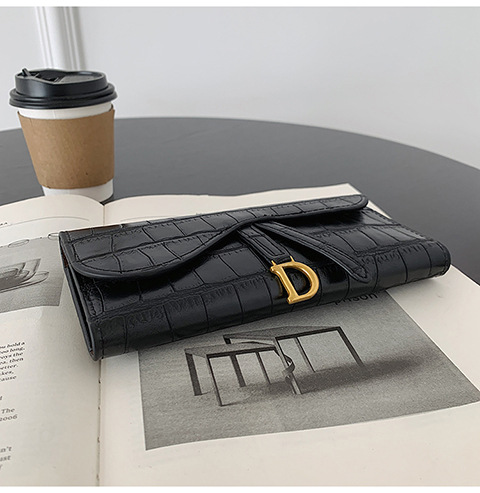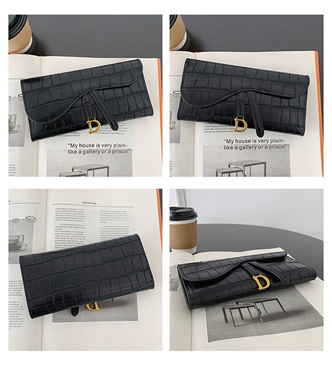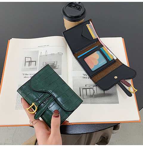 작은 지갑 여성용 짧은 2025 새로운 한국어 버전 악어 패턴 접이식 지갑 멀티 카드 슬롯 버클 롱 클러치 백