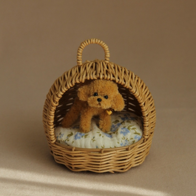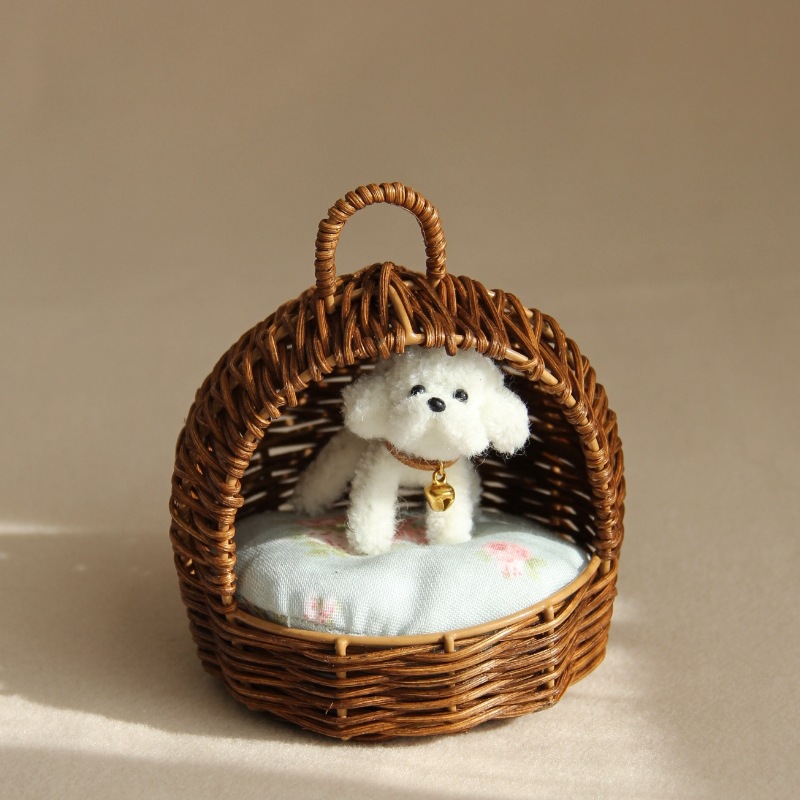 12 포인트 순수 수제 등나무 애완 동물 둥지 미니 시뮬레이션 고양이와 개 둥지 홈 장식품 장식 소형 모델 강아지스토어 가기