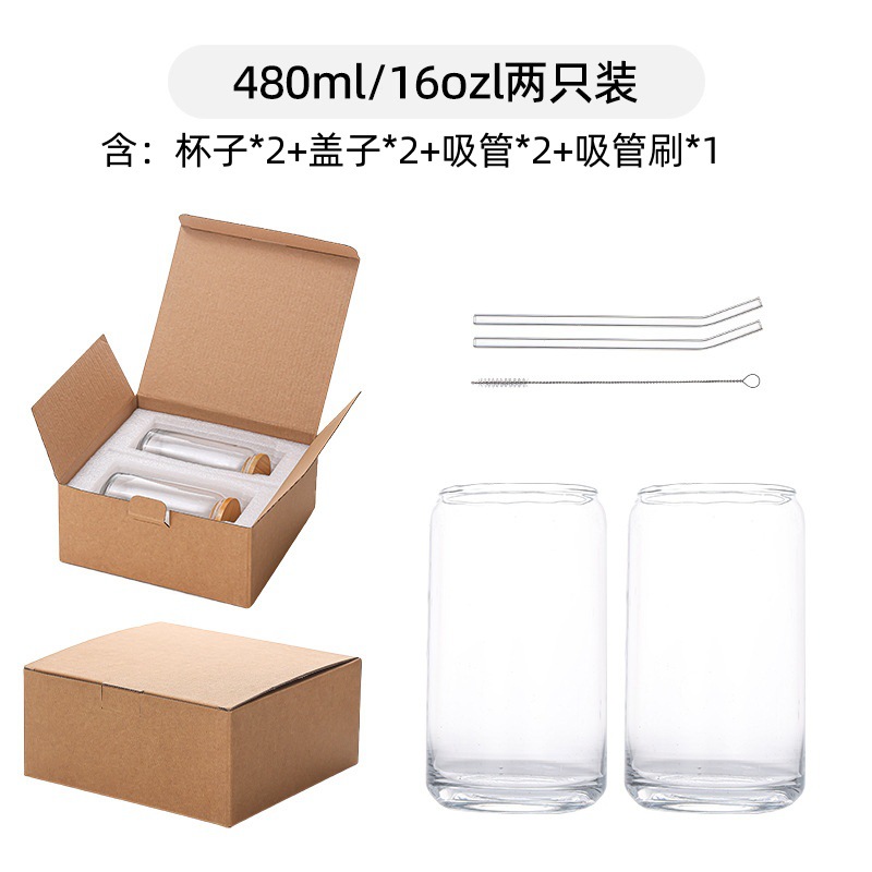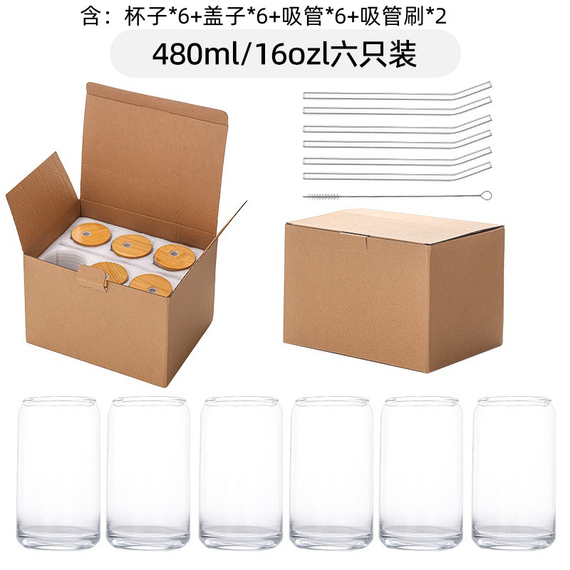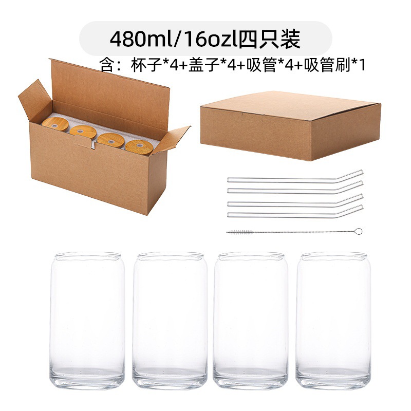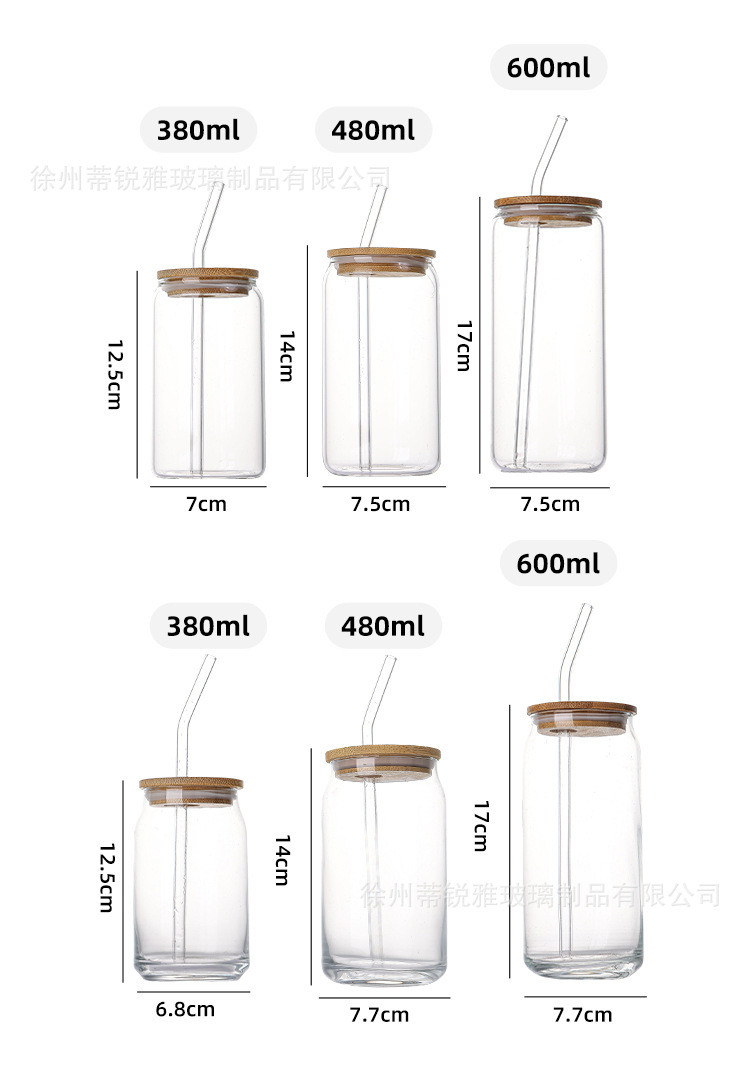 국경을 넘는 UV 인쇄 16온스 콜라컵 뚜껑과 빨대 포함 유리컵 내열 밀크티 커피 대나무 뚜껑 메이슨 물컵