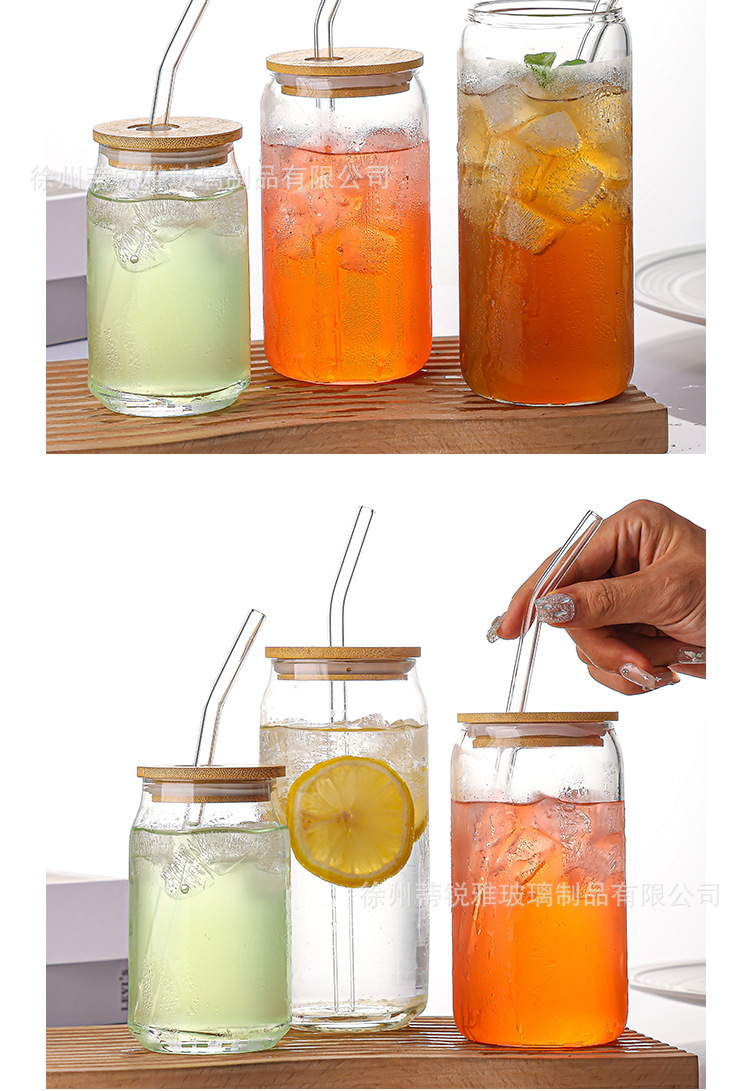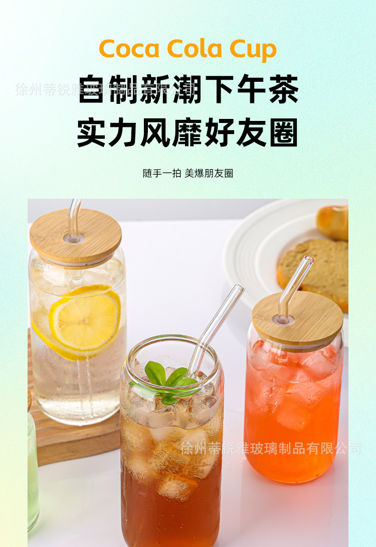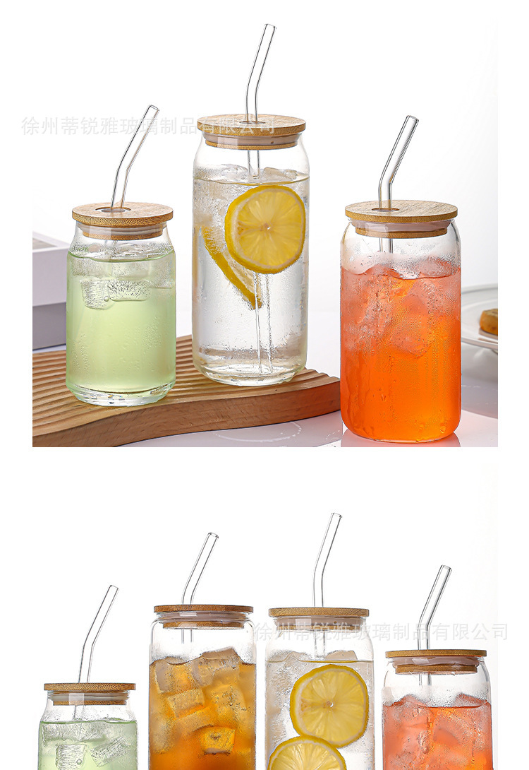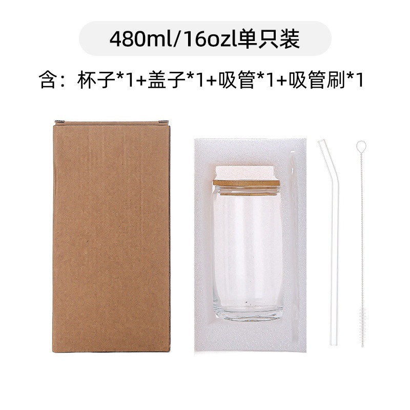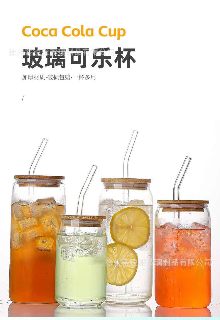 국경을 넘는 UV 인쇄 16온스 콜라컵 뚜껑과 빨대 포함 유리컵 내열 밀크티 커피 대나무 뚜껑 메이슨 물컵스토어 가기