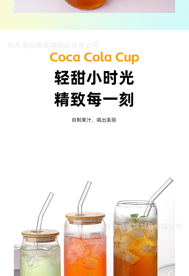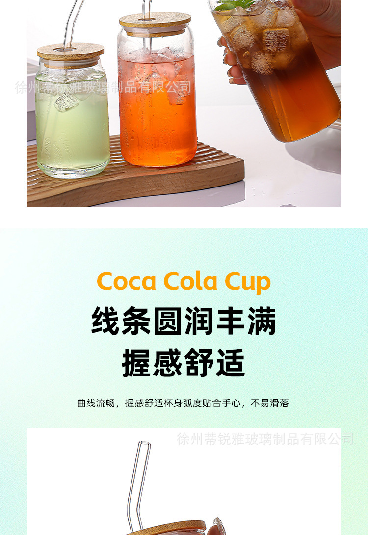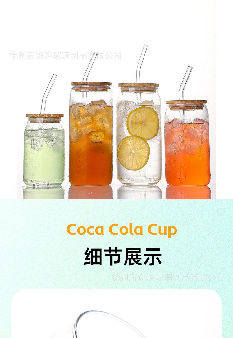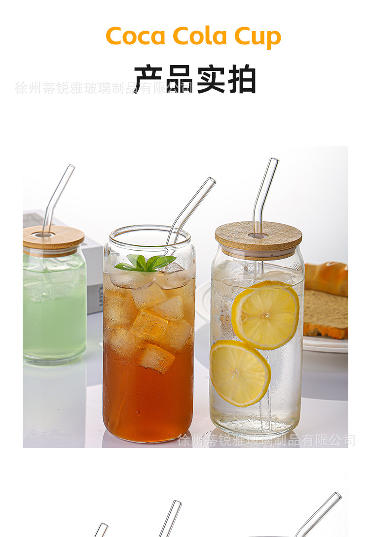 국경을 넘는 UV 인쇄 16온스 콜라컵 뚜껑과 빨대 포함 유리컵 내열 밀크티 커피 대나무 뚜껑 메이슨 물컵스토어 가기
