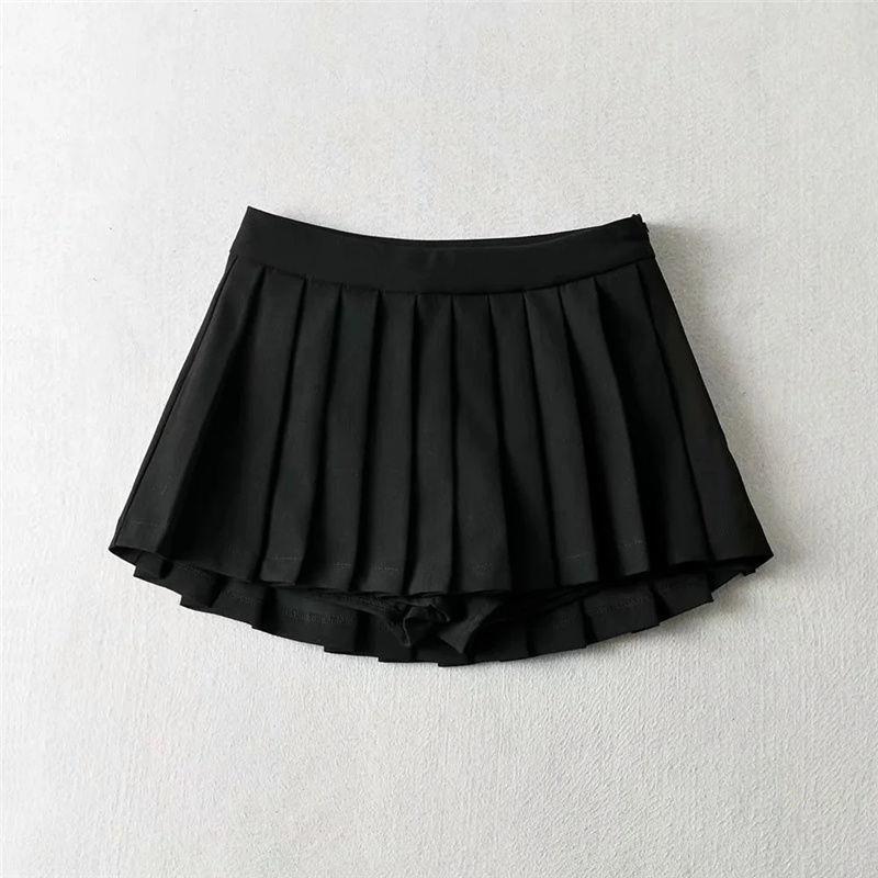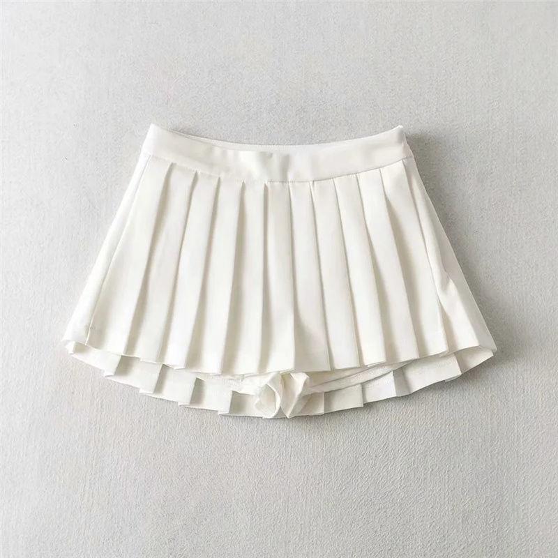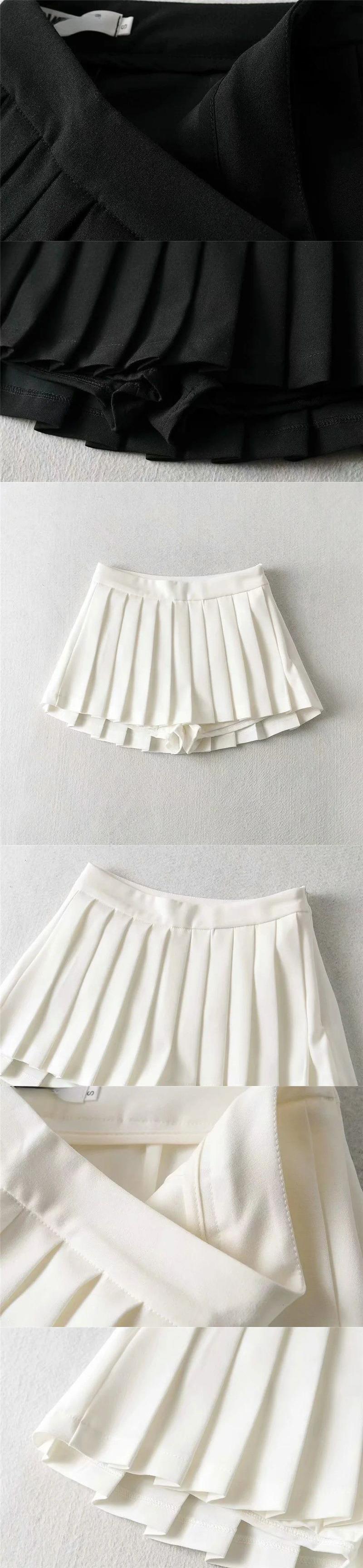 플리츠 스커트, 숏 스커트, 2023 여름 스타일, 앞면이 짧고 뒷면이 길다, 노출 방지, 하이웨이스트, 슬리밍 스커트, 드롭쉬핑