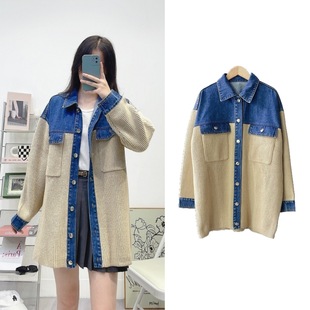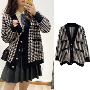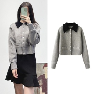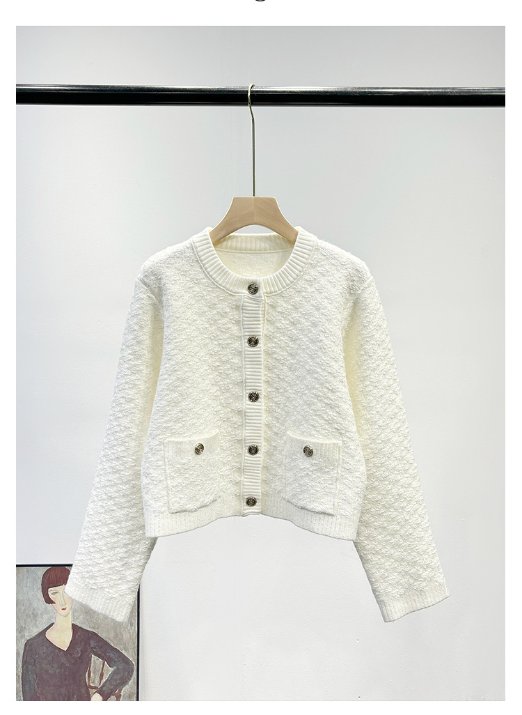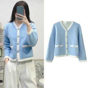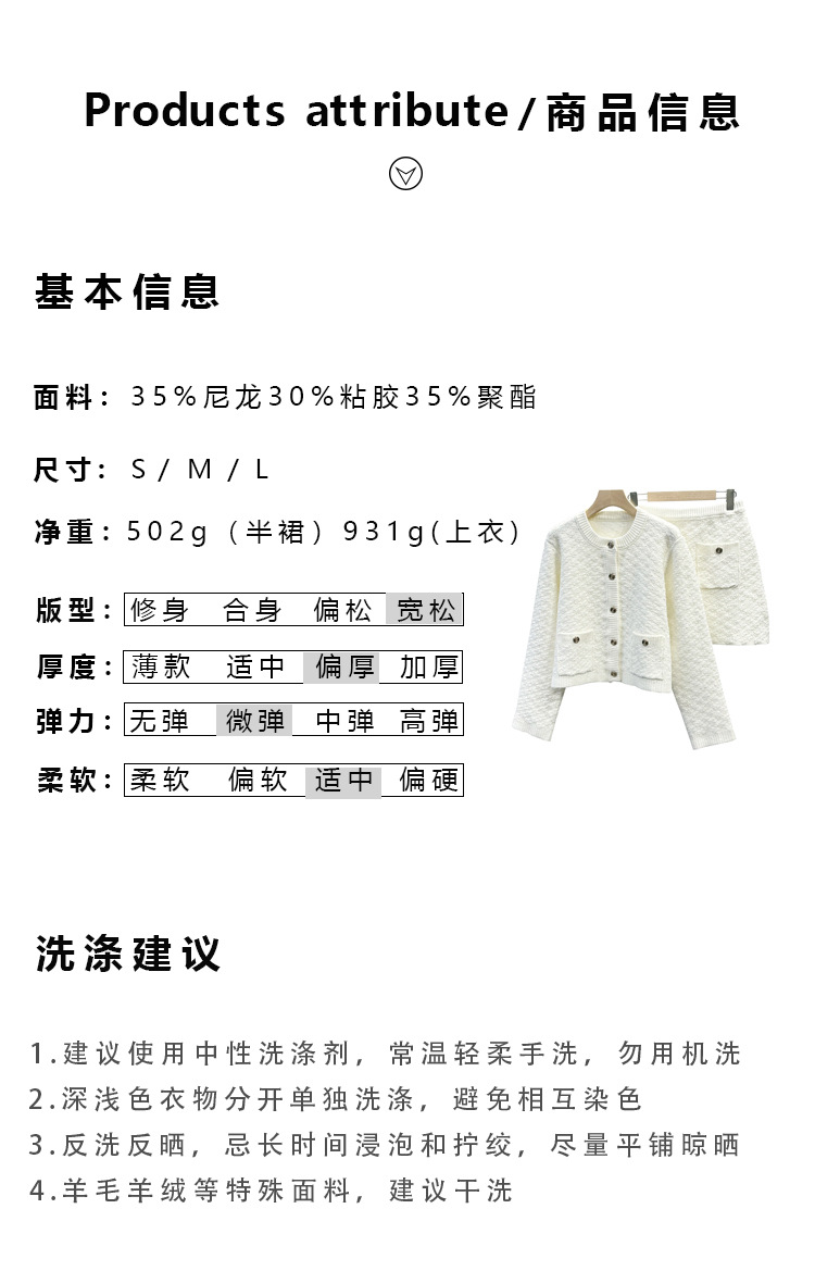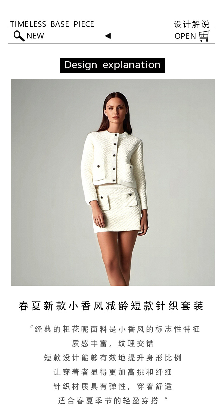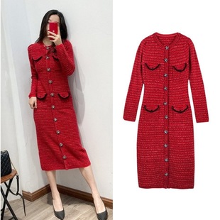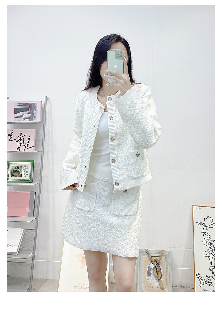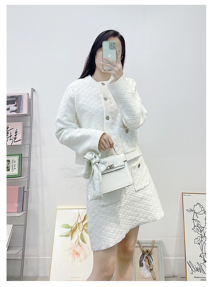 M의 새로운 프랑스 스타일 여성복 상의, 스팽글 라운드넥 긴팔 니트 가디건 + 샤넬 스타일 투피스 스커트 세트스토어 가기