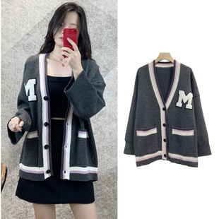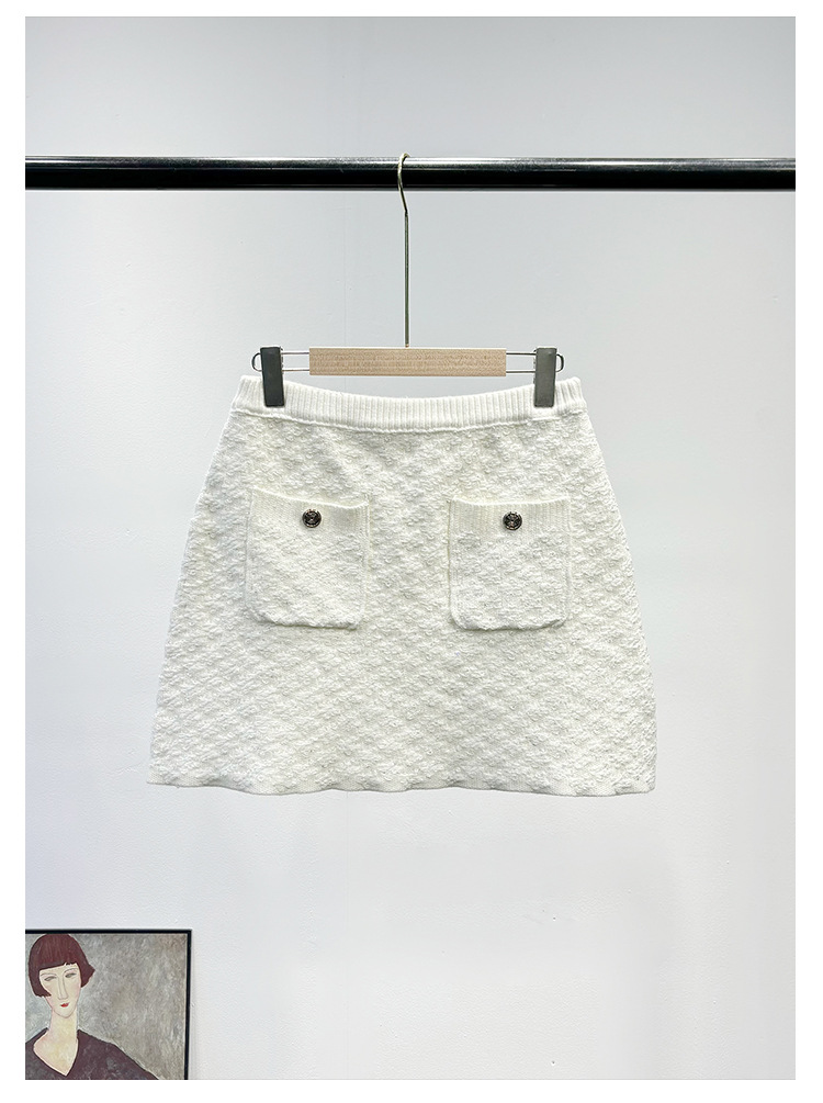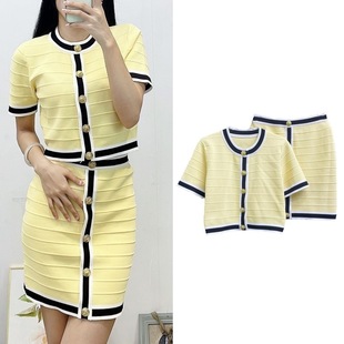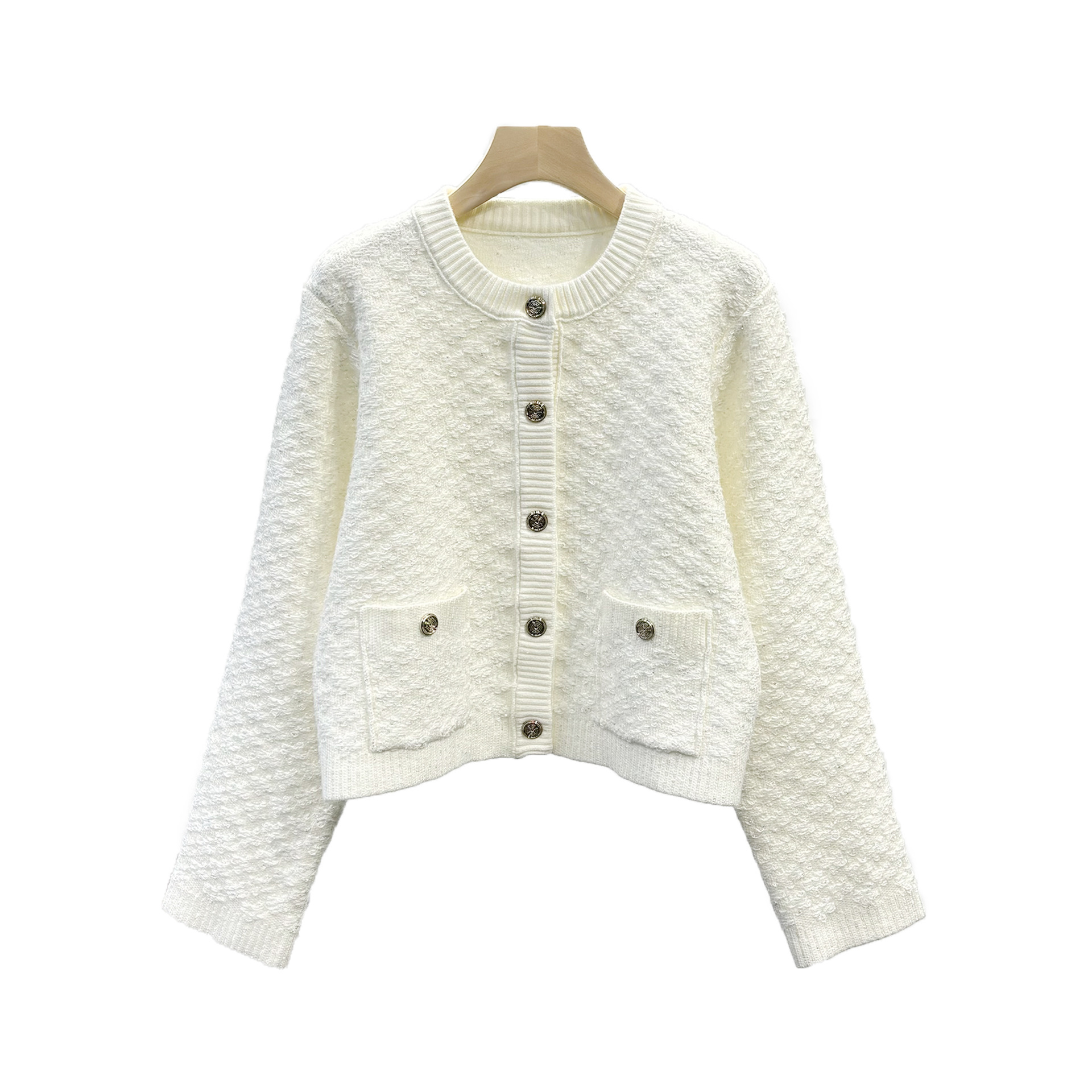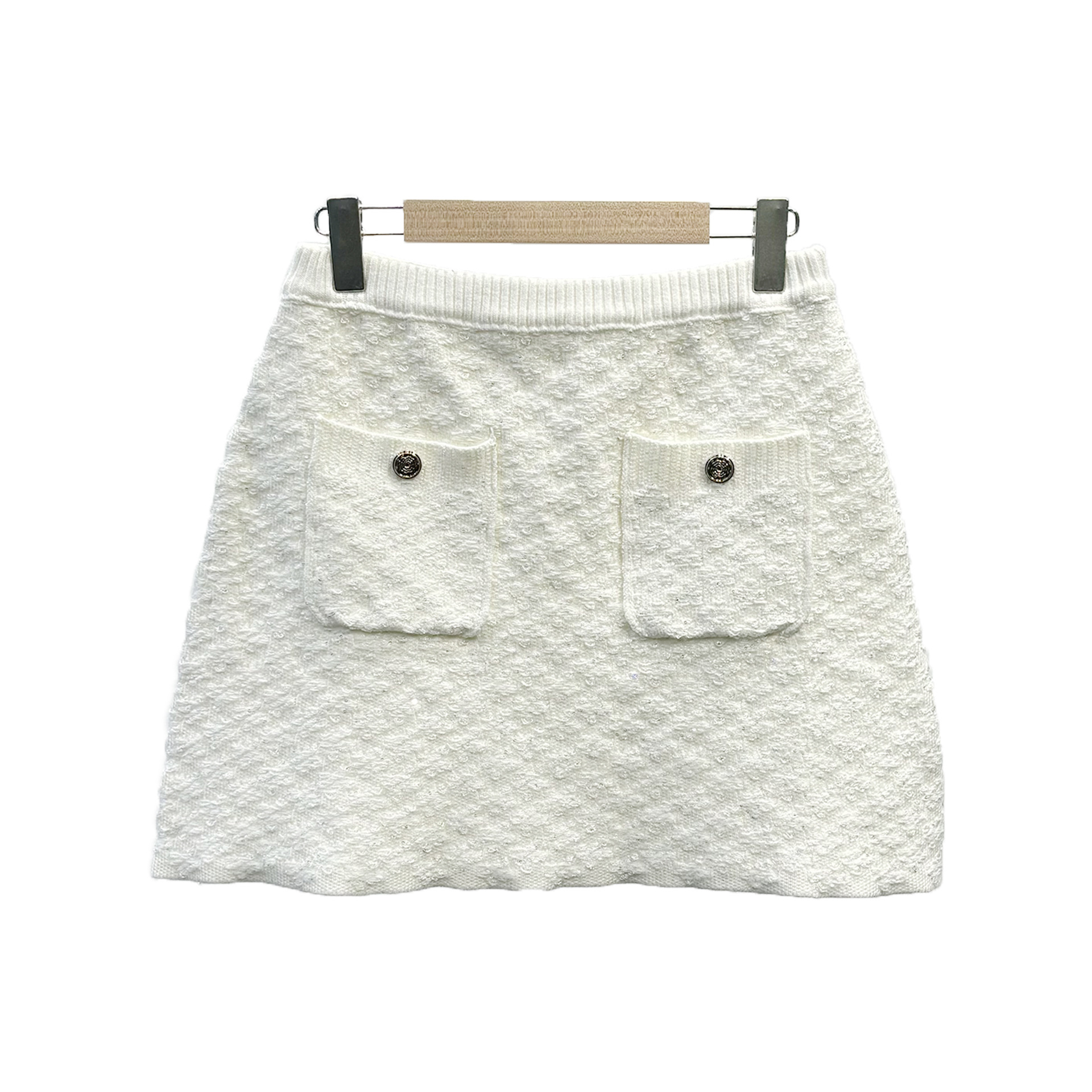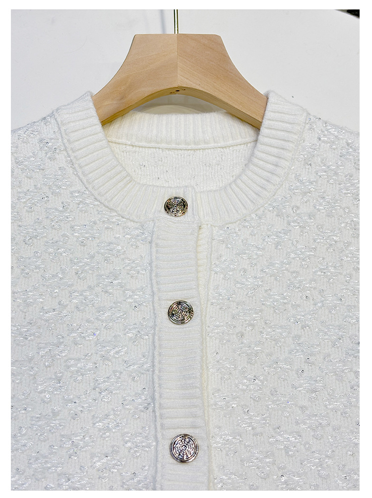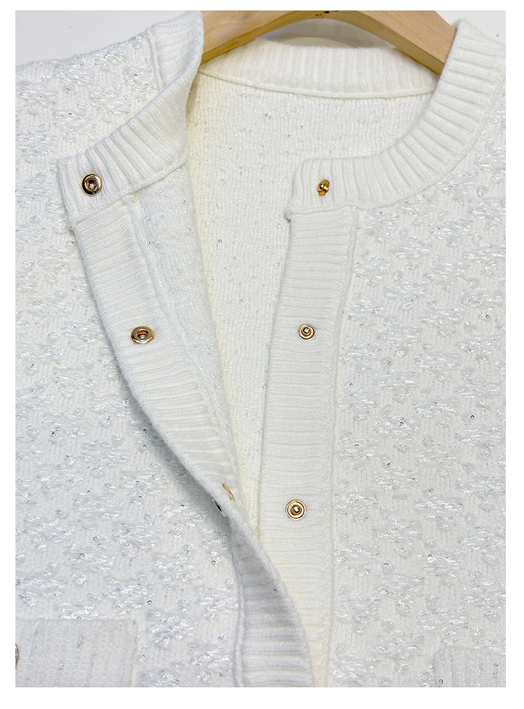 M의 새로운 프랑스 스타일 여성복 상의, 스팽글 라운드넥 긴팔 니트 가디건 + 샤넬 스타일 투피스 스커트 세트