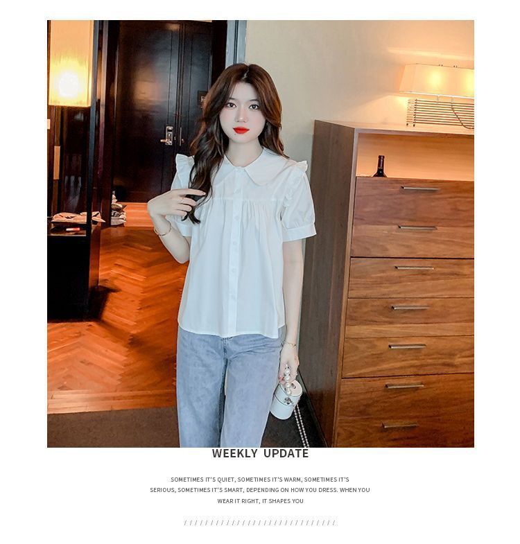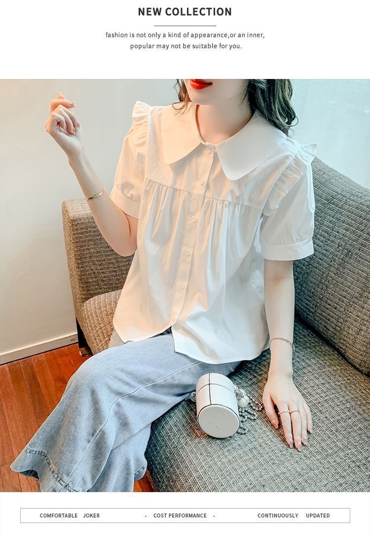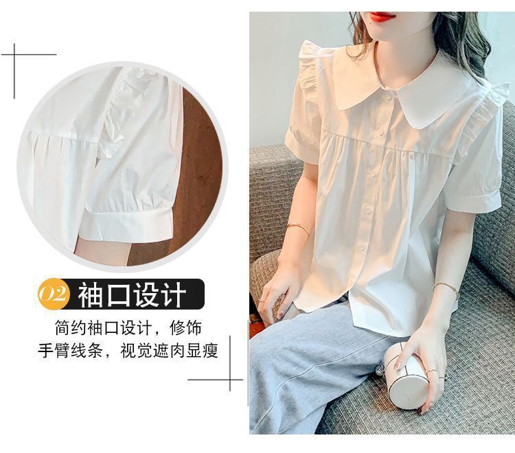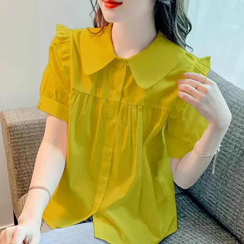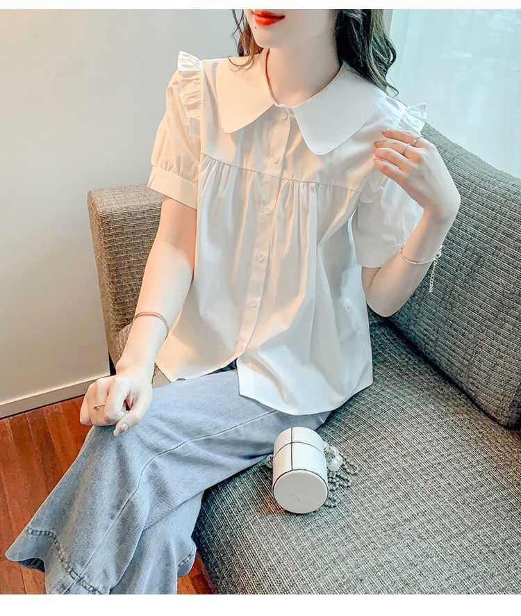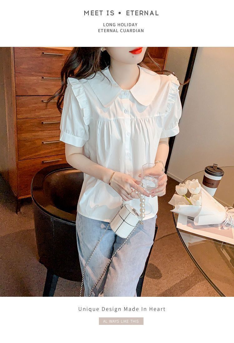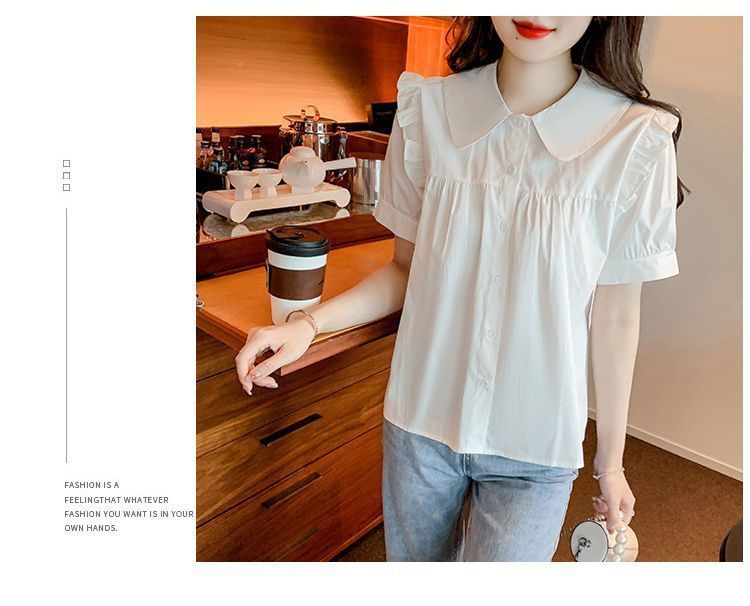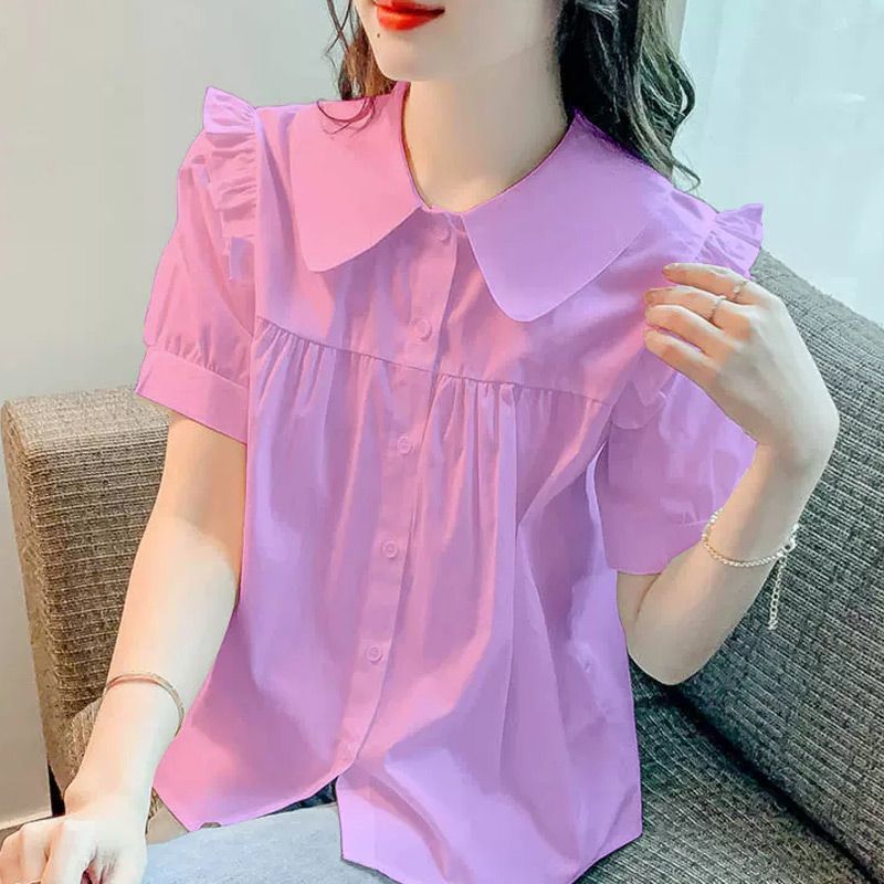 반팔 쉬폰 셔츠 느슨한 귀 테두리 인형 칼라 셔츠 2025 여름 새로운 스타일 우아한 작은 셔츠 연령 감소 여성스토어 가기