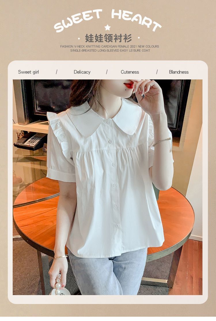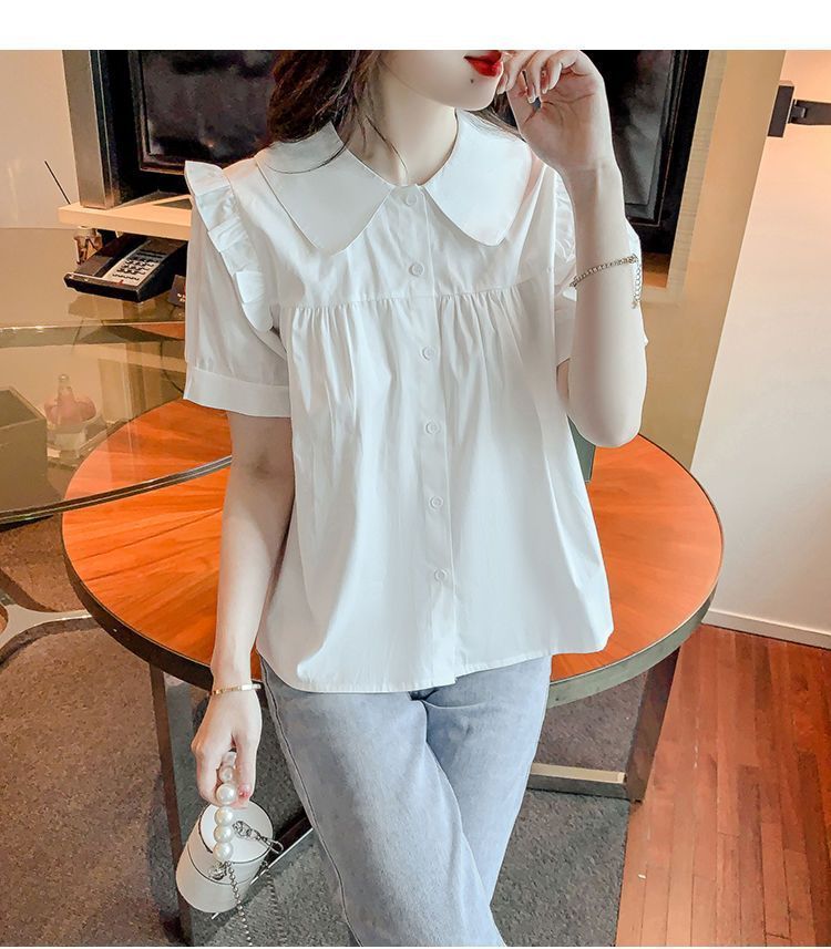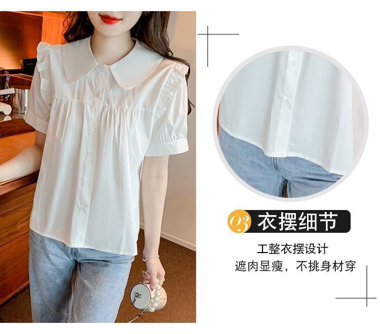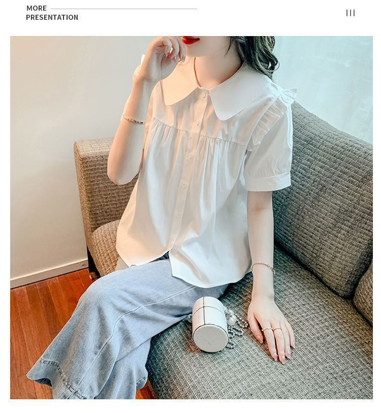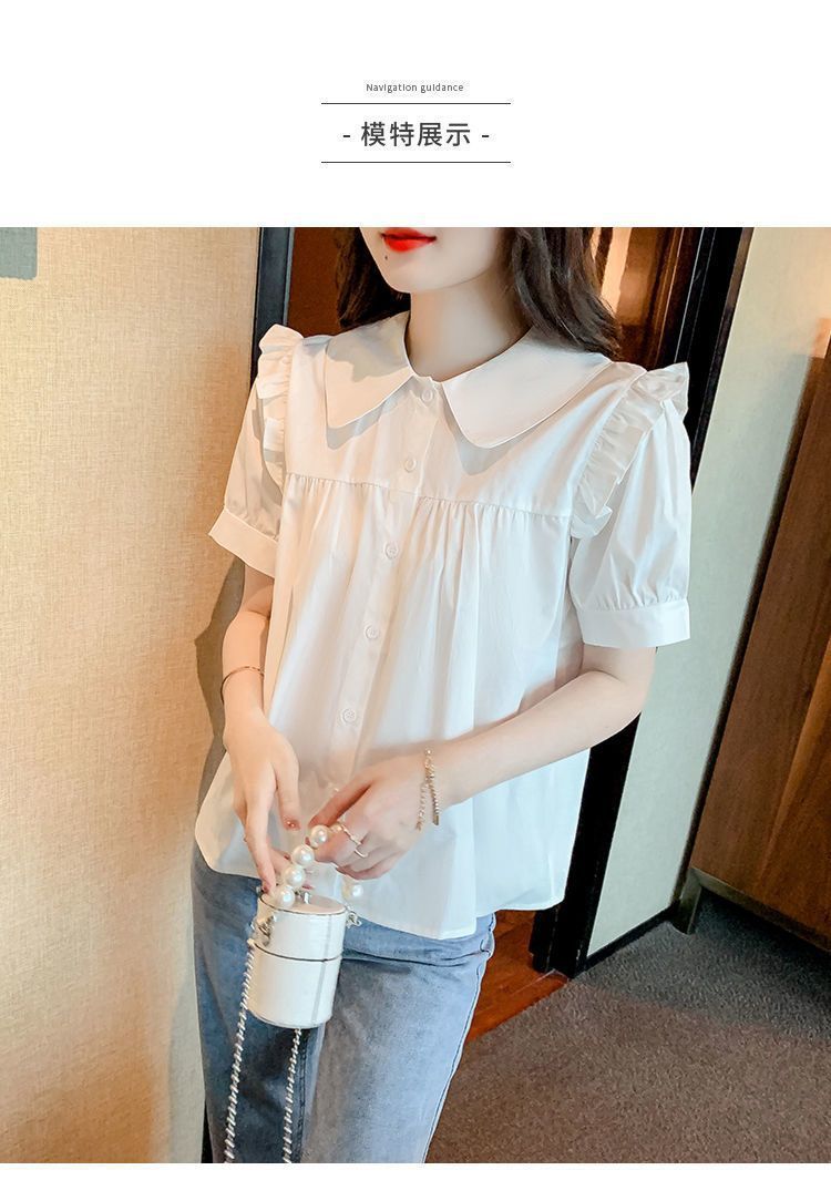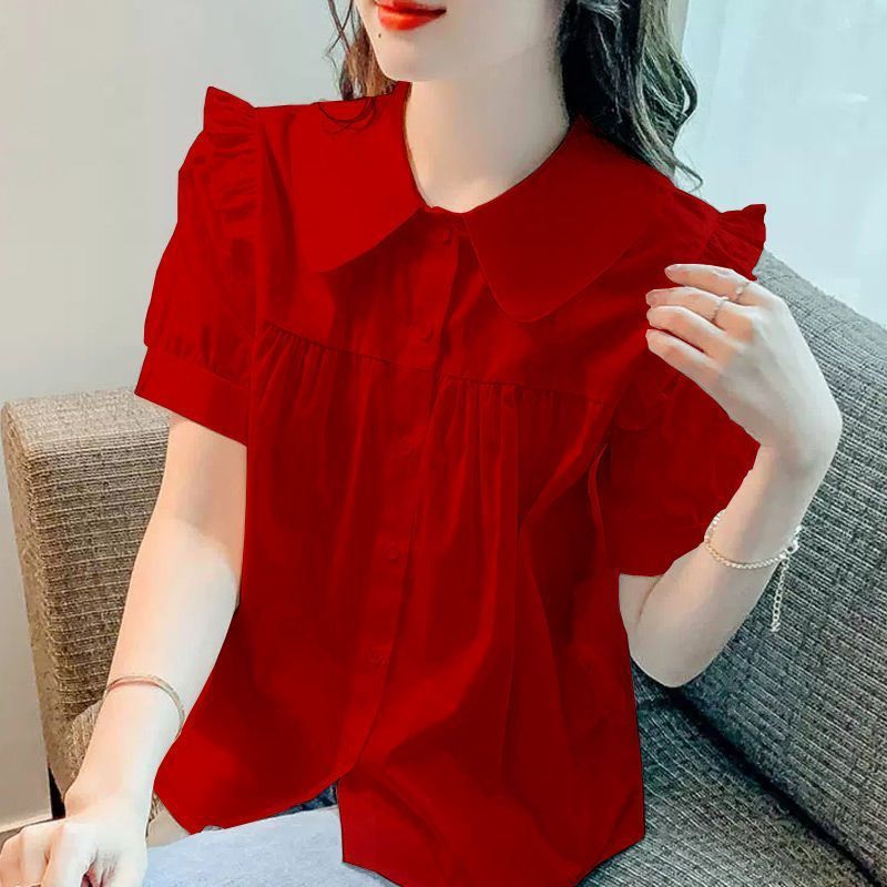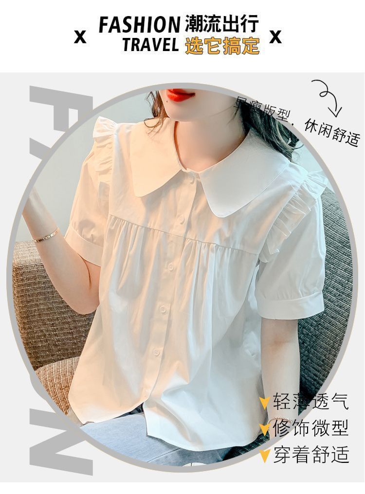 반팔 쉬폰 셔츠 느슨한 귀 테두리 인형 칼라 셔츠 2025 여름 새로운 스타일 우아한 작은 셔츠 연령 감소 여성스토어 가기
