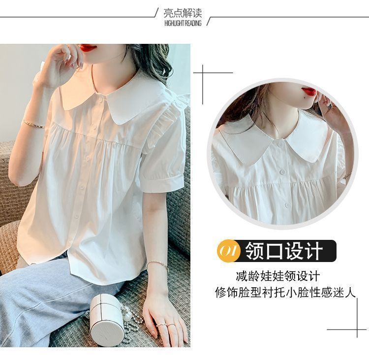 반팔 쉬폰 셔츠 느슨한 귀 테두리 인형 칼라 셔츠 2025 여름 새로운 스타일 우아한 작은 셔츠 연령 감소 여성