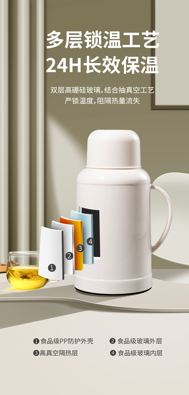 새로운 온수병, 소형 단열 가정용 단열 주전자, 뚜껑이 있는 기숙사 주전자, 대용량 보온병, 끓는 물병